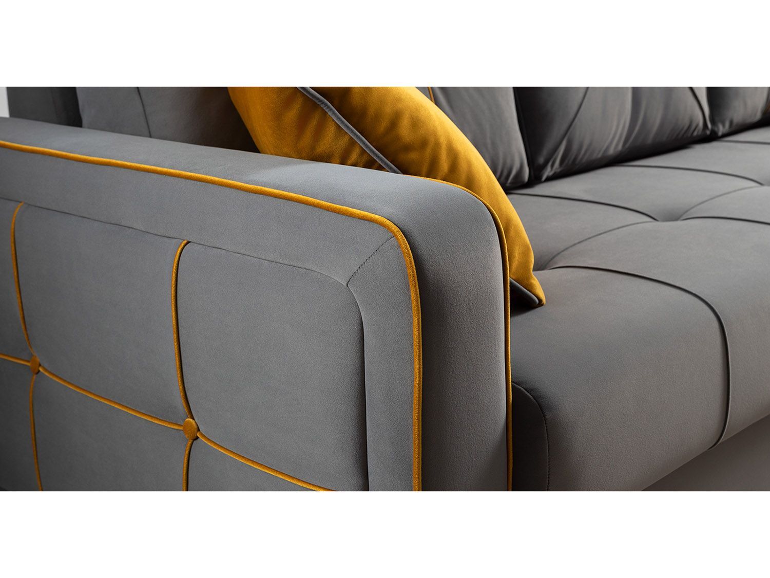 - декор Декоративные канты на подушках и вставке подлокотников. Пуговицы в местах пересечения кантов на подушке и вставке подлокотников. По торцам подлокотников и думках контрастный декоративный кант. Защипы на сиденье и средней большой подушке.
