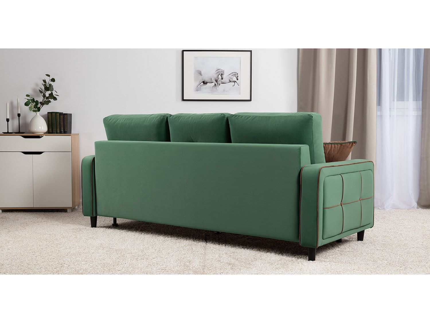 - декор Декоративные канты на подушках и вставке подлокотников. Пуговицы в местах пересечения кантов на подушке и вставке подлокотников. По торцам подлокотников и думках контрастный декоративный кант. Защипы на сиденье и средней большой подушке.