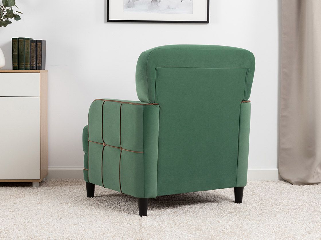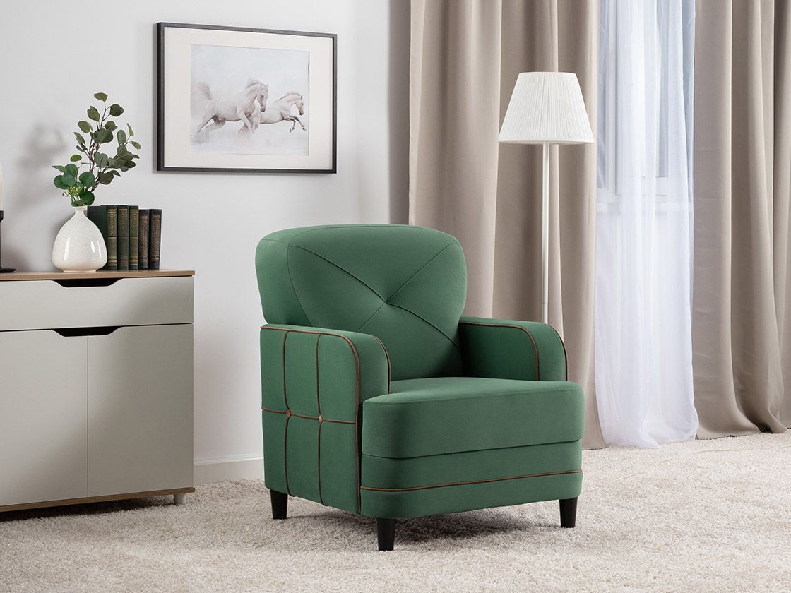 - декор - Декоративные канты на вставке подлокотников. Пуговицы в местах пересечения кантов на подушке и вставке подлокотников. По торцам подлокотников и думках контрастный декоративный кант. Защипы на сиденье и подушке
