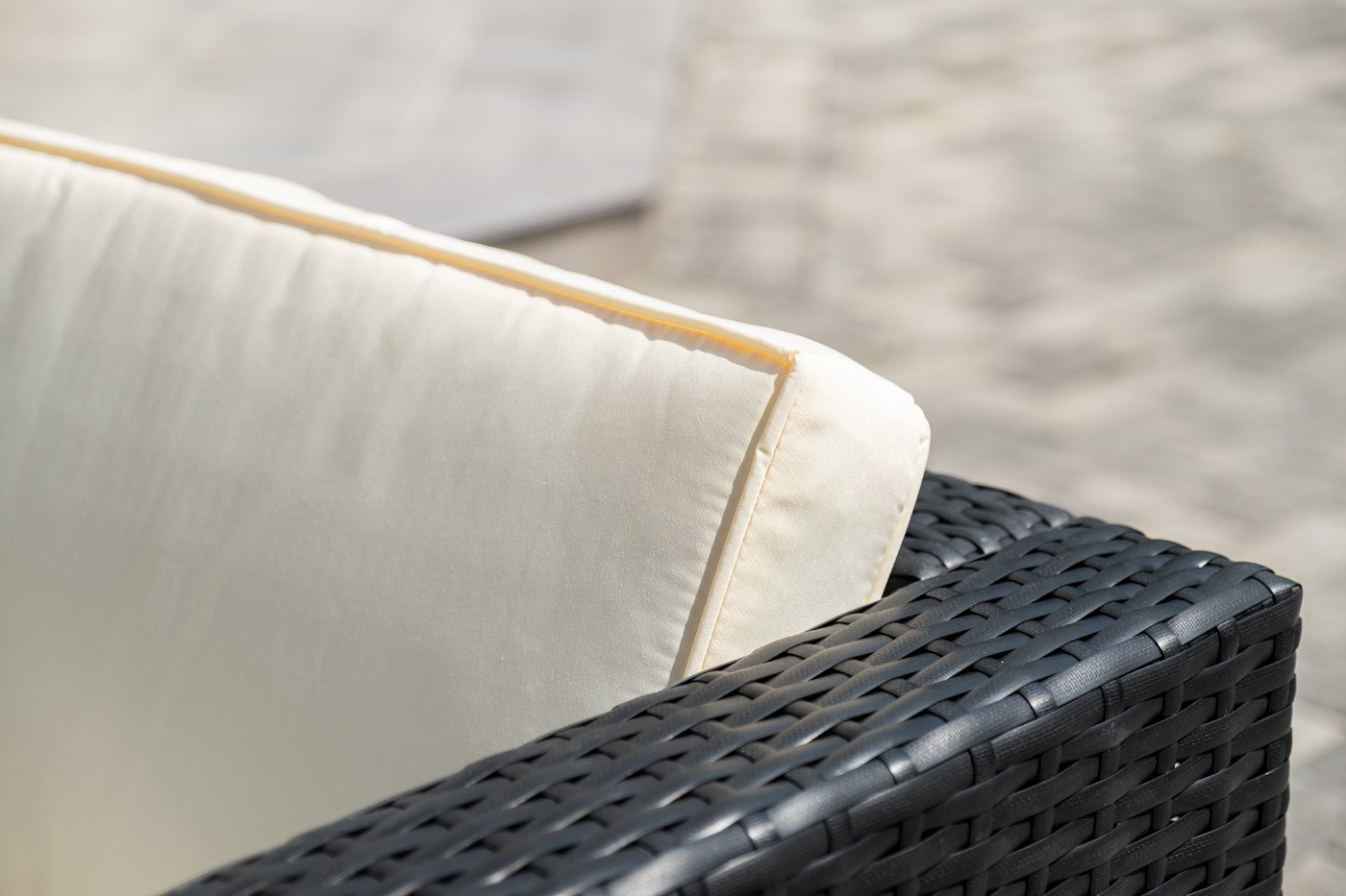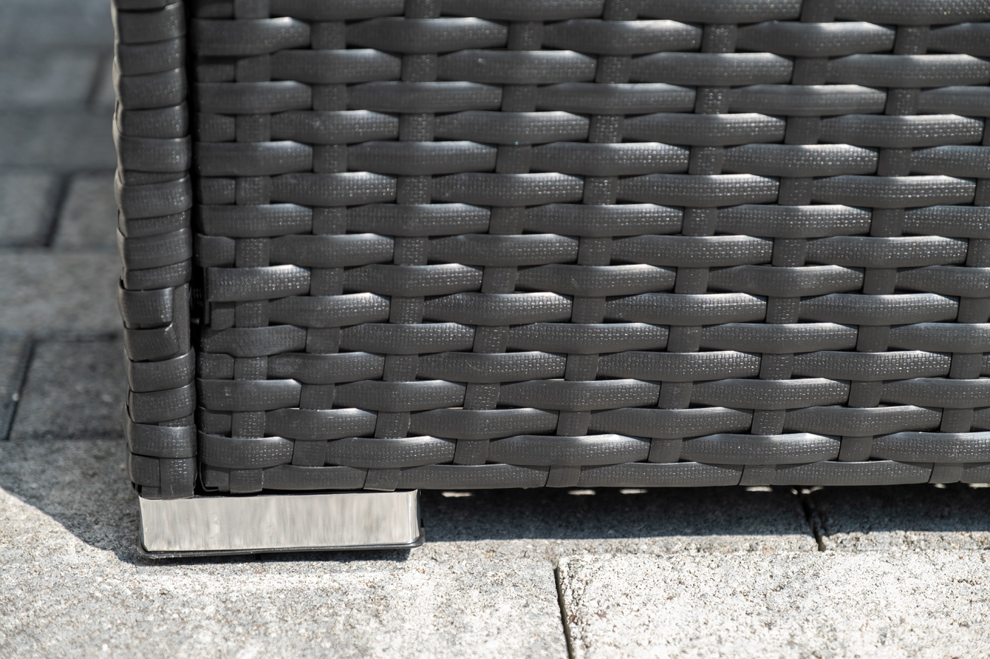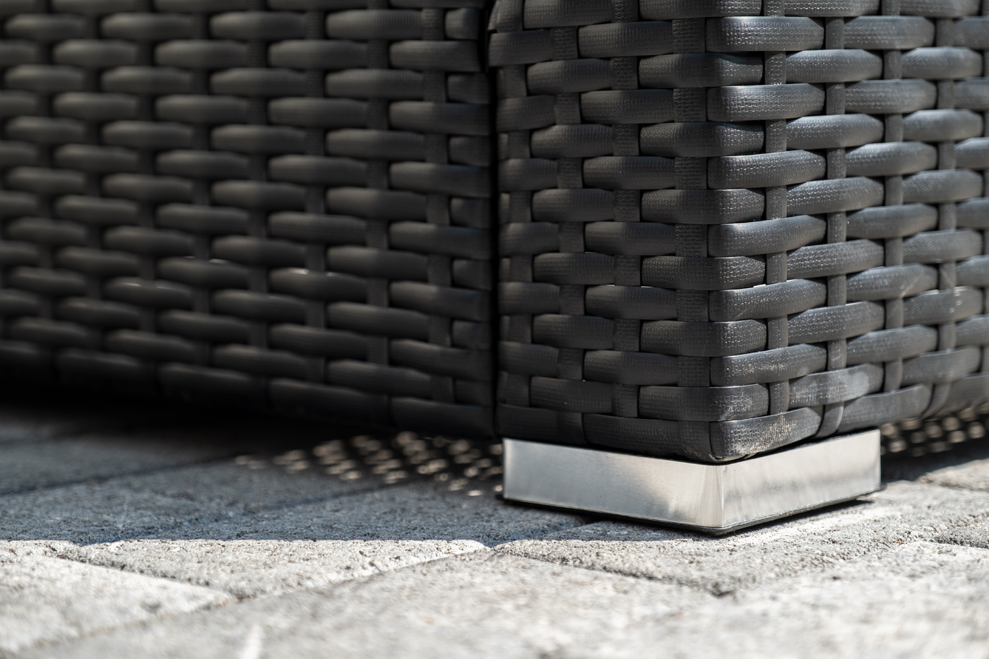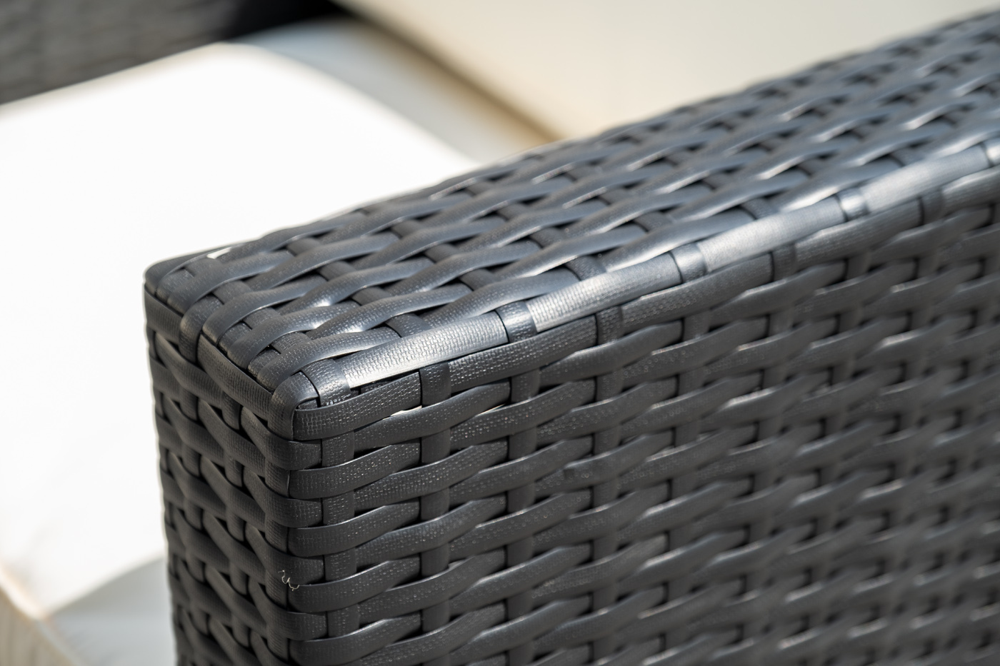 В основе мебели - стальной каркас и плоский искусственный ротанг. Каркас оплетен с помощью ручного метода и представлен в черном цвете.