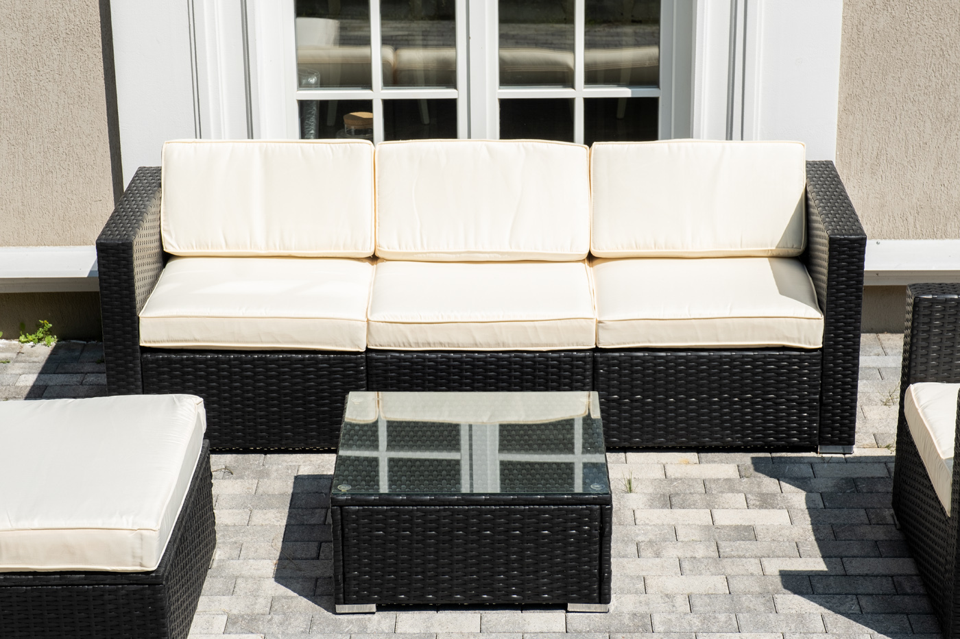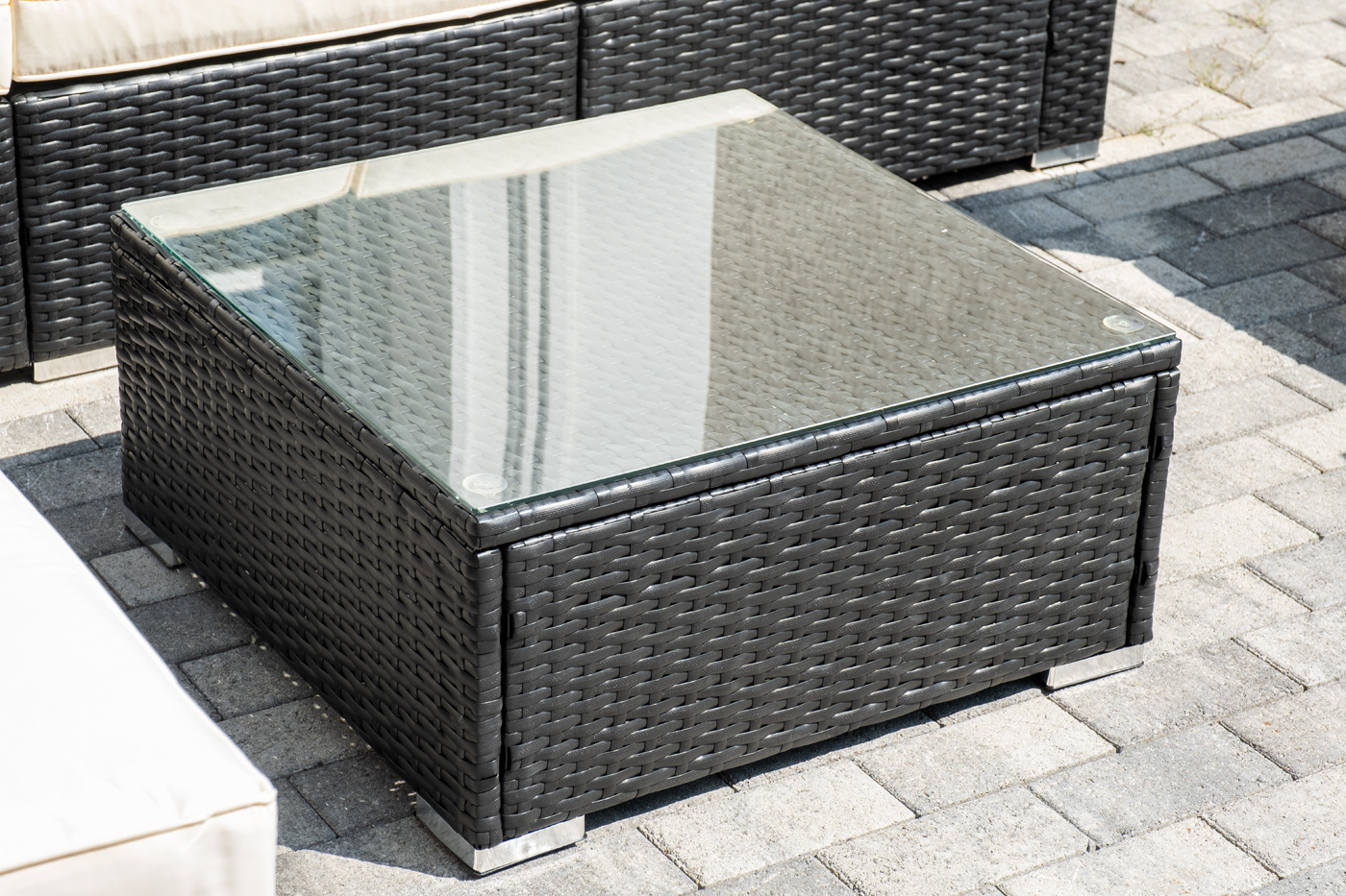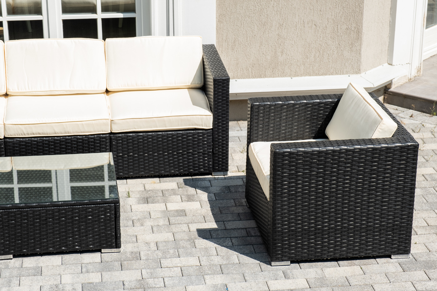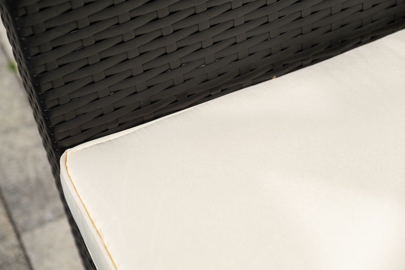В основе мебели - стальной каркас и плоский искусственный ротанг. Каркас оплетен с помощью ручного метода и представлен в черном цвете.