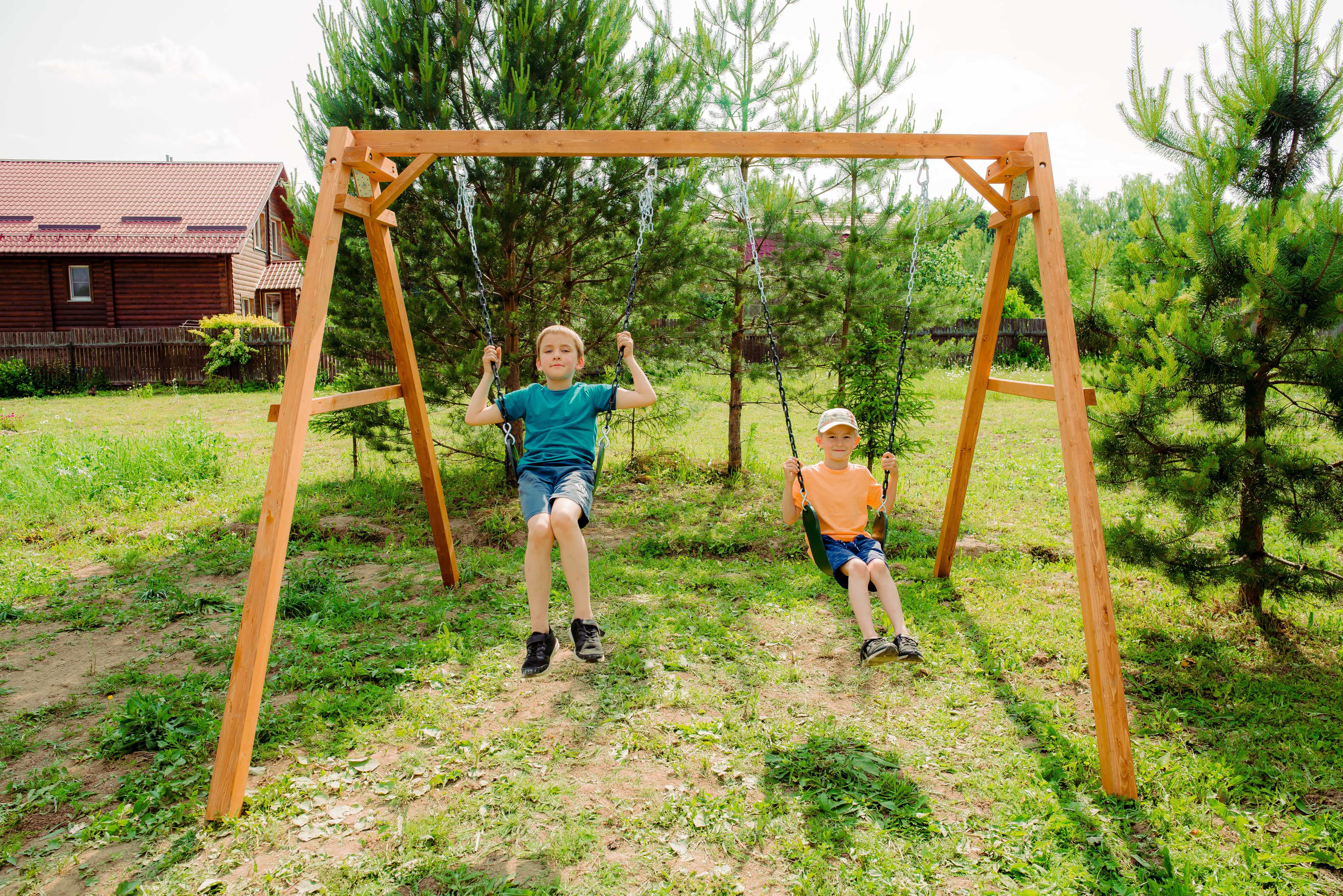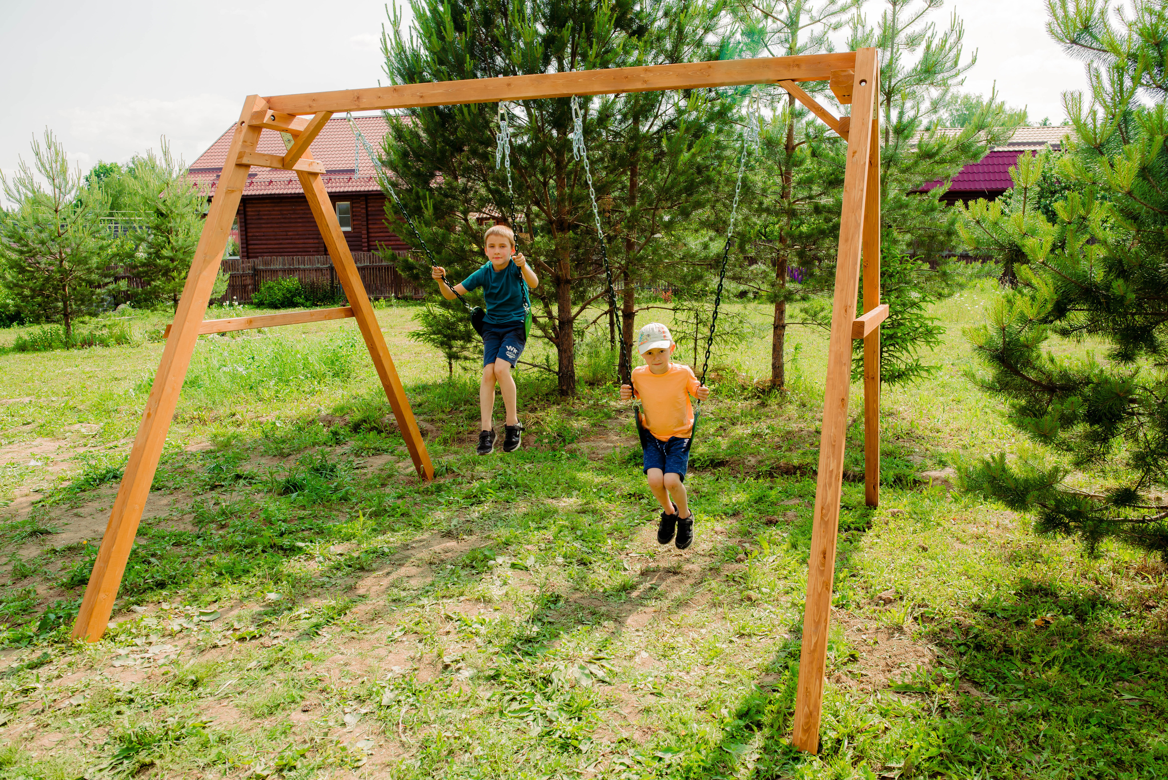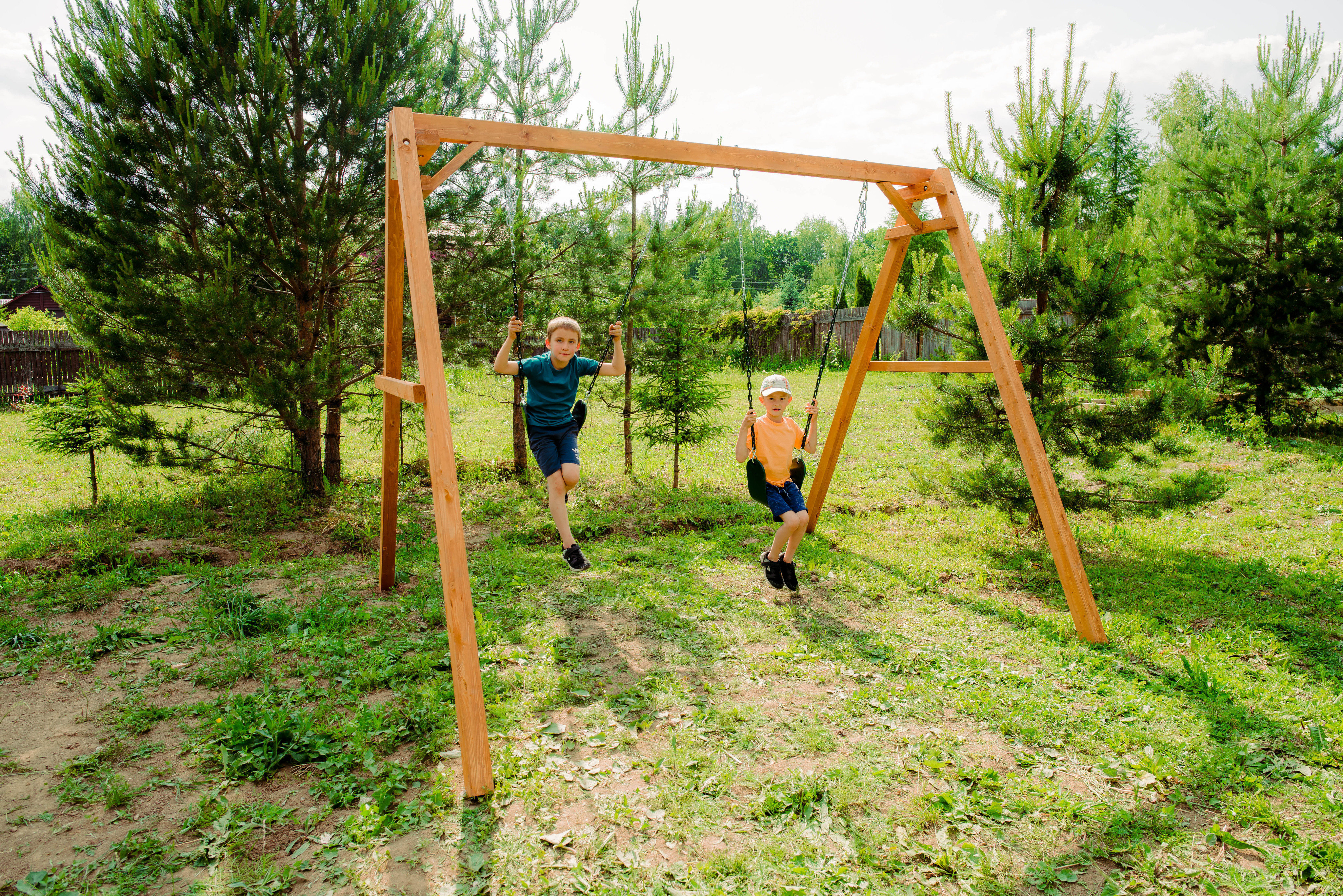 Детские игровые качели National Tree Company отлично подходят для использования на даче и во дворе частного дома, способствуют развитию координации и балансировки у детей. Такие уличные качели – это не только развлечение, но и возможность для детей развивать социальные навыки. Игры на качелях способны объединять детей, способствуя взаимодействию и коммуникации во время веселых совместных развлечений. Качели, выполненные из качественного дерева, легко вписываются в любой ландшафт и могут стать отличным дополнением к садовому дизайну. Естественные материалы устойчивы к воздействию внешней среды, что обеспечивает долгий срок службы. Все карабины и кронштейны в комплекте помогают создать надежную конструкцию. Благодаря этому, качели отличаются высокой безопасностью для малышей с разным весом. В конечном итоге, детские игровые качели – это не просто предмет для игры, а важный элемент, способствующий всестороннему развитию ребенка и укреплению семейных связей Комплектация и размеры В комплект входят: деревянный каркас, гибкие качели 2 шт, карабины и кронштейны. Размеры качелей составляют 2900*2700*2200 мм, а вес - 54 кг. Установка и размещение Деревянные уличные качели устанавливается в землю и не требует бетонирования. Размещается на улице, подходит для детей от 3 до 14 лет.