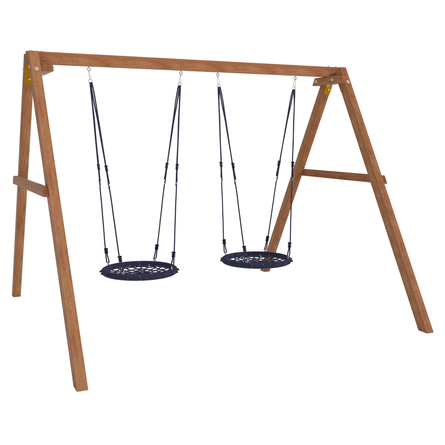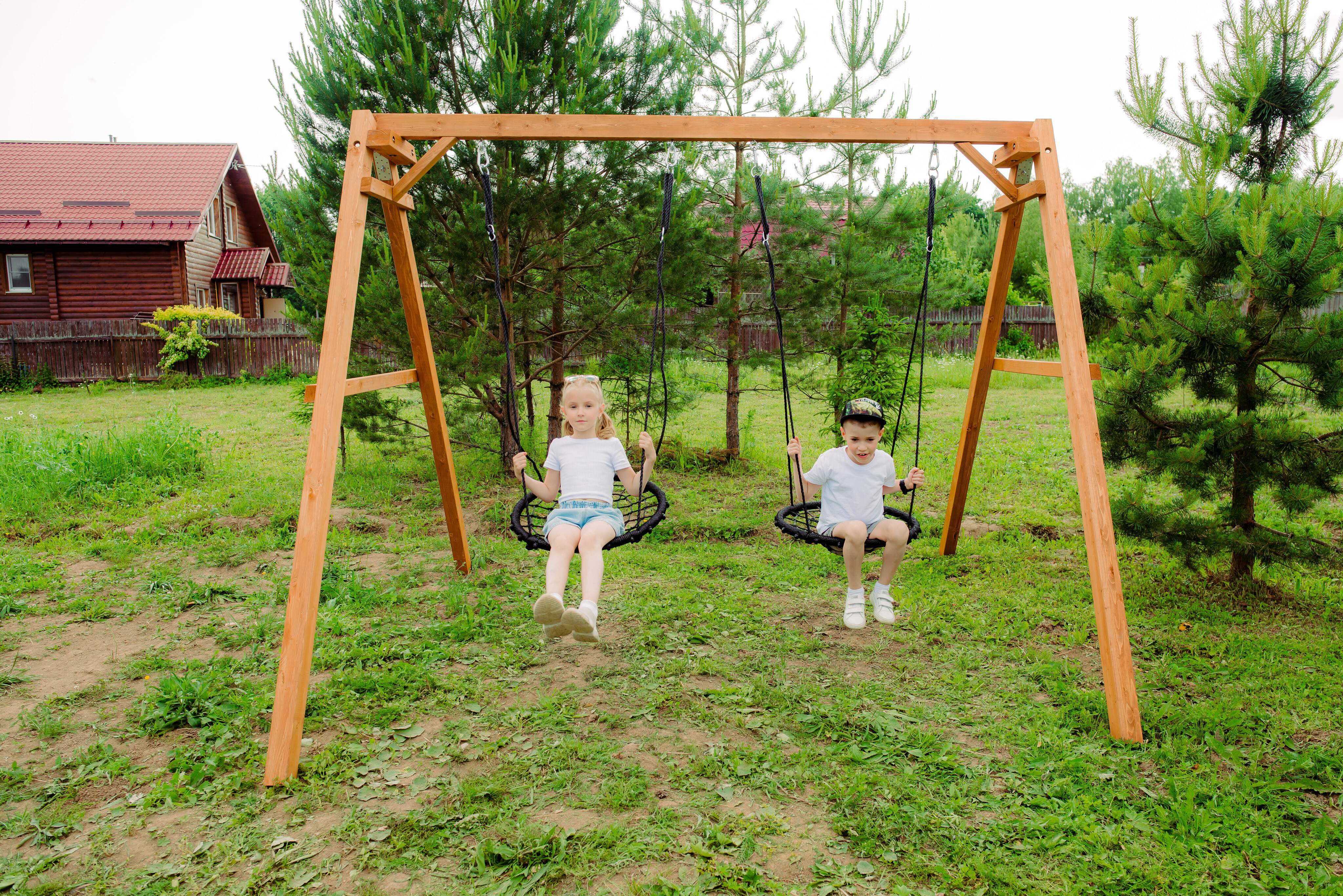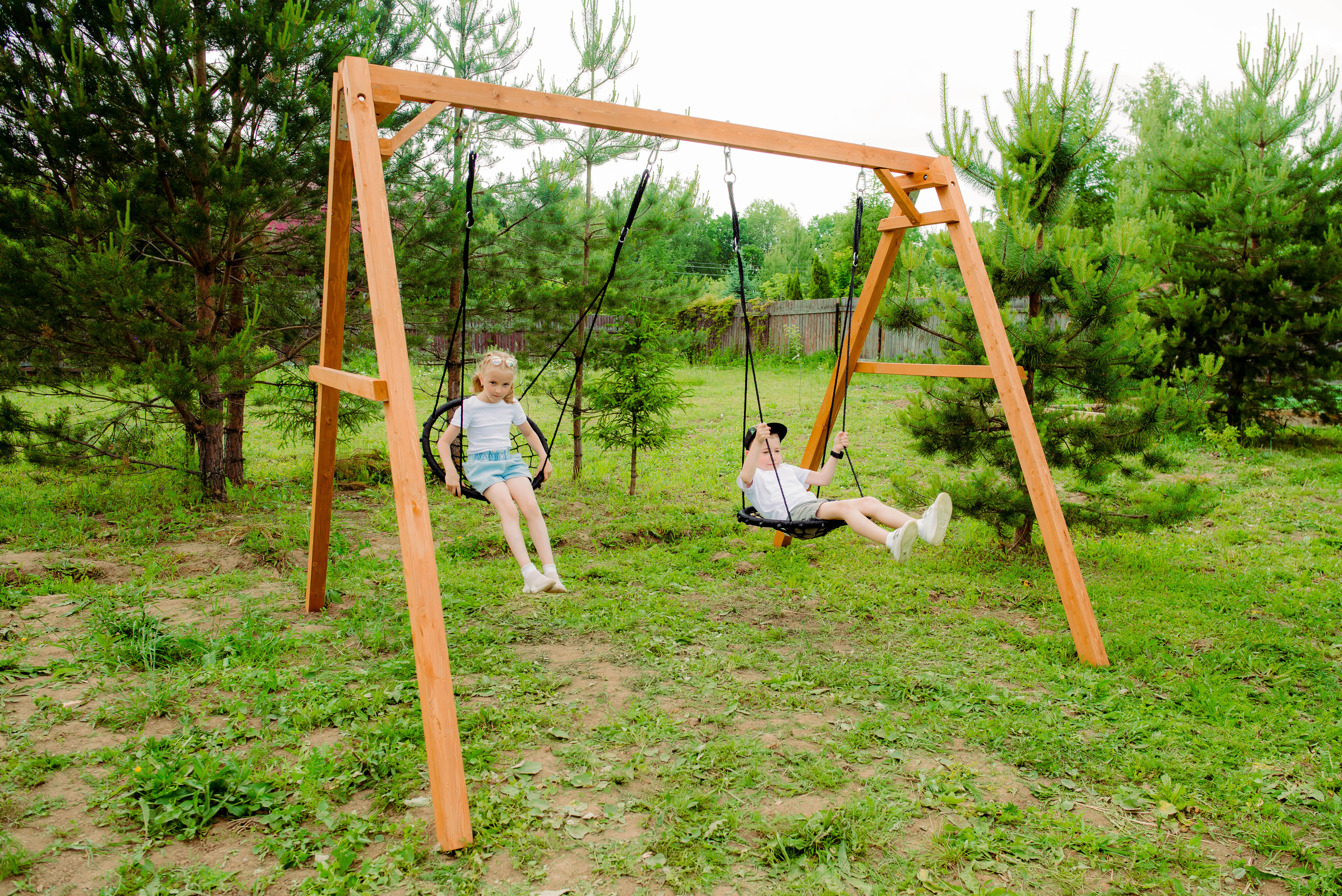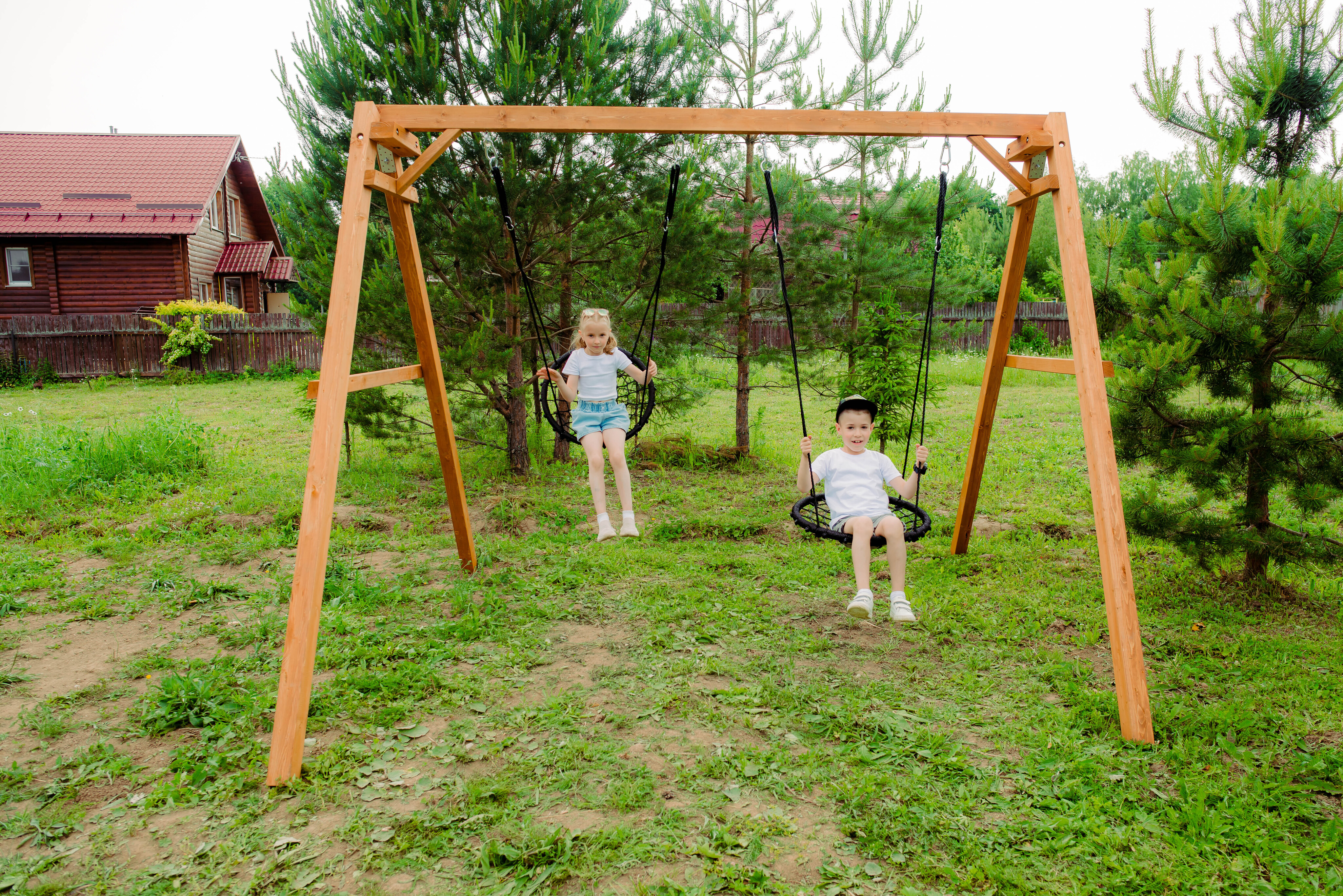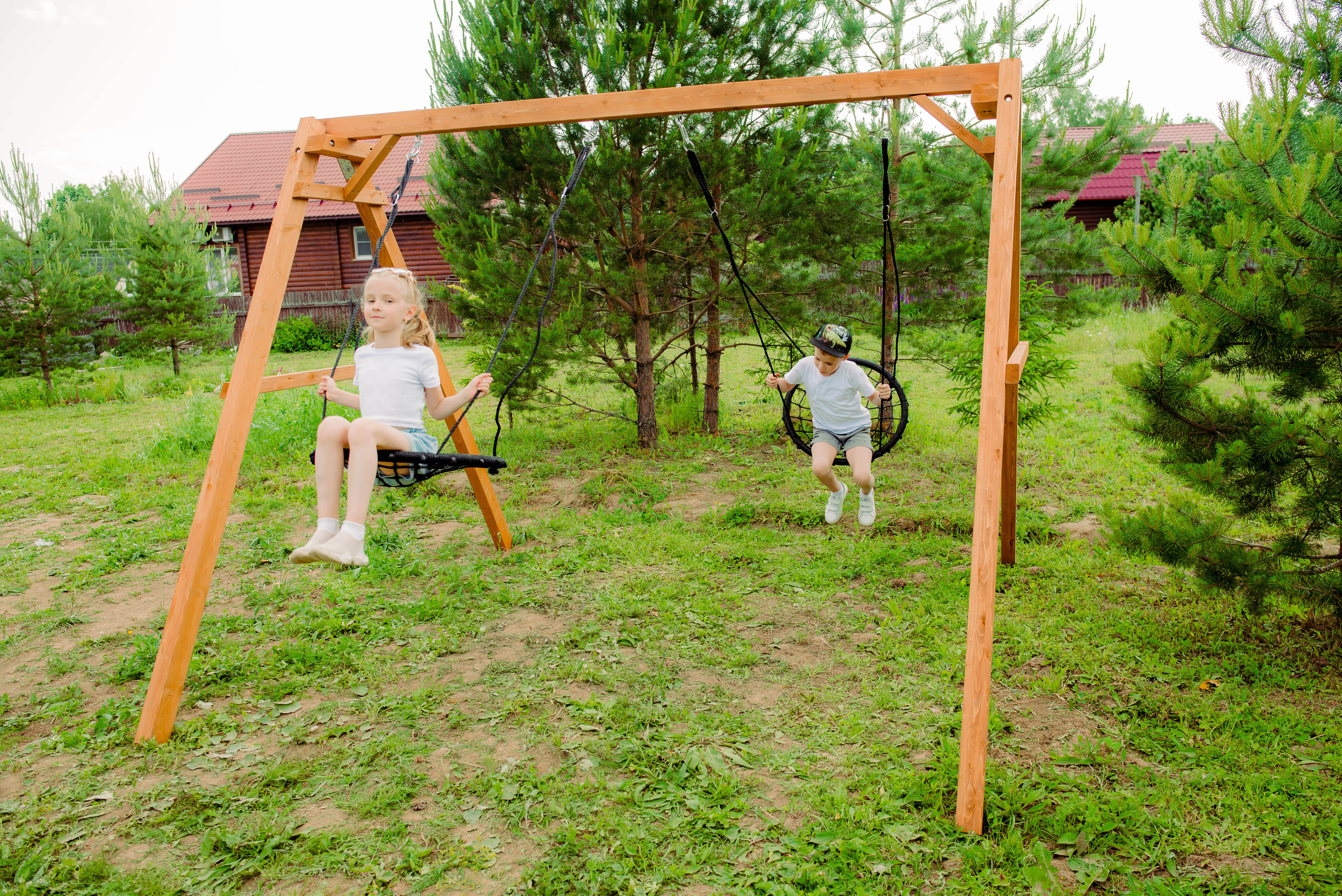 Детские игровые качели National Tree Company отлично подходят для использования на даче и во дворе частного дома, способствуют развитию координации и балансировки у детей. Такие уличные качели – это не только развлечение, но и возможность для детей развивать социальные навыки. Игры на качелях способны объединять детей, способствуя взаимодействию и коммуникации во время веселых совместных развлечений. Качели, выполненные из качественного дерева, легко вписываются в любой ландшафт и могут стать отличным дополнением к садовому дизайну. Естественные материалы устойчивы к воздействию внешней среды, что обеспечивает долгий срок службы. Все карабины и кронштейны в комплекте помогают создать надежную конструкцию. Благодаря этому, качели отличаются высокой безопасностью для малышей с разным весом. В конечном итоге, детские игровые качели – это не просто предмет для игры, а важный элемент, способствующий всестороннему развитию ребенка и укреплению семейных связей Комплектация и размеры В комплект входят: деревянный каркас, качели гнездо 60 см -2 шт, карабины и кронштейны. Размеры качелей составляют 2900*2700*2200 мм, а вес - 54 кг. Установка и размещение Деревянные уличные качели устанавливается в землю и не требует бетонирования. Размещается на улице, подходит для детей от 3 до 14 лет.