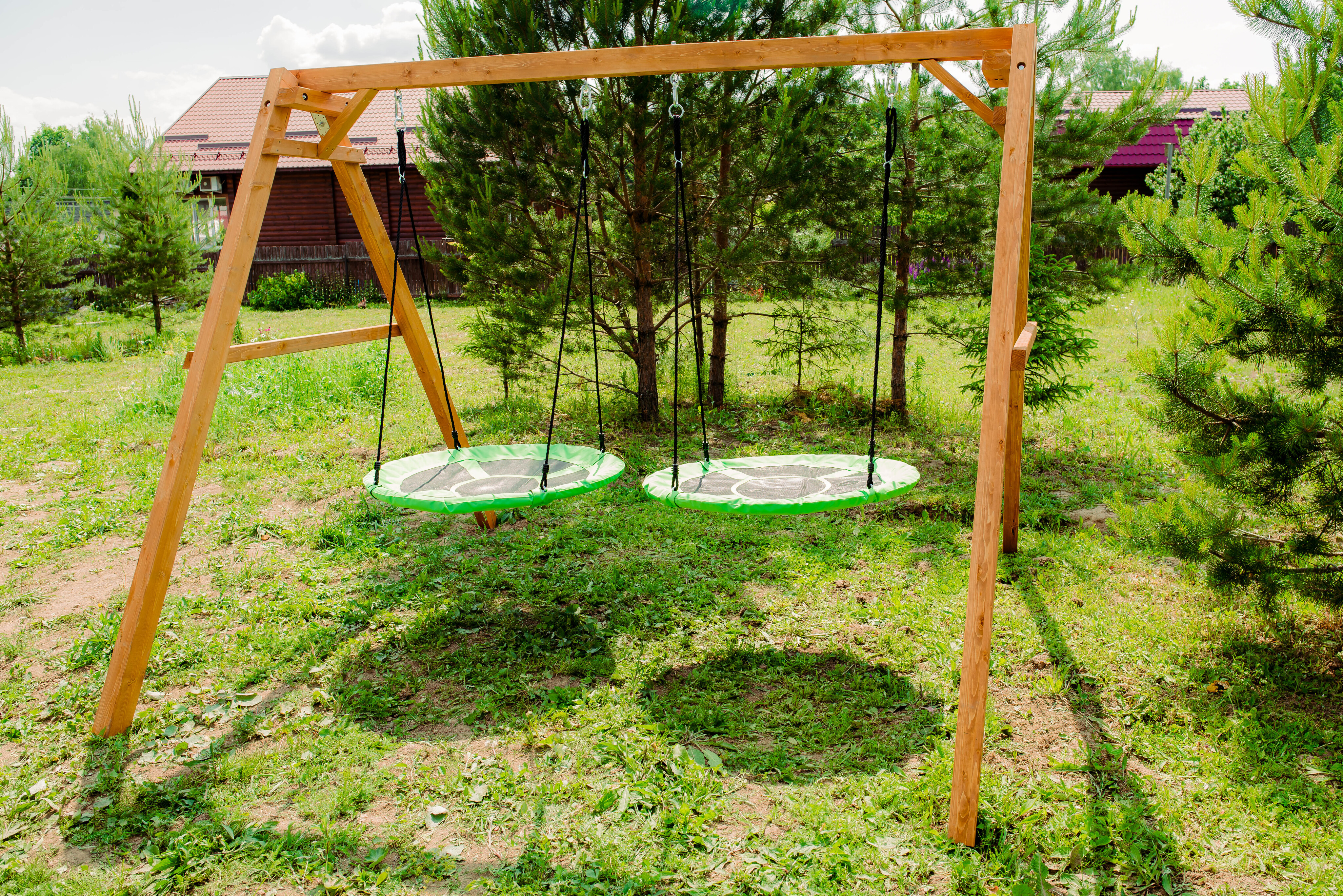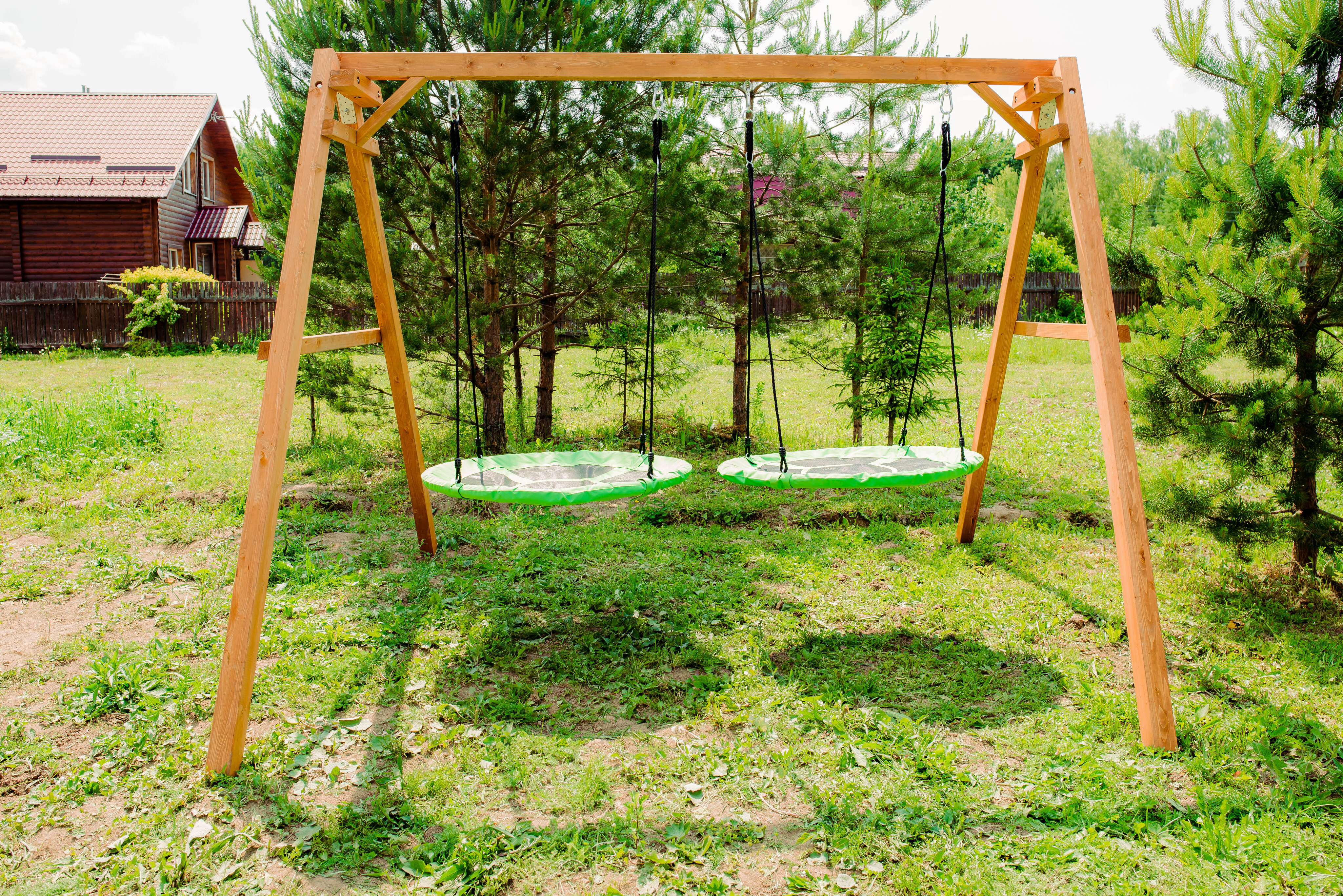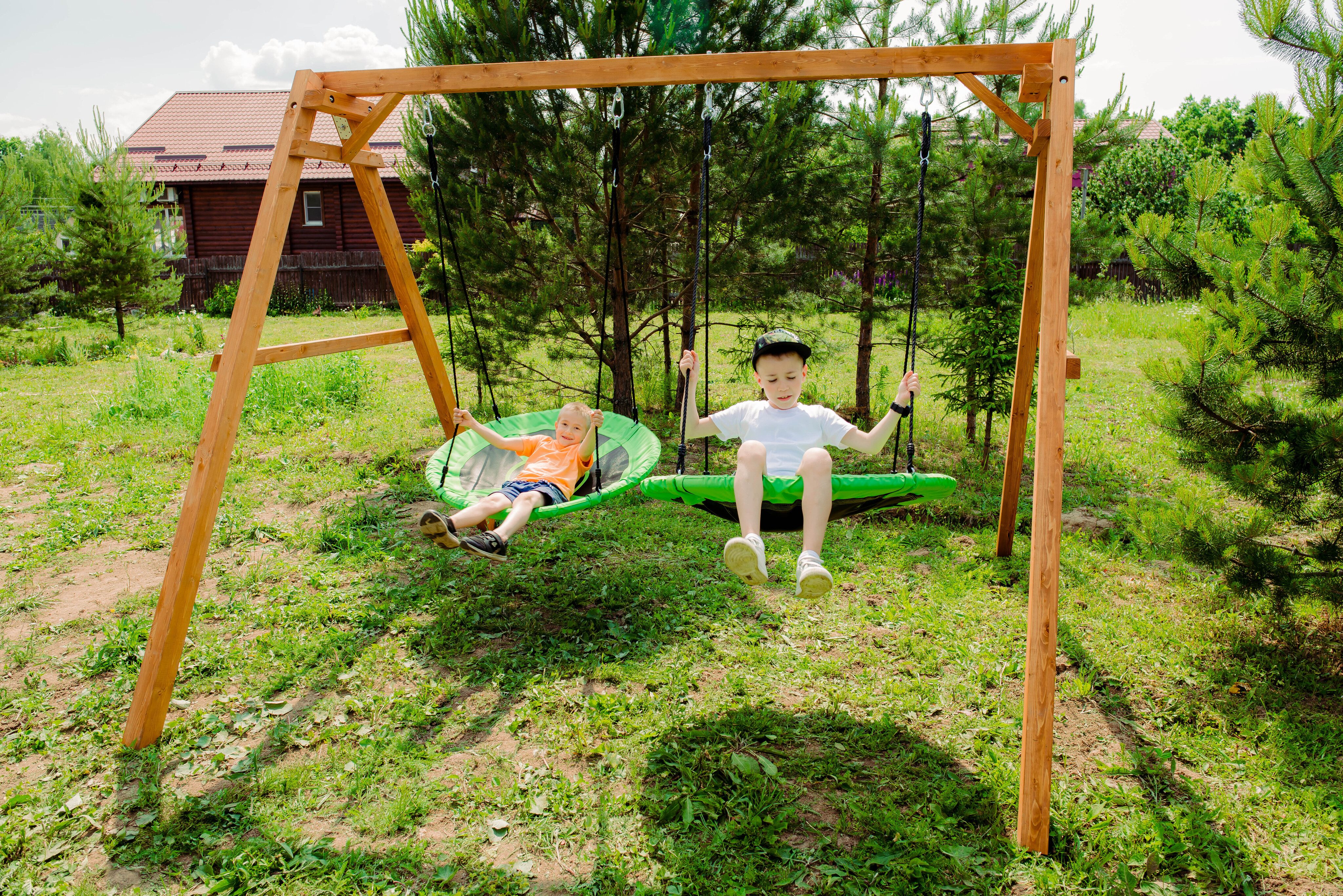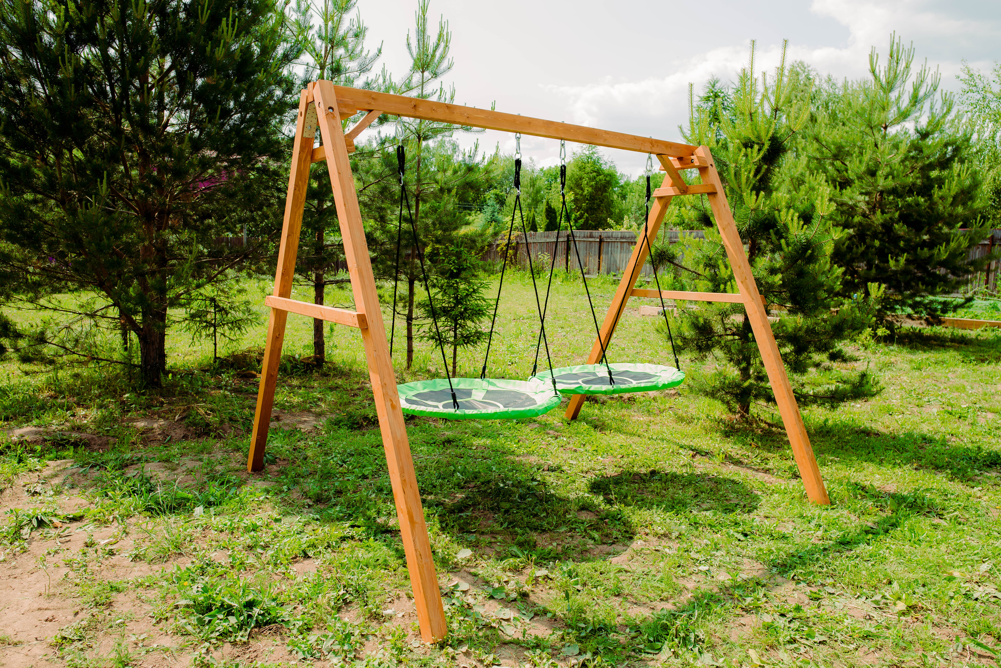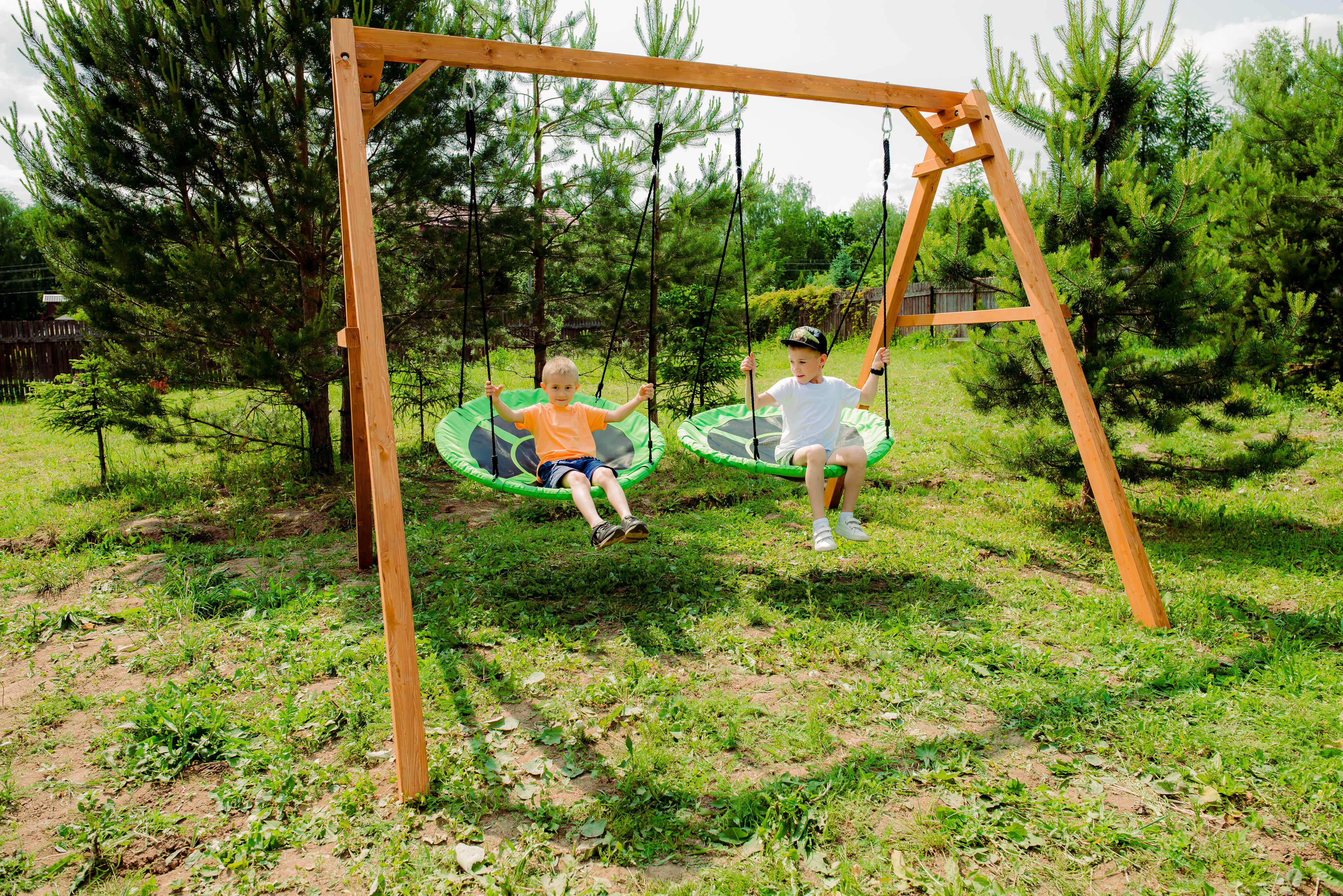 Детские игровые качели National Tree Company отлично подходят для использования на даче и во дворе частного дома, способствуют развитию координации и балансировки у детей. Такие уличные качели – это не только развлечение, но и возможность для детей развивать социальные навыки. Игры на качелях способны объединять детей, способствуя взаимодействию и коммуникации во время веселых совместных развлечений. Качели, выполненные из качественного дерева, легко вписываются в любой ландшафт и могут стать отличным дополнением к садовому дизайну. Естественные материалы устойчивы к воздействию внешней среды, что обеспечивает долгий срок службы. Все карабины и кронштейны в комплекте помогают создать надежную конструкцию. Благодаря этому, качели отличаются высокой безопасностью для малышей с разным весом. В конечном итоге, детские игровые качели – это не просто предмет для игры, а важный элемент, способствующий всестороннему развитию ребенка и укреплению семейных связей Комплектация и размеры В комплект входят: деревянный каркас, качели гнездо Свиби - 2 шт, карабины и кронштейны. Размеры качелей составляют 2900*2700*2200 мм, а вес - 54 кг. Установка и размещение Деревянные уличные качели устанавливается в землю и не требует бетонирования. Размещается на улице, подходит для детей от 3 до 14 лет.