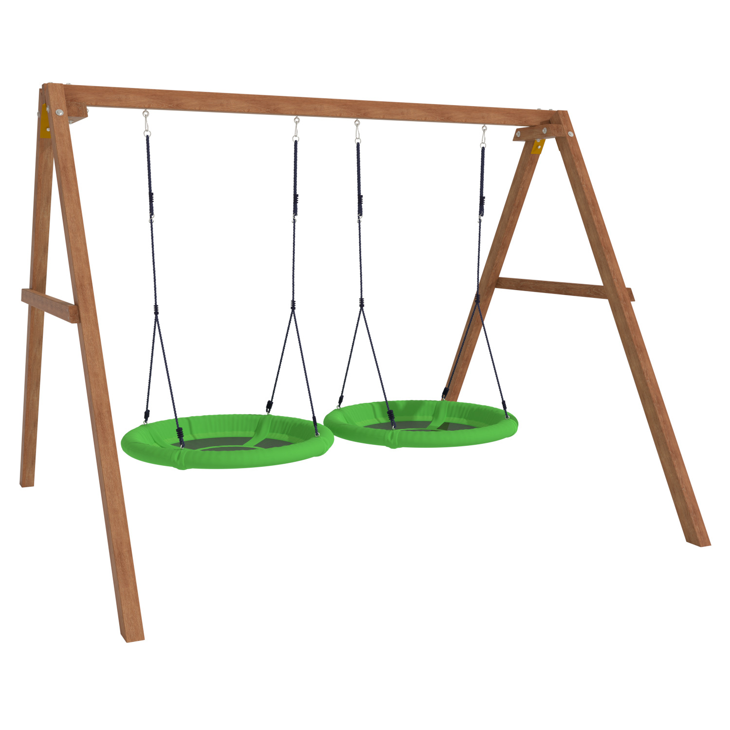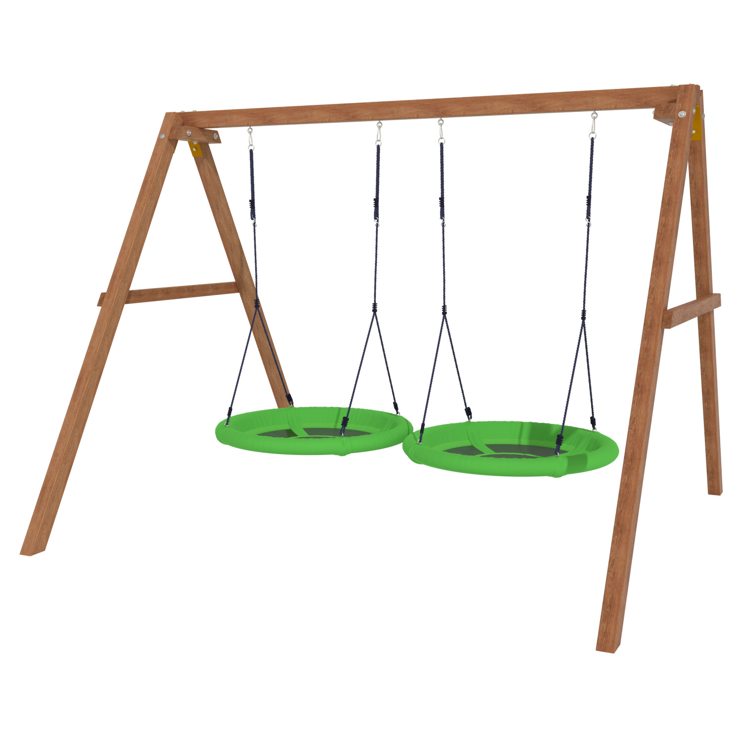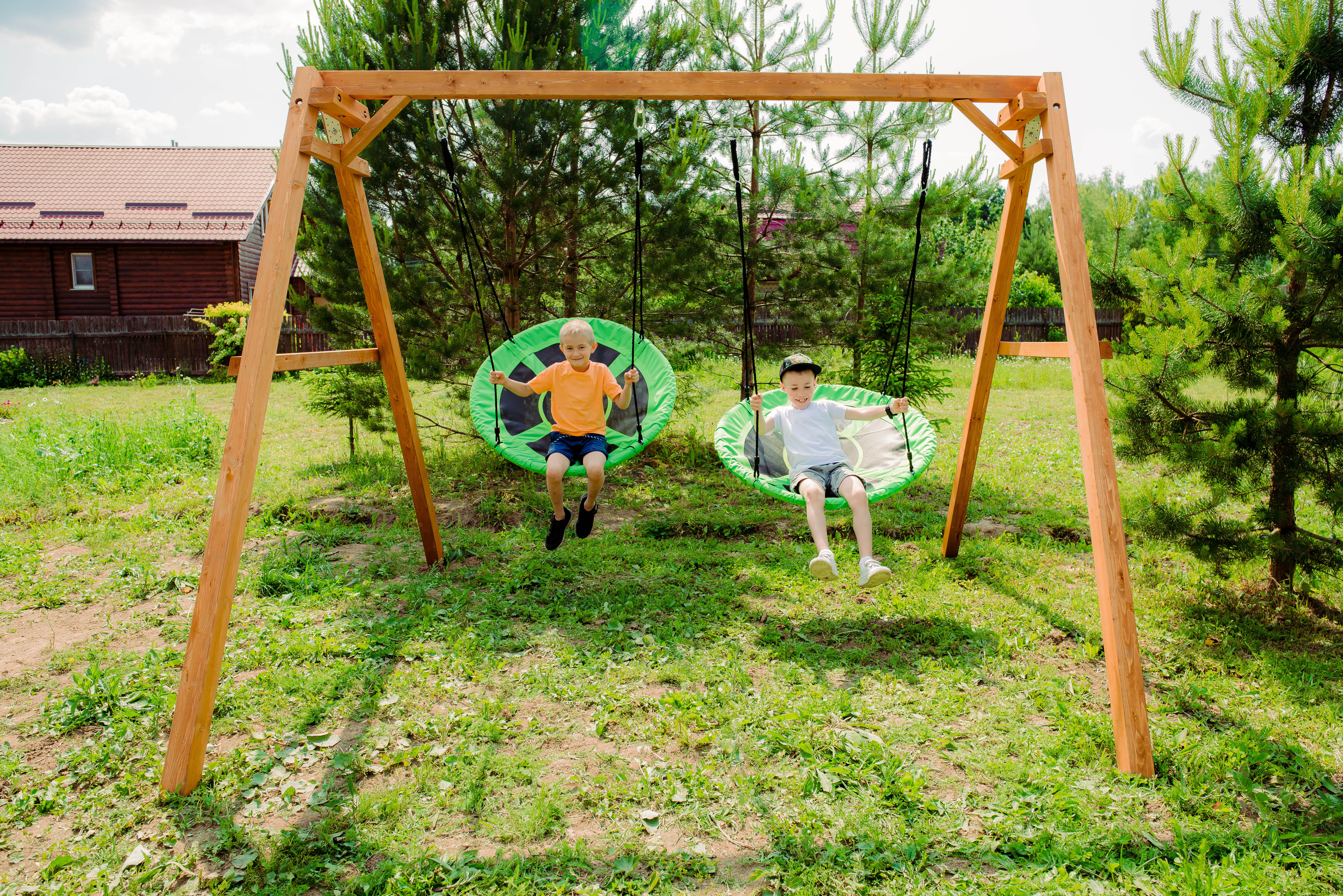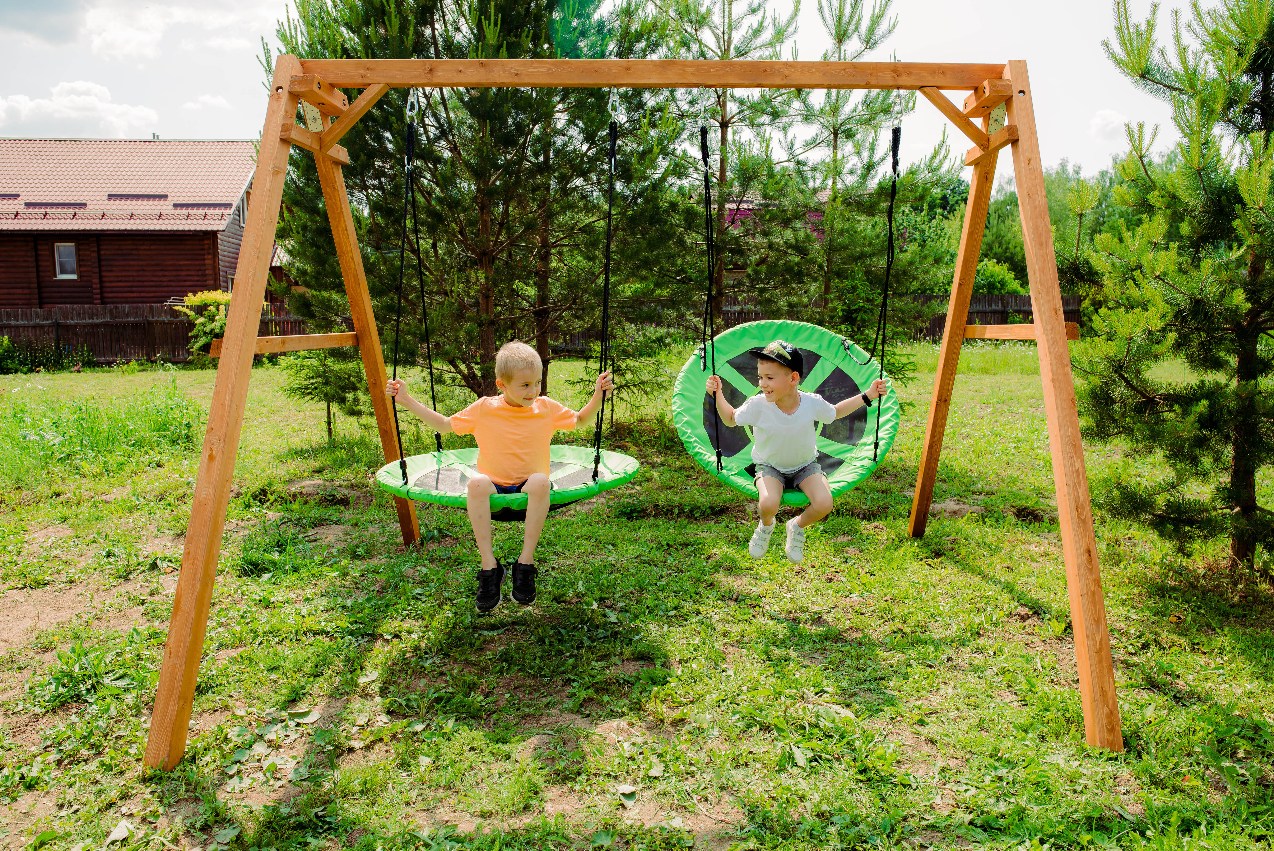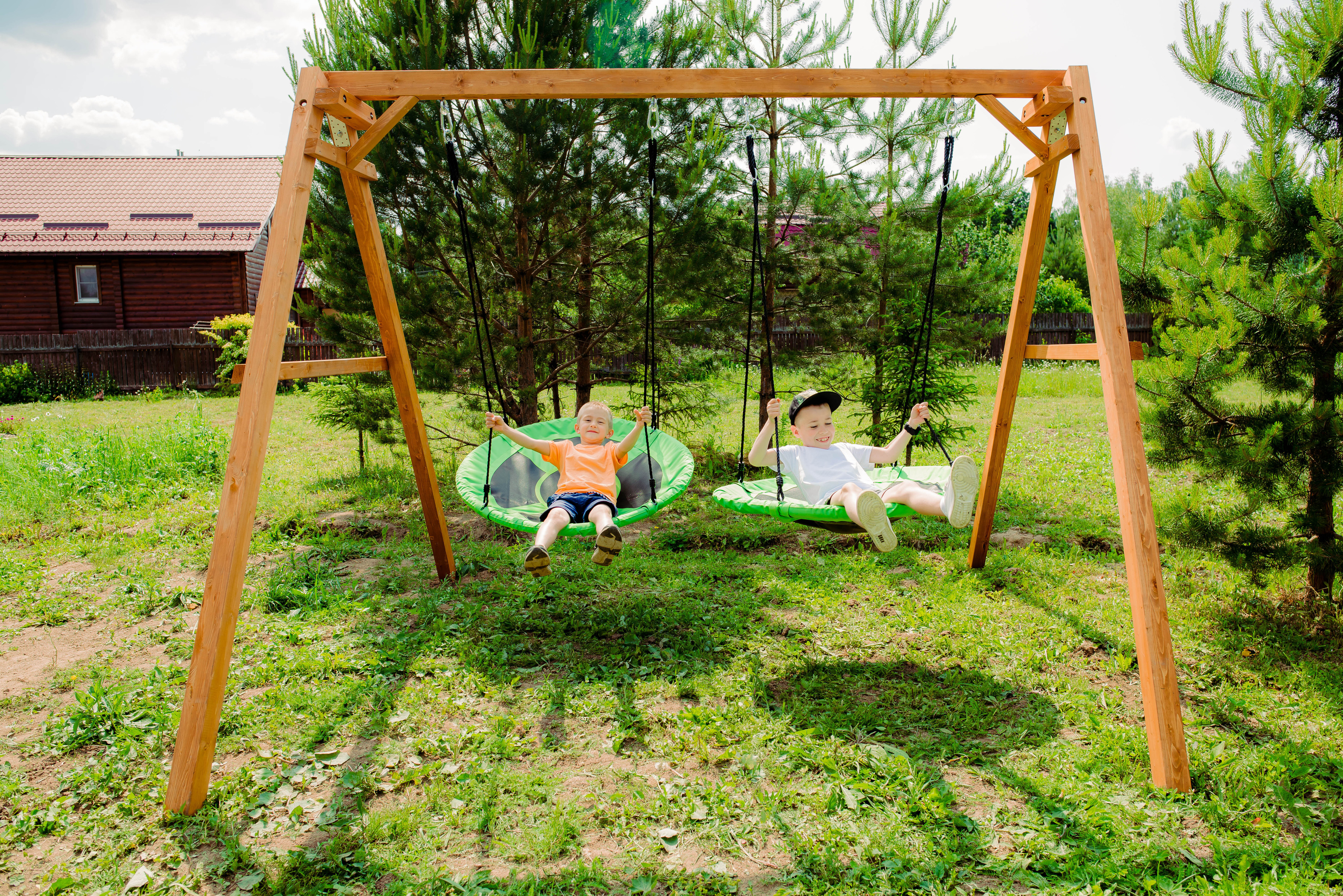 Детские игровые качели National Tree Company отлично подходят для использования на даче и во дворе частного дома, способствуют развитию координации и балансировки у детей. Такие уличные качели – это не только развлечение, но и возможность для детей развивать социальные навыки. Игры на качелях способны объединять детей, способствуя взаимодействию и коммуникации во время веселых совместных развлечений. Качели, выполненные из качественного дерева, легко вписываются в любой ландшафт и могут стать отличным дополнением к садовому дизайну. Естественные материалы устойчивы к воздействию внешней среды, что обеспечивает долгий срок службы. Все карабины и кронштейны в комплекте помогают создать надежную конструкцию. Благодаря этому, качели отличаются высокой безопасностью для малышей с разным весом. В конечном итоге, детские игровые качели – это не просто предмет для игры, а важный элемент, способствующий всестороннему развитию ребенка и укреплению семейных связей Комплектация и размеры В комплект входят: деревянный каркас, качели гнездо Свиби - 2 шт, карабины и кронштейны. Размеры качелей составляют 2900*2700*2200 мм, а вес - 54 кг. Установка и размещение Деревянные уличные качели устанавливается в землю и не требует бетонирования. Размещается на улице, подходит для детей от 3 до 14 лет.