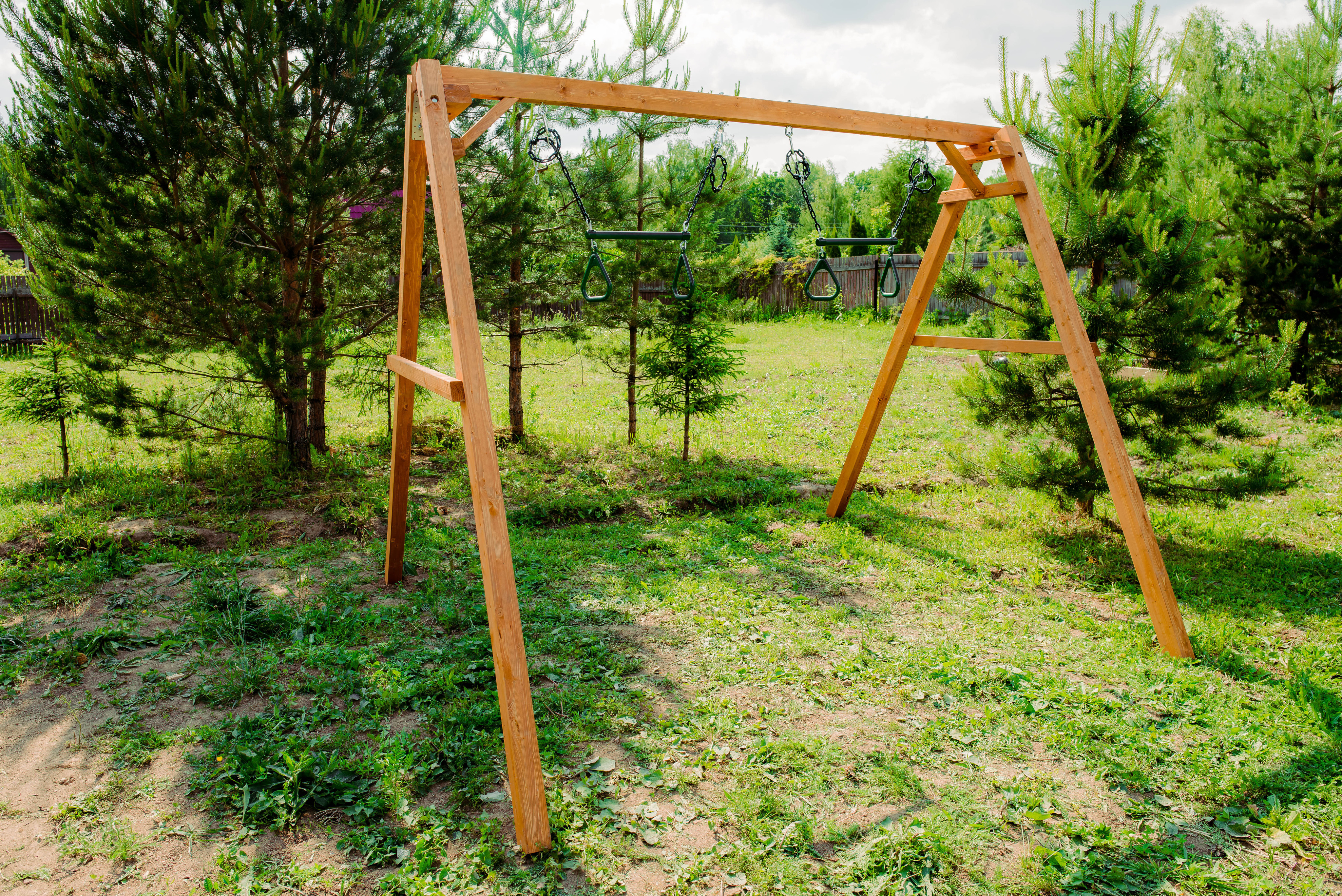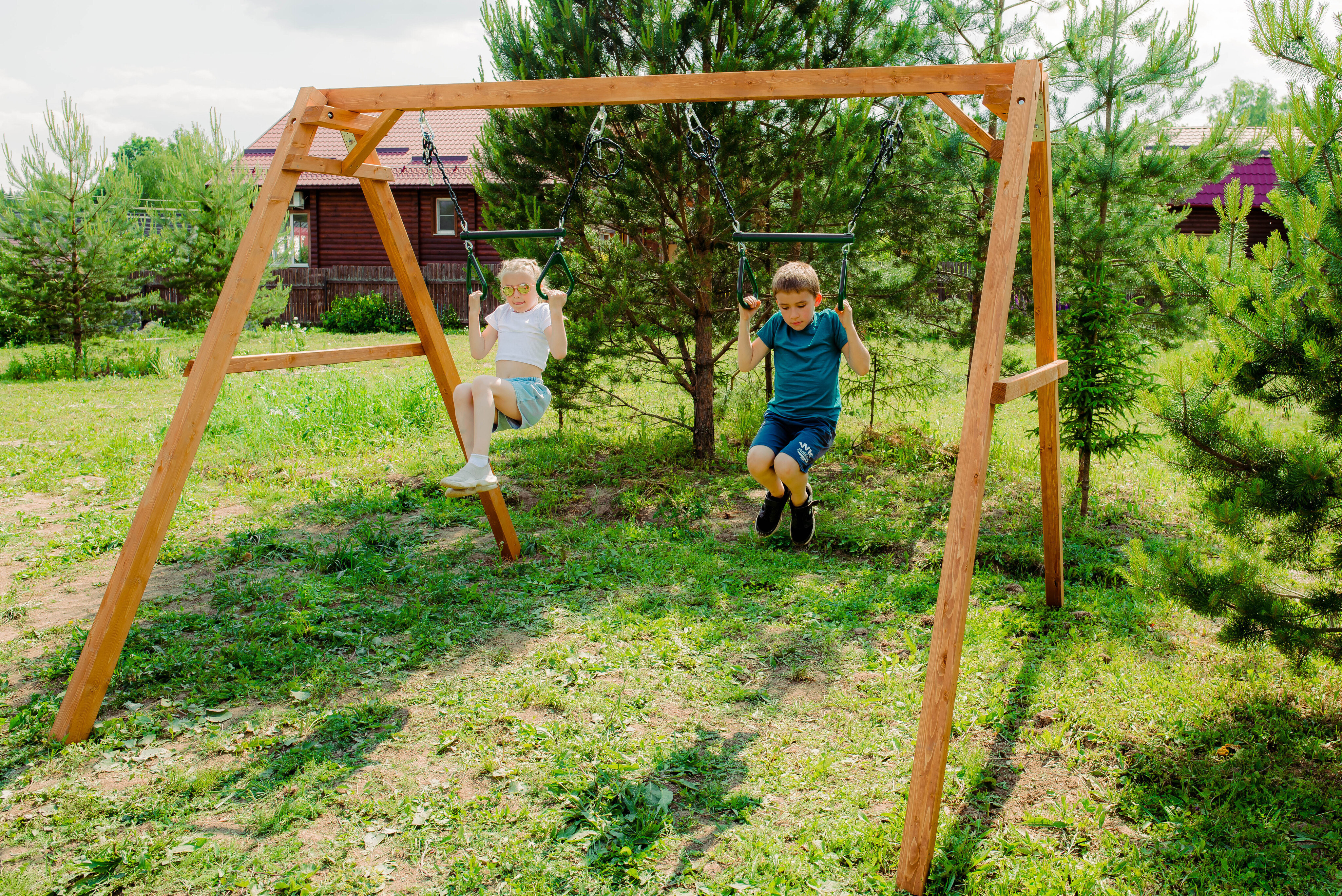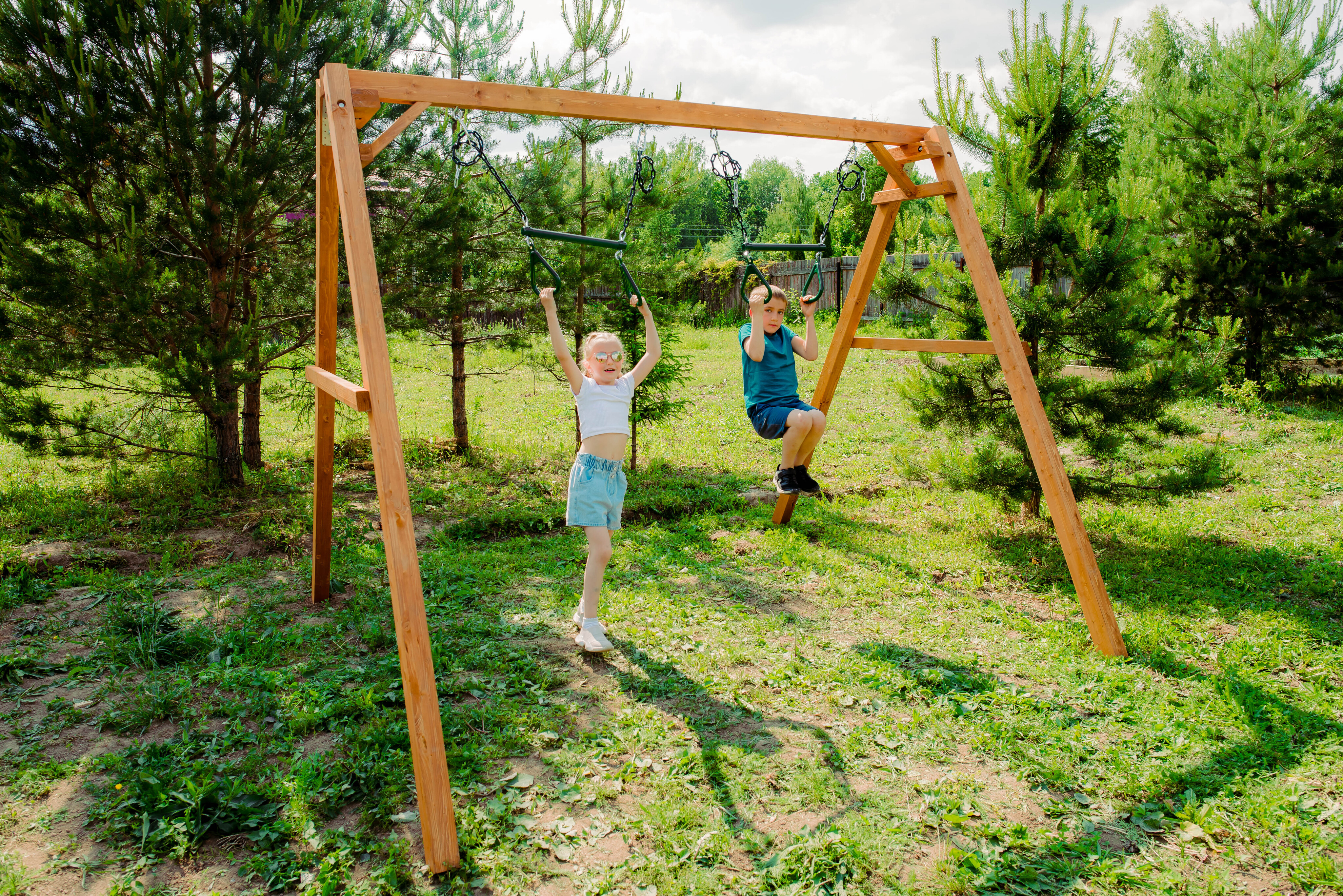 Детские игровые качели National Tree Company отлично подходят для использования на даче и во дворе частного дома, способствуют развитию координации и балансировки у детей. Такие уличные качели – это не только развлечение, но и возможность для детей развивать социальные навыки. Игры на качелях способны объединять детей, способствуя взаимодействию и коммуникации во время веселых совместных развлечений. Качели, выполненные из качественного дерева, легко вписываются в любой ландшафт и могут стать отличным дополнением к садовому дизайну. Естественные материалы устойчивы к воздействию внешней среды, что обеспечивает долгий срок службы. Все карабины и кронштейны в комплекте помогают создать надежную конструкцию. Благодаря этому, качели отличаются высокой безопасностью для малышей с разным весом. В конечном итоге, детские игровые качели – это не просто предмет для игры, а важный элемент, способствующий всестороннему развитию ребенка и укреплению семейных связей Комплектация и размеры В комплект входят: деревянный каркас, трапеция - 2 шт, карабины и кронштейны. Размеры качелей составляют 2900*2700*2200 мм, а вес - 54 кг. Установка и размещение Деревянные уличные качели устанавливается в землю и не требует бетонирования. Размещается на улице, подходит для детей от 3 до 14 лет.