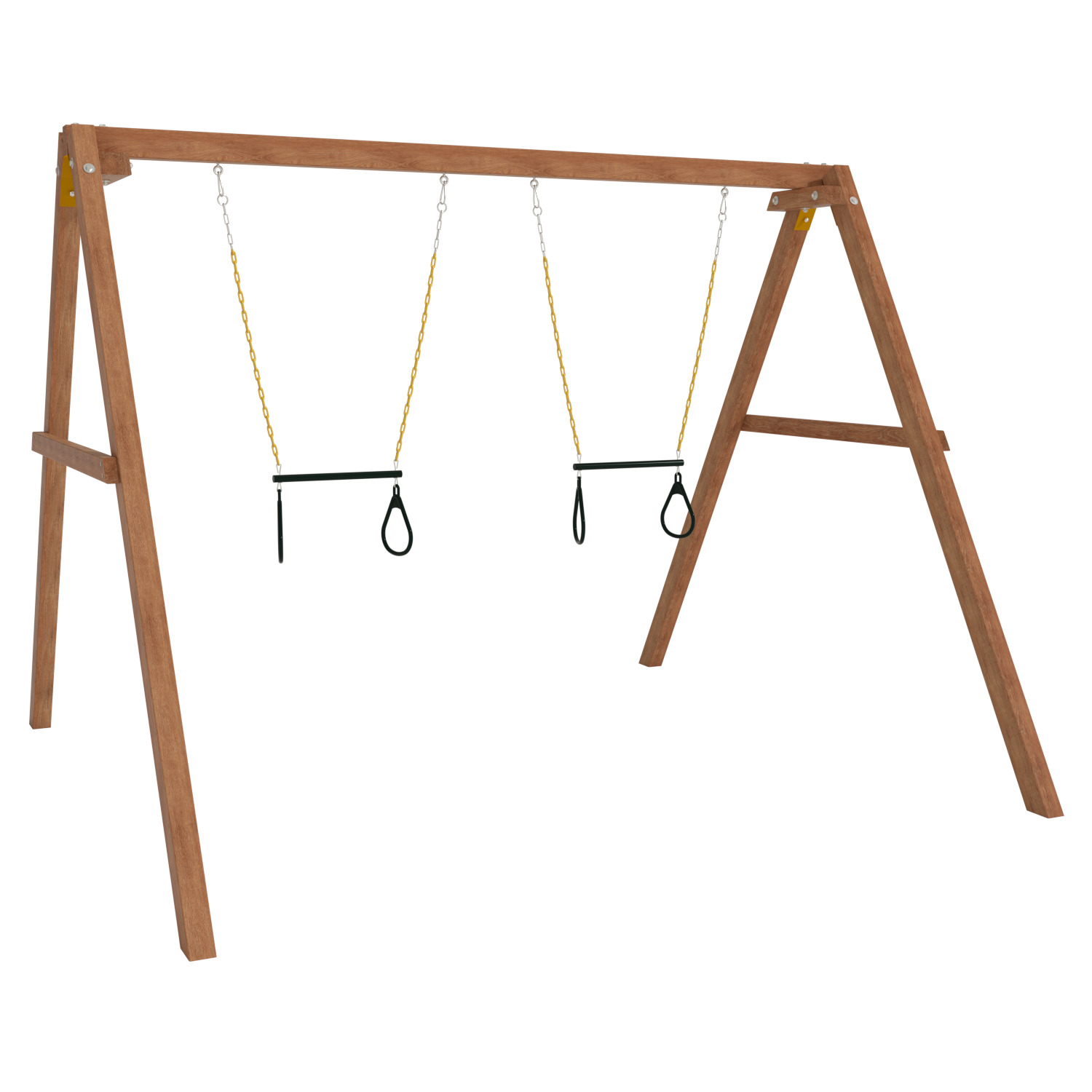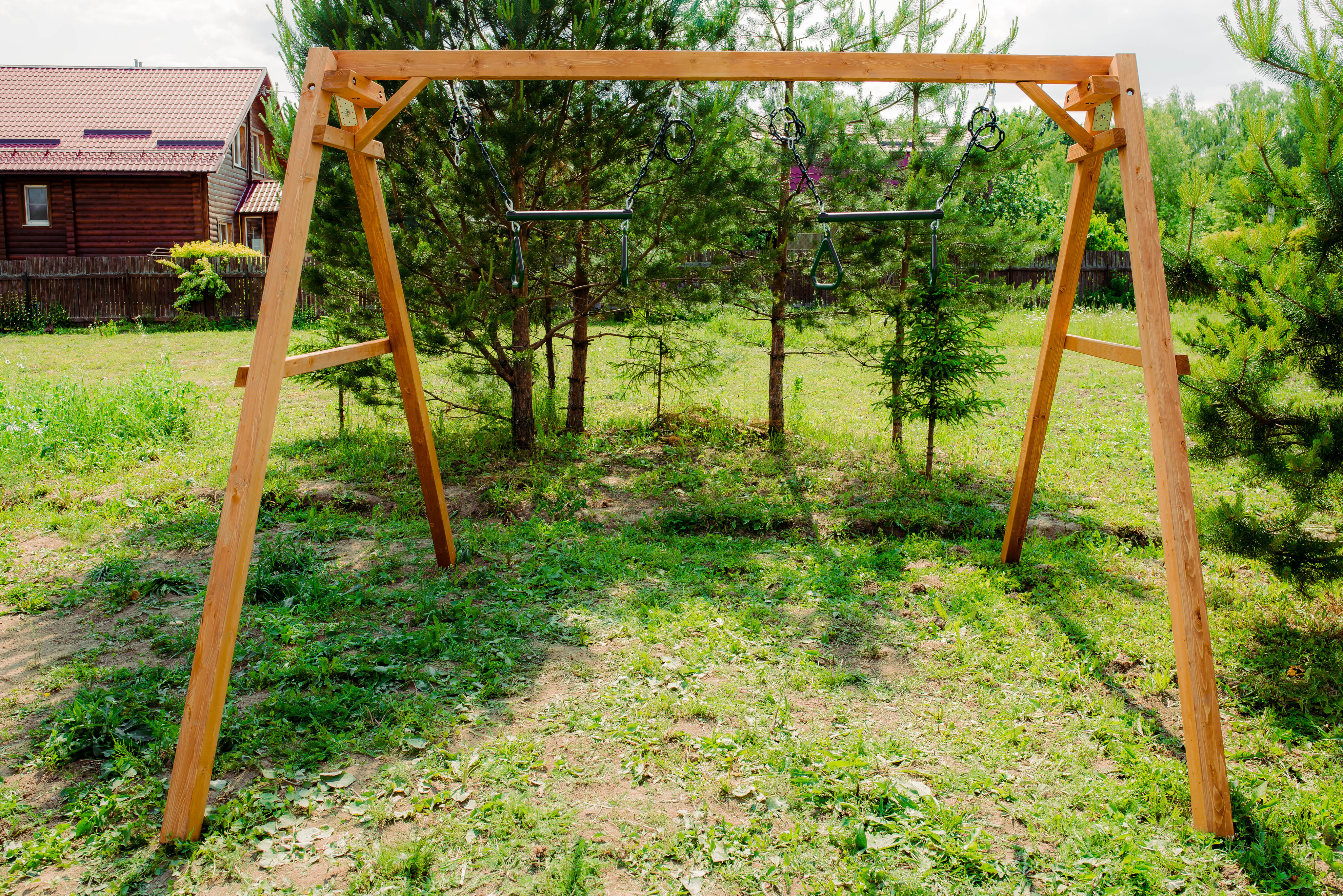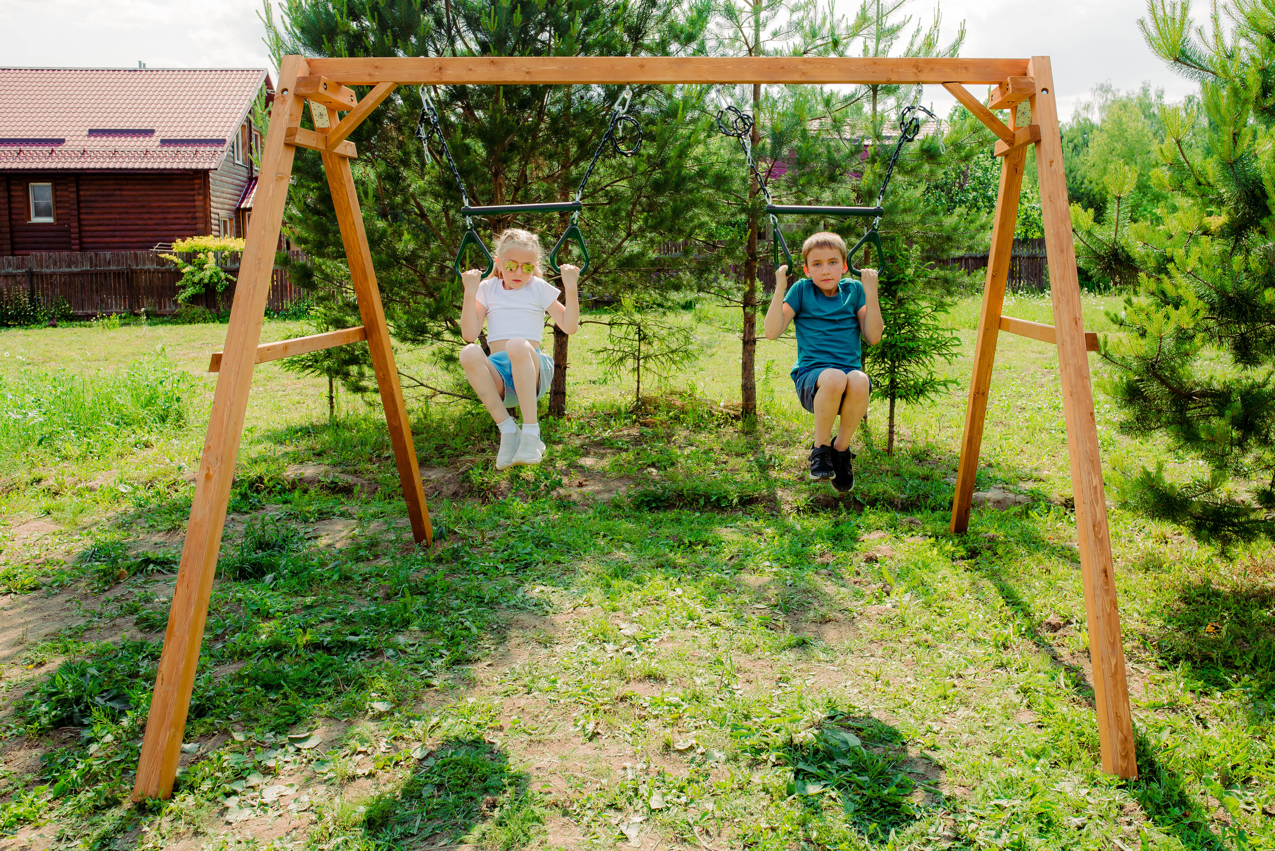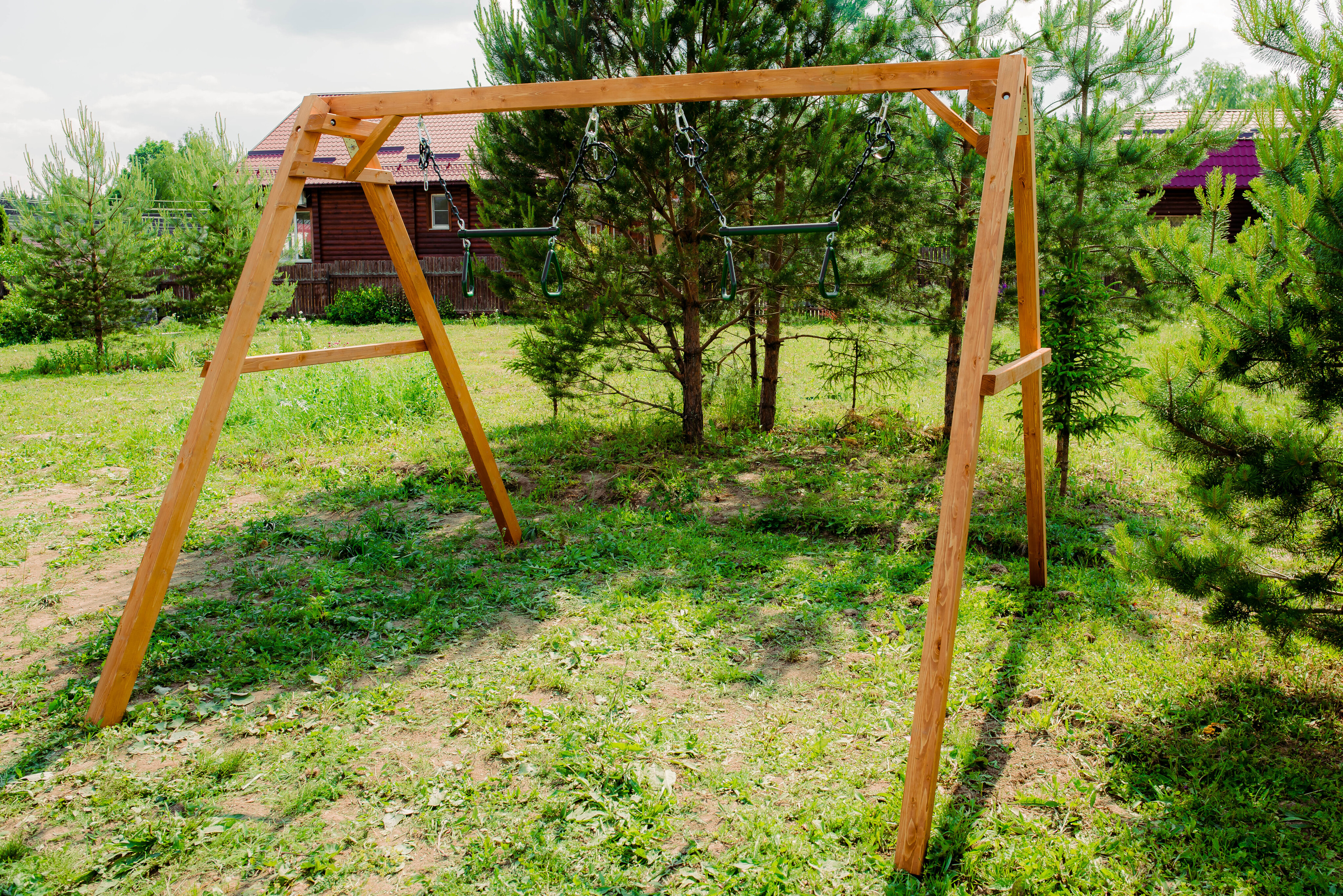 Детские игровые качели National Tree Company отлично подходят для использования на даче и во дворе частного дома, способствуют развитию координации и балансировки у детей. Такие уличные качели – это не только развлечение, но и возможность для детей развивать социальные навыки. Игры на качелях способны объединять детей, способствуя взаимодействию и коммуникации во время веселых совместных развлечений. Качели, выполненные из качественного дерева, легко вписываются в любой ландшафт и могут стать отличным дополнением к садовому дизайну. Естественные материалы устойчивы к воздействию внешней среды, что обеспечивает долгий срок службы. Все карабины и кронштейны в комплекте помогают создать надежную конструкцию. Благодаря этому, качели отличаются высокой безопасностью для малышей с разным весом. В конечном итоге, детские игровые качели – это не просто предмет для игры, а важный элемент, способствующий всестороннему развитию ребенка и укреплению семейных связей Комплектация и размеры В комплект входят: деревянный каркас, трапеция - 2 шт, карабины и кронштейны. Размеры качелей составляют 2900*2700*2200 мм, а вес - 54 кг. Установка и размещение Деревянные уличные качели устанавливается в землю и не требует бетонирования. Размещается на улице, подходит для детей от 3 до 14 лет.