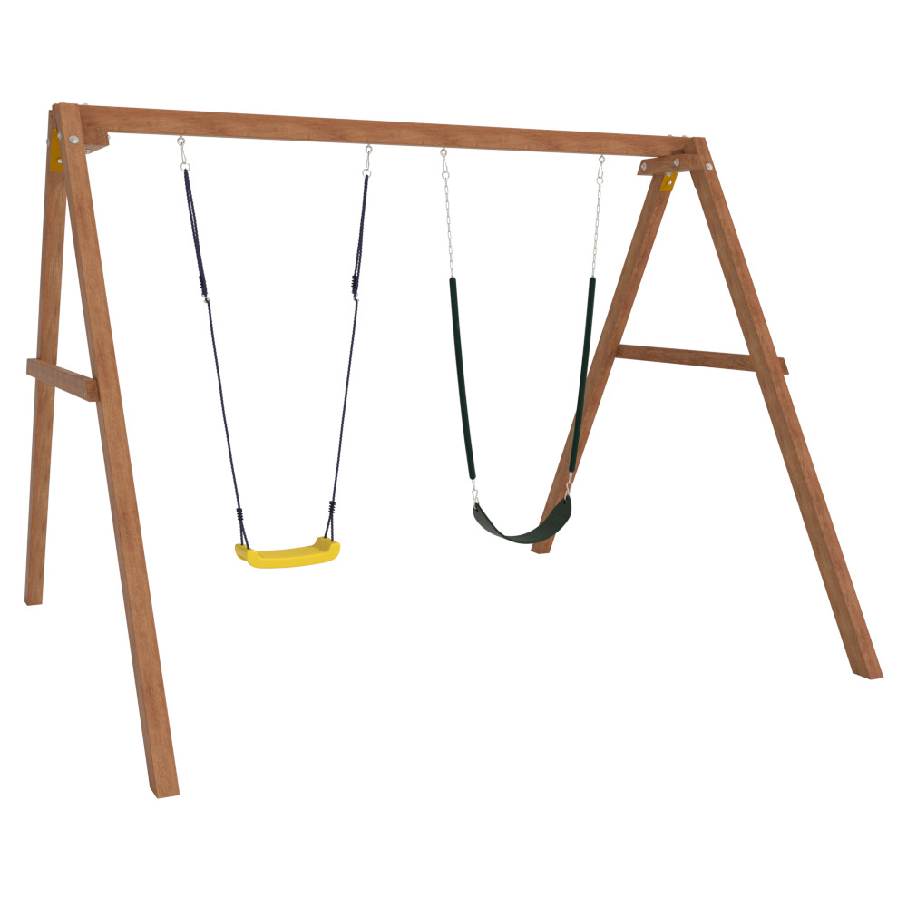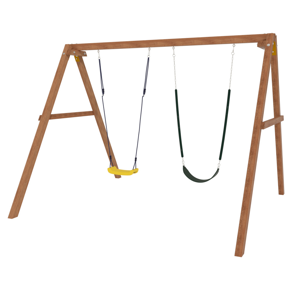 Детские игровые качели National Tree Company отлично подходят для использования на даче и во дворе частного дома, способствуют развитию координации и балансировки у детей. Такие уличные качели – это не только развлечение, но и возможность для детей развивать социальные навыки. Игры на качелях способны объединять детей, способствуя взаимодействию и коммуникации во время веселых совместных развлечений. Качели, выполненные из качественного дерева, легко вписываются в любой ландшафт и могут стать отличным дополнением к садовому дизайну. Естественные материалы устойчивы к воздействию внешней среды, что обеспечивает долгий срок службы. Все карабины и кронштейны в комплекте помогают создать надежную конструкцию. Благодаря этому, качели отличаются высокой безопасностью для малышей с разным весом. В конечном итоге, детские игровые качели – это не просто предмет для игры, а важный элемент, способствующий всестороннему развитию ребенка и укреплению семейных связей Комплектация и размеры В комплект входят: деревянный каркас, качели гибкие 2 шт, карабины и кронштейны. Размеры качелей составляют 2900*2700*2200 мм, а вес - 54 кг. Установка и размещение Деревянные уличные качели устанавливается в землю и не требует бетонирования. Размещается на улице, подходит для детей от 3 до 14 лет.