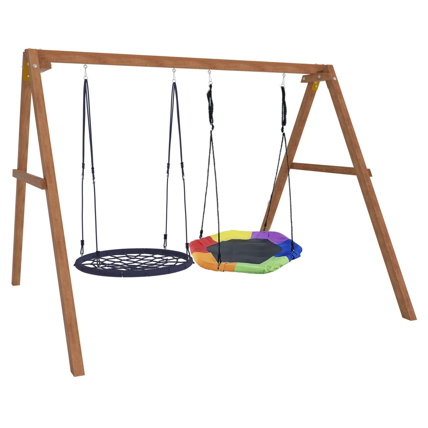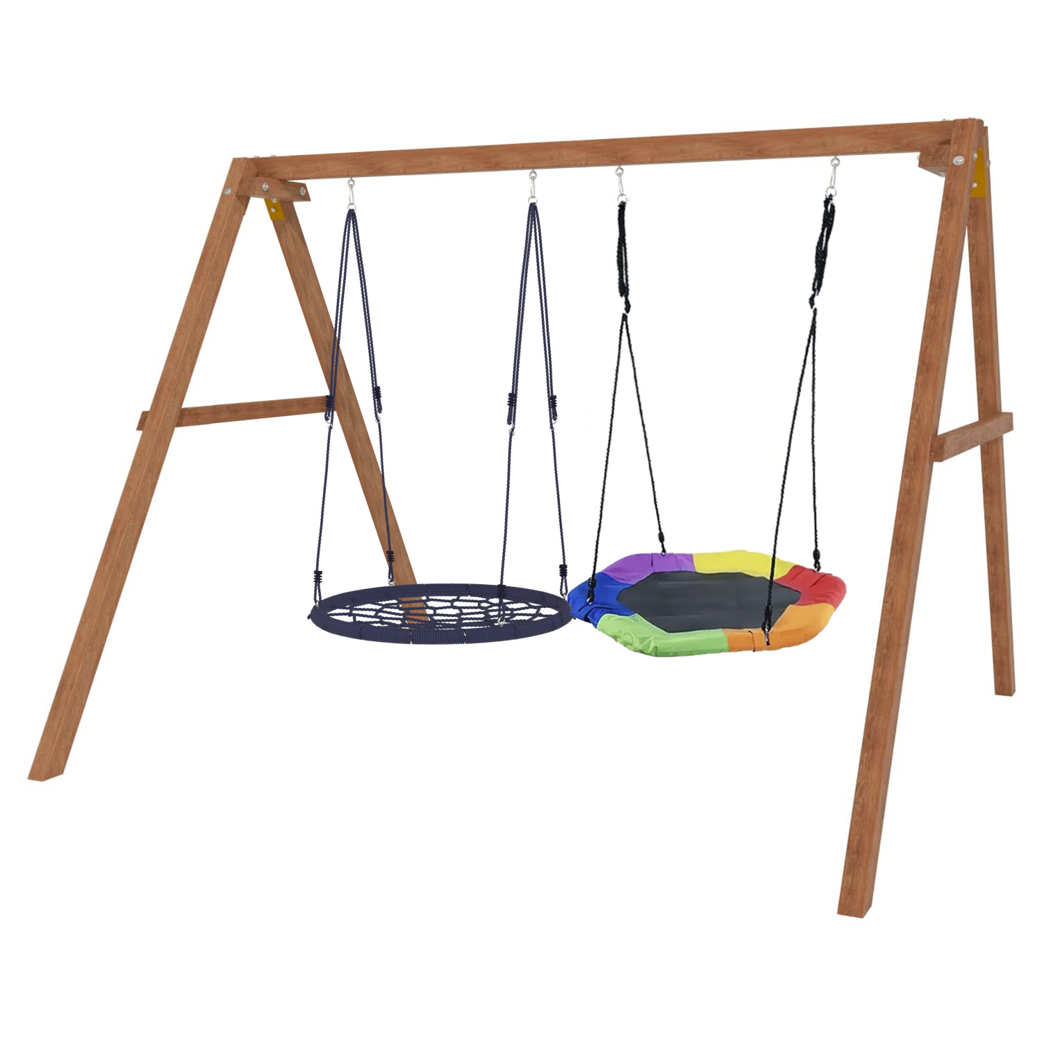 Детские игровые качели National Tree Company отлично подходят для использования на даче и во дворе частного дома, способствуют развитию координации и балансировки у детей. Такие уличные качели – это не только развлечение, но и возможность для детей развивать социальные навыки. Игры на качелях способны объединять детей, способствуя взаимодействию и коммуникации во время веселых совместных развлечений. Качели, выполненные из качественного дерева, легко вписываются в любой ландшафт и могут стать отличным дополнением к садовому дизайну. Естественные материалы устойчивы к воздействию внешней среды, что обеспечивает долгий срок службы. Все карабины и кронштейны в комплекте помогают создать надежную конструкцию. Благодаря этому, качели отличаются высокой безопасностью для малышей с разным весом. В конечном итоге, детские игровые качели – это не просто предмет для игры, а важный элемент, способствующий всестороннему развитию ребенка и укреплению семейных связей Комплектация и размеры В комплект входят: деревянный каркас, качели гнездо 100 см - 1 шт, качели гнездо Гексагон - 1 шт, карабины и кронштейны. Размеры качелей составляют 2900*2700*2200 мм, а вес - 54 кг. Установка и размещение Деревянные уличные качели устанавливается в землю и не требует бетонирования. Размещается на улице, подходит для детей от 3 до 14 лет.
