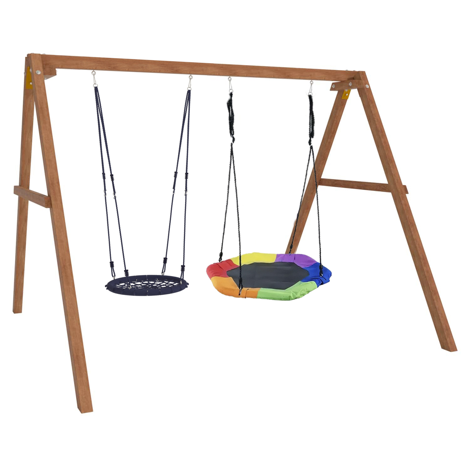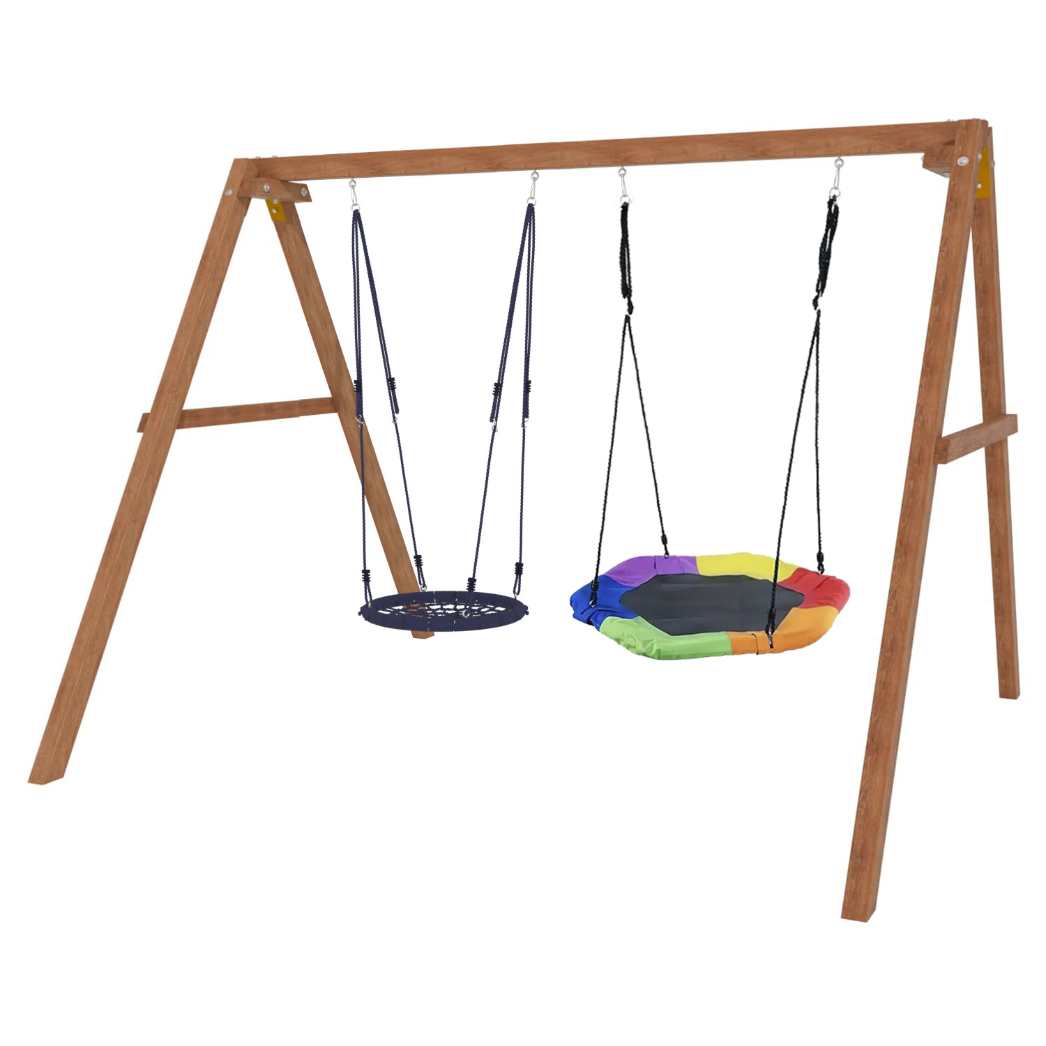 Детские игровые качели National Tree Company отлично подходят для использования на даче и во дворе частного дома, способствуют развитию координации и балансировки у детей. Такие уличные качели – это не только развлечение, но и возможность для детей развивать социальные навыки. Игры на качелях способны объединять детей, способствуя взаимодействию и коммуникации во время веселых совместных развлечений. Качели, выполненные из качественного дерева, легко вписываются в любой ландшафт и могут стать отличным дополнением к садовому дизайну. Естественные материалы устойчивы к воздействию внешней среды, что обеспечивает долгий срок службы. Все карабины и кронштейны в комплекте помогают создать надежную конструкцию. Благодаря этому, качели отличаются высокой безопасностью для малышей с разным весом. В конечном итоге, детские игровые качели – это не просто предмет для игры, а важный элемент, способствующий всестороннему развитию ребенка и укреплению семейных связей Комплектация и размеры В комплект входят: деревянный каркас, качели гнездо 60 см - 1 шт, качели гнездо Гексагон - 1 шт, карабины и кронштейны. Размеры качелей составляют 2900*2700*2200 мм, а вес - 54 кг. Установка и размещение Деревянные уличные качели устанавливается в землю и не требует бетонирования. Размещается на улице, подходит для детей от 3 до 14 лет.