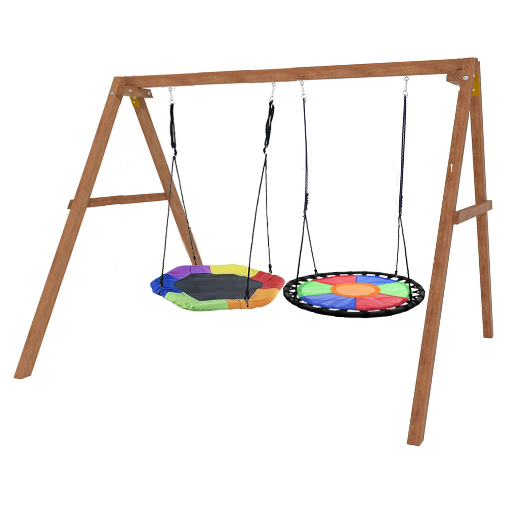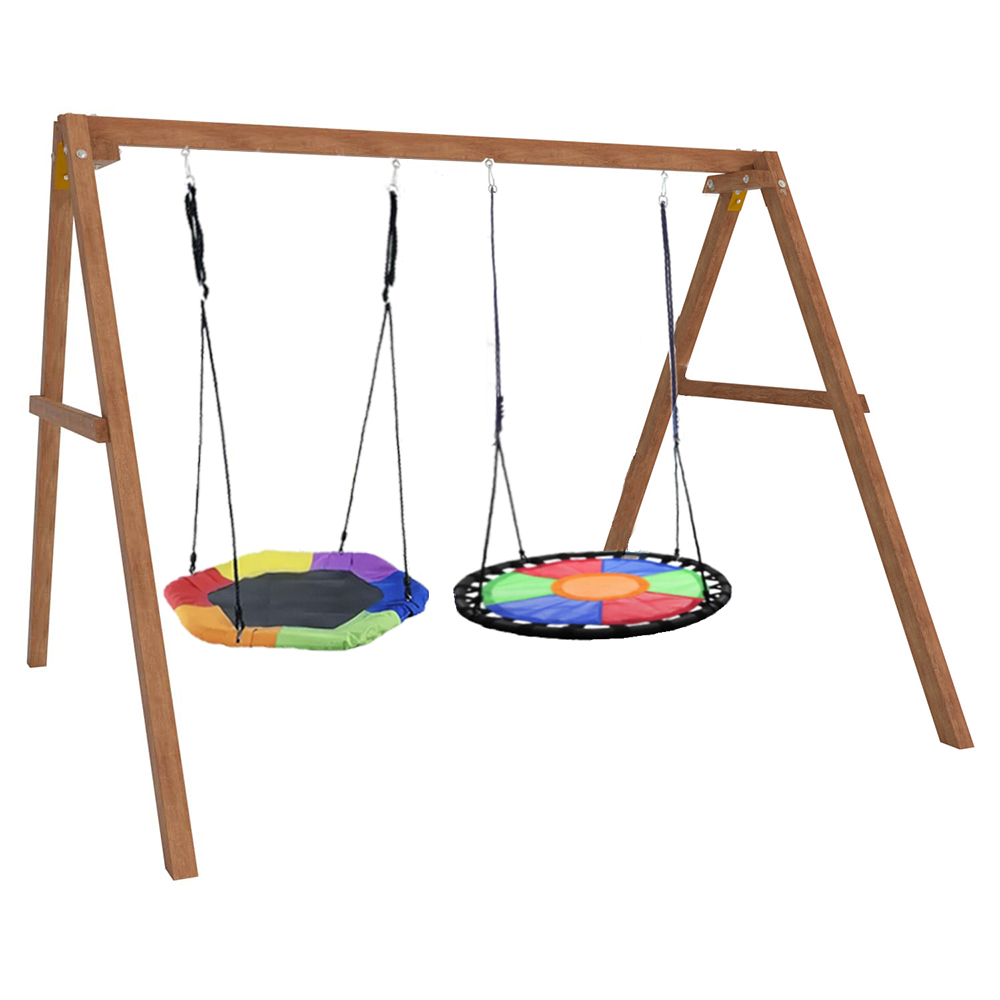 Детские игровые качели National Tree Company отлично подходят для использования на даче и во дворе частного дома, способствуют развитию координации и балансировки у детей. Такие уличные качели – это не только развлечение, но и возможность для детей развивать социальные навыки. Игры на качелях способны объединять детей, способствуя взаимодействию и коммуникации во время веселых совместных развлечений. Качели, выполненные из качественного дерева, легко вписываются в любой ландшафт и могут стать отличным дополнением к садовому дизайну. Естественные материалы устойчивы к воздействию внешней среды, что обеспечивает долгий срок службы. Все карабины и кронштейны в комплекте помогают создать надежную конструкцию. Благодаря этому, качели отличаются высокой безопасностью для малышей с разным весом. В конечном итоге, детские игровые качели – это не просто предмет для игры, а важный элемент, способствующий всестороннему развитию ребенка и укреплению семейных связей Комплектация и размеры В комплект входят: деревянный каркас, качели гнездо Гексагон - 1 шт, качели гнездо Свиби - 1 шт, карабины и кронштейны. Размеры качелей составляют 2900*2700*2200 мм, а вес - 54 кг. Установка и размещение Деревянные уличные качели устанавливается в землю и не требует бетонирования. Размещается на улице, подходит для детей от 3 до 14 лет.