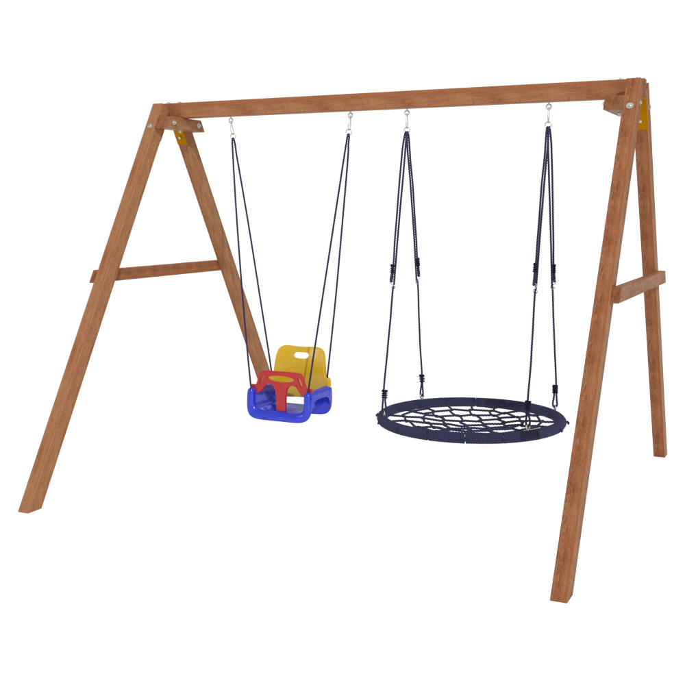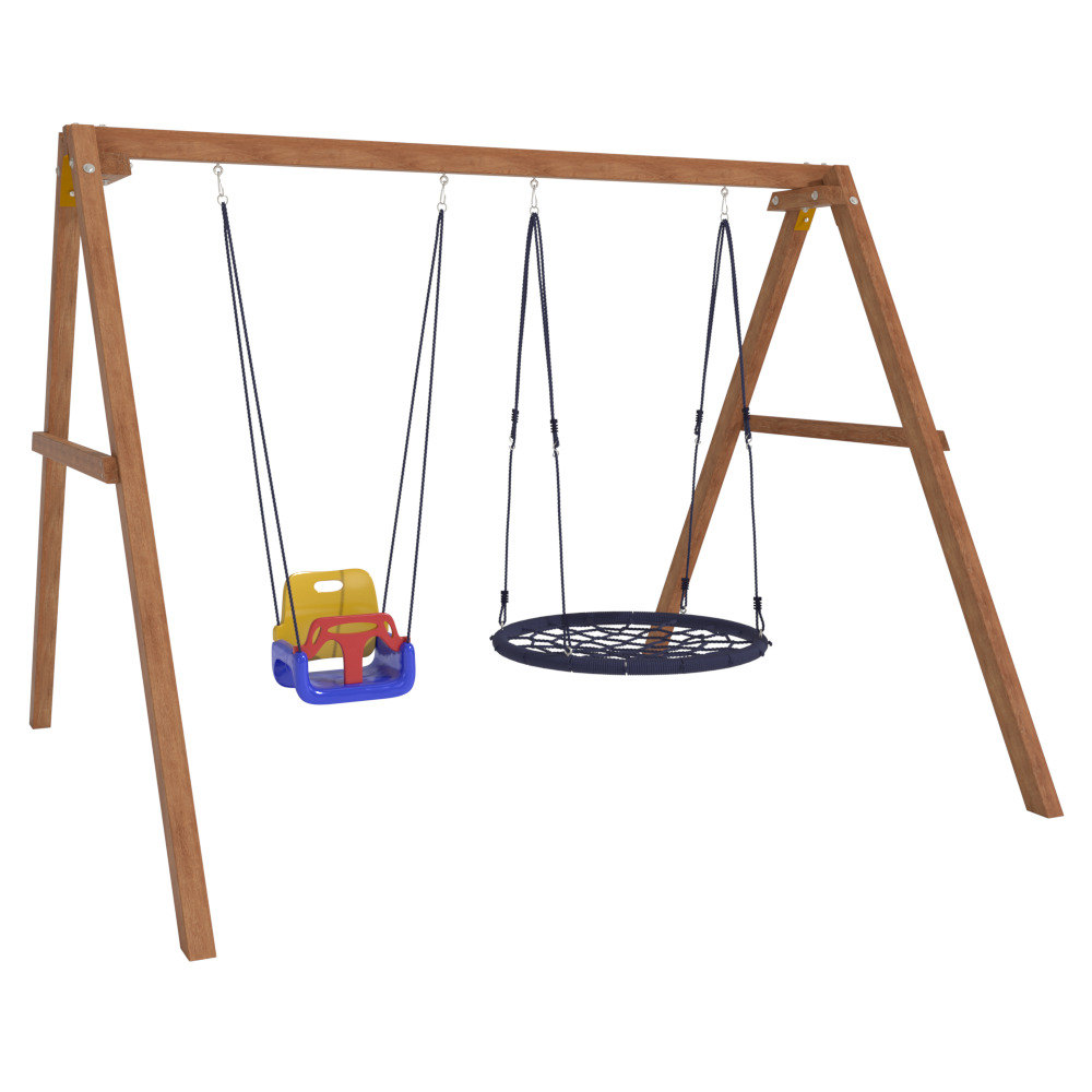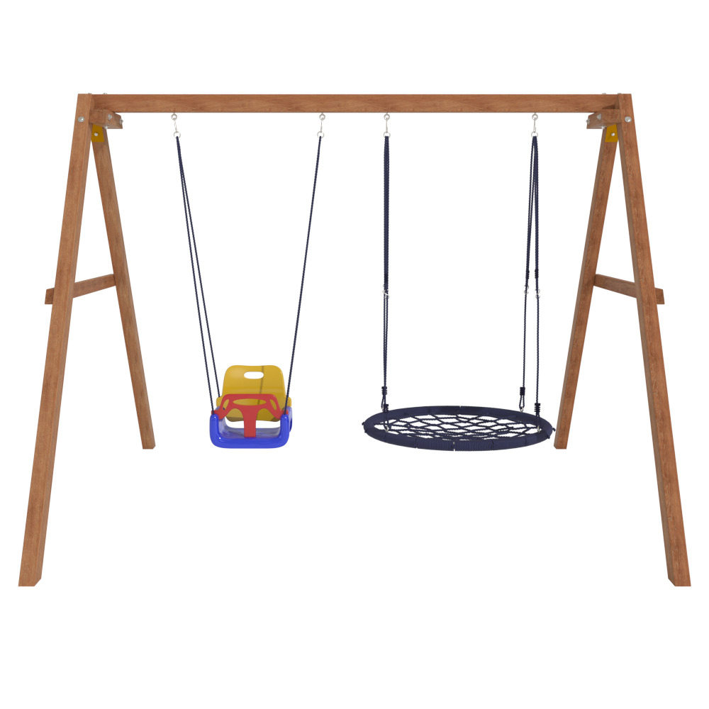 Детские игровые качели National Tree Company отлично подходят для использования на даче и во дворе частного дома, способствуют развитию координации и балансировки у детей. Такие уличные качели – это не только развлечение, но и возможность для детей развивать социальные навыки. Игры на качелях способны объединять детей, способствуя взаимодействию и коммуникации во время веселых совместных развлечений. Качели, выполненные из качественного дерева, легко вписываются в любой ландшафт и могут стать отличным дополнением к садовому дизайну. Естественные материалы устойчивы к воздействию внешней среды, что обеспечивает долгий срок службы. Все карабины и кронштейны в комплекте помогают создать надежную конструкцию. Благодаря этому, качели отличаются высокой безопасностью для малышей с разным весом. В конечном итоге, детские игровые качели – это не просто предмет для игры, а важный элемент, способствующий всестороннему развитию ребенка и укреплению семейных связей Комплектация и размеры В комплект входят: деревянный каркас, качели со спинкой - 1 шт, качели гнездо 1 шт, карабины и кронштейны. Размеры качелей составляют 2900*2700*2200 мм, а вес - 54 кг. Установка и размещение Деревянные уличные качели устанавливается в землю и не требует бетонирования. Размещается на улице, подходит для детей от 3 до 14 лет.