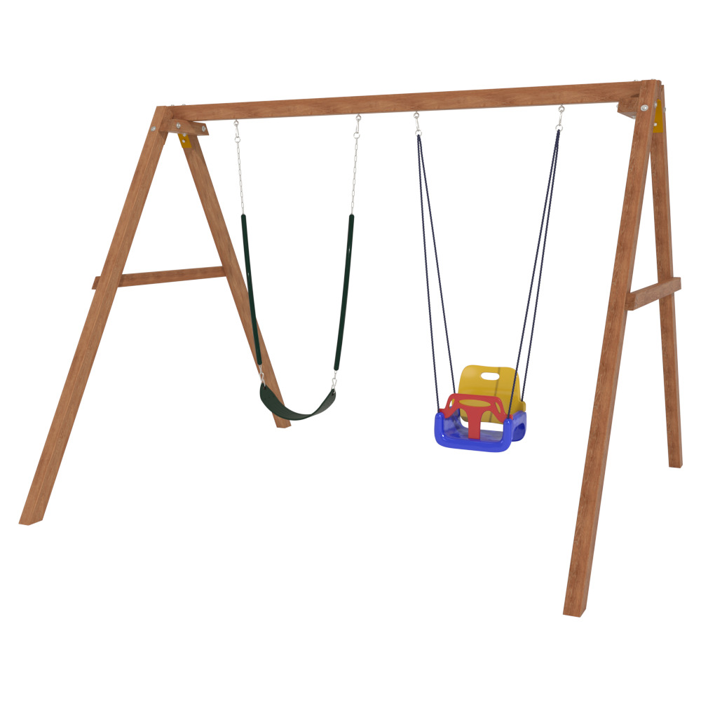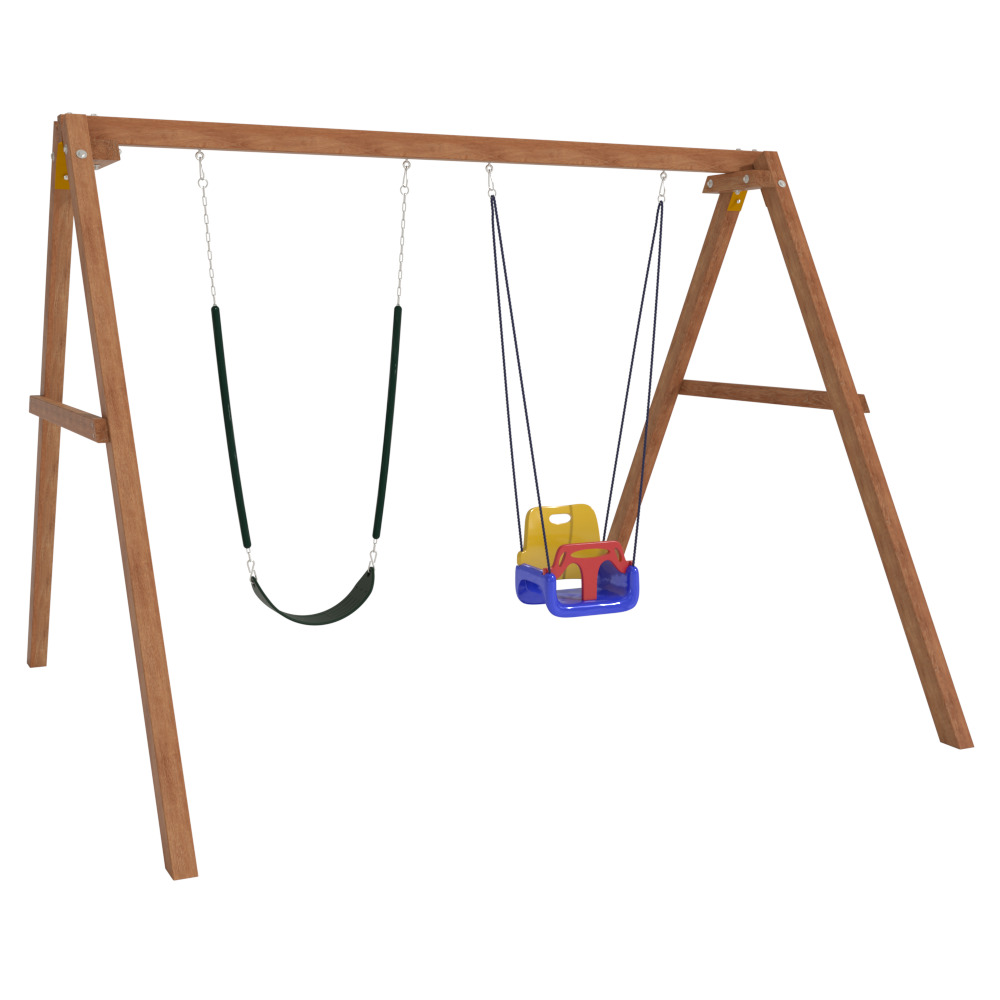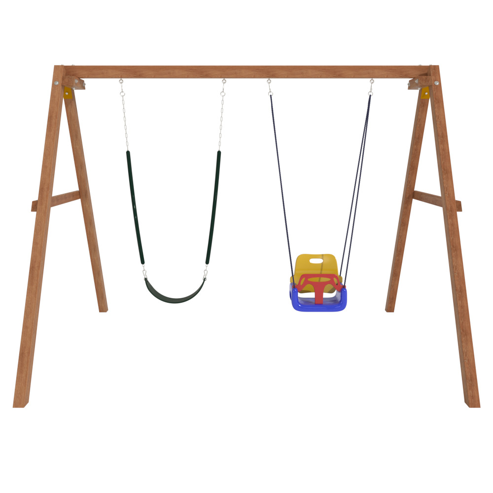 Детские игровые качели National Tree Company отлично подходят для использования на даче и во дворе частного дома, способствуют развитию координации и балансировки у детей. Такие уличные качели – это не только развлечение, но и возможность для детей развивать социальные навыки. Игры на качелях способны объединять детей, способствуя взаимодействию и коммуникации во время веселых совместных развлечений. Качели, выполненные из качественного дерева, легко вписываются в любой ландшафт и могут стать отличным дополнением к садовому дизайну. Естественные материалы устойчивы к воздействию внешней среды, что обеспечивает долгий срок службы. Все карабины и кронштейны в комплекте помогают создать надежную конструкцию. Благодаря этому, качели отличаются высокой безопасностью для малышей с разным весом. В конечном итоге, детские игровые качели – это не просто предмет для игры, а важный элемент, способствующий всестороннему развитию ребенка и укреплению семейных связей Комплектация и размеры В комплект входят: деревянный каркас, качели со спинкой - 1 шт, гибкие качели 1 шт, карабины и кронштейны. Размеры качелей составляют 2900*2700*2200 мм, а вес - 54 кг. Установка и размещение Деревянные уличные качели устанавливается в землю и не требует бетонирования. Размещается на улице, подходит для детей от 3 до 14 лет.