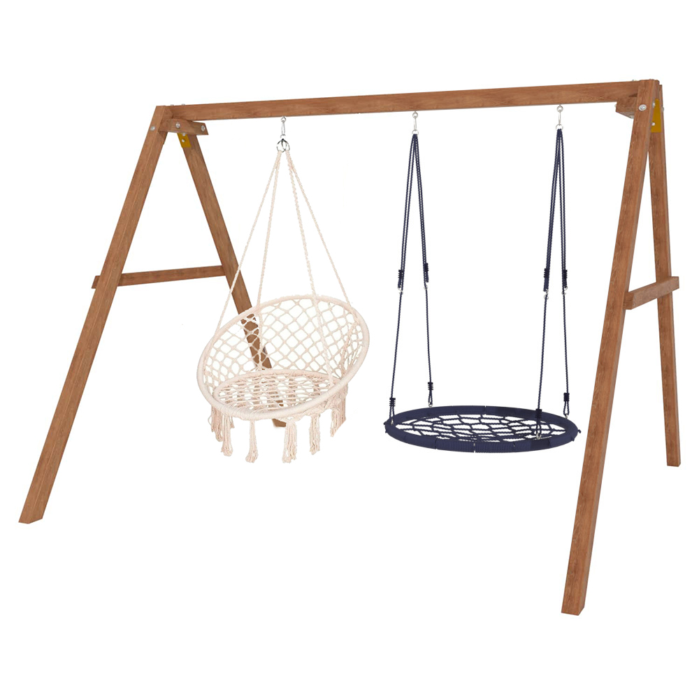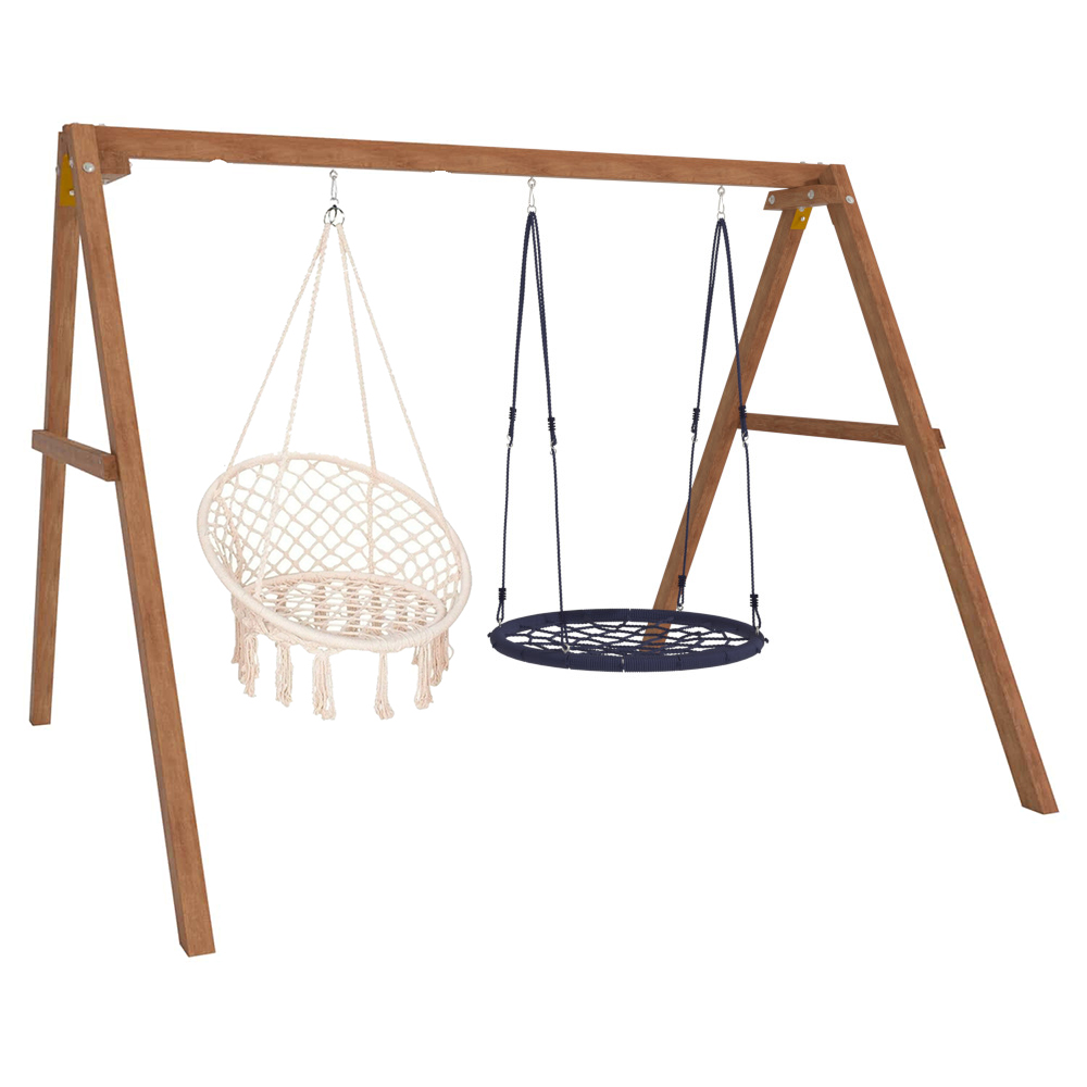 Детские игровые качели National Tree Company отлично подходят для использования на даче и во дворе частного дома, способствуют развитию координации и балансировки у детей. Такие уличные качели – это не только развлечение, но и возможность для детей развивать социальные навыки. Игры на качелях способны объединять детей, способствуя взаимодействию и коммуникации во время веселых совместных развлечений. Качели, выполненные из качественного дерева, легко вписываются в любой ландшафт и могут стать отличным дополнением к садовому дизайну. Естественные материалы устойчивы к воздействию внешней среды, что обеспечивает долгий срок службы. Все карабины и кронштейны в комплекте помогают создать надежную конструкцию. Благодаря этому, качели отличаются высокой безопасностью для малышей с разным весом. В конечном итоге, детские игровые качели – это не просто предмет для игры, а важный элемент, способствующий всестороннему развитию ребенка и укреплению семейных связей Комплектация и размеры В комплект входят: деревянный каркас, подвесное кресло бежевое - 1 шт, качели гнездо 100 см - 1 шт, карабины и кронштейны. Размеры качелей составляют 2900*2700*2200 мм, а вес - 54 кг. Установка и размещение Деревянные уличные качели устанавливается в землю и не требует бетонирования. Размещается на улице, подходит для детей от 3 до 14 лет.