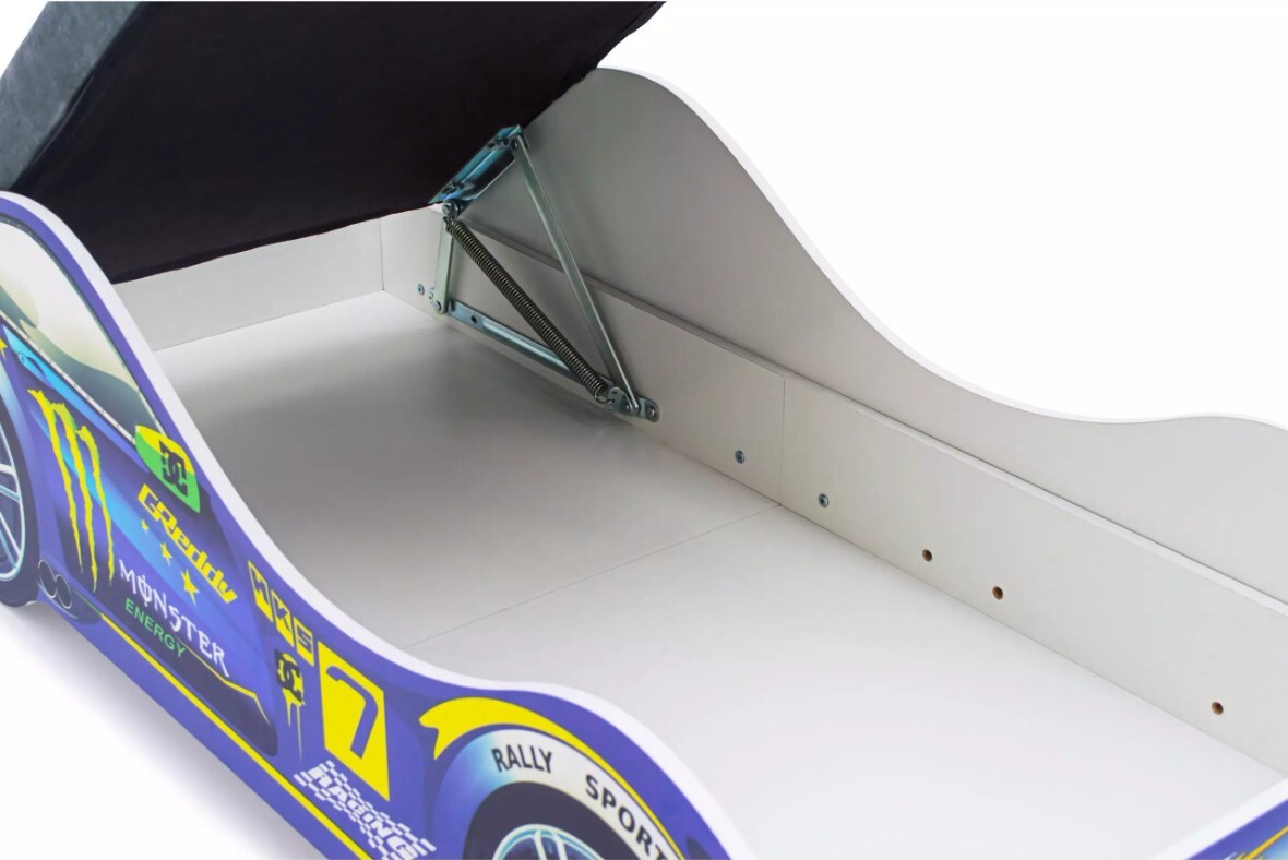 Детская кровать-машина “Молния” с подъемным механизмом станет любимым местом для сна и игр мальчика или девочки от 2 до 10-12 лет.