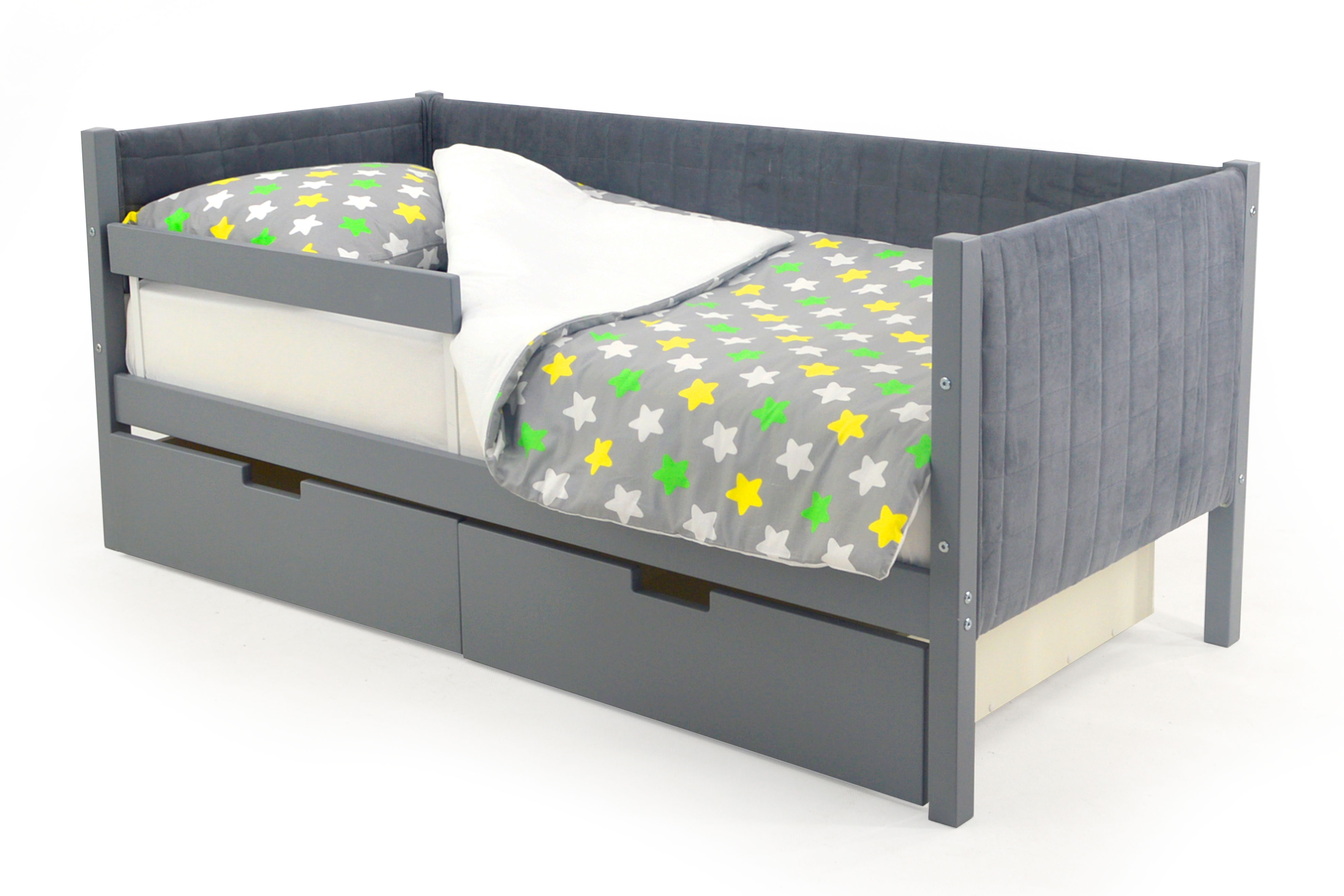 Детская кровать-тахта мягкая с ящиками и бортиком Бельмарко Svogen