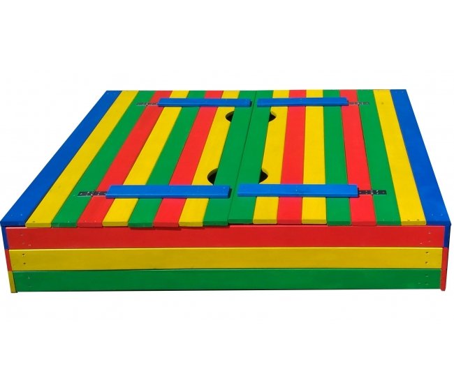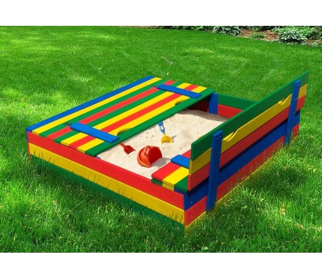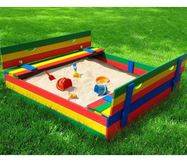 конструкция песочницы с откидной крышкой позволяет защитить песок от листьев и осадков, а также исключить загрязнения животными