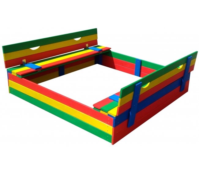 защитная крышка легким движением превращается в удобные скамейки, что позволит вашим детям обнаружить в новом сооружении на детской площадке дополнительные преимущества для развлечений