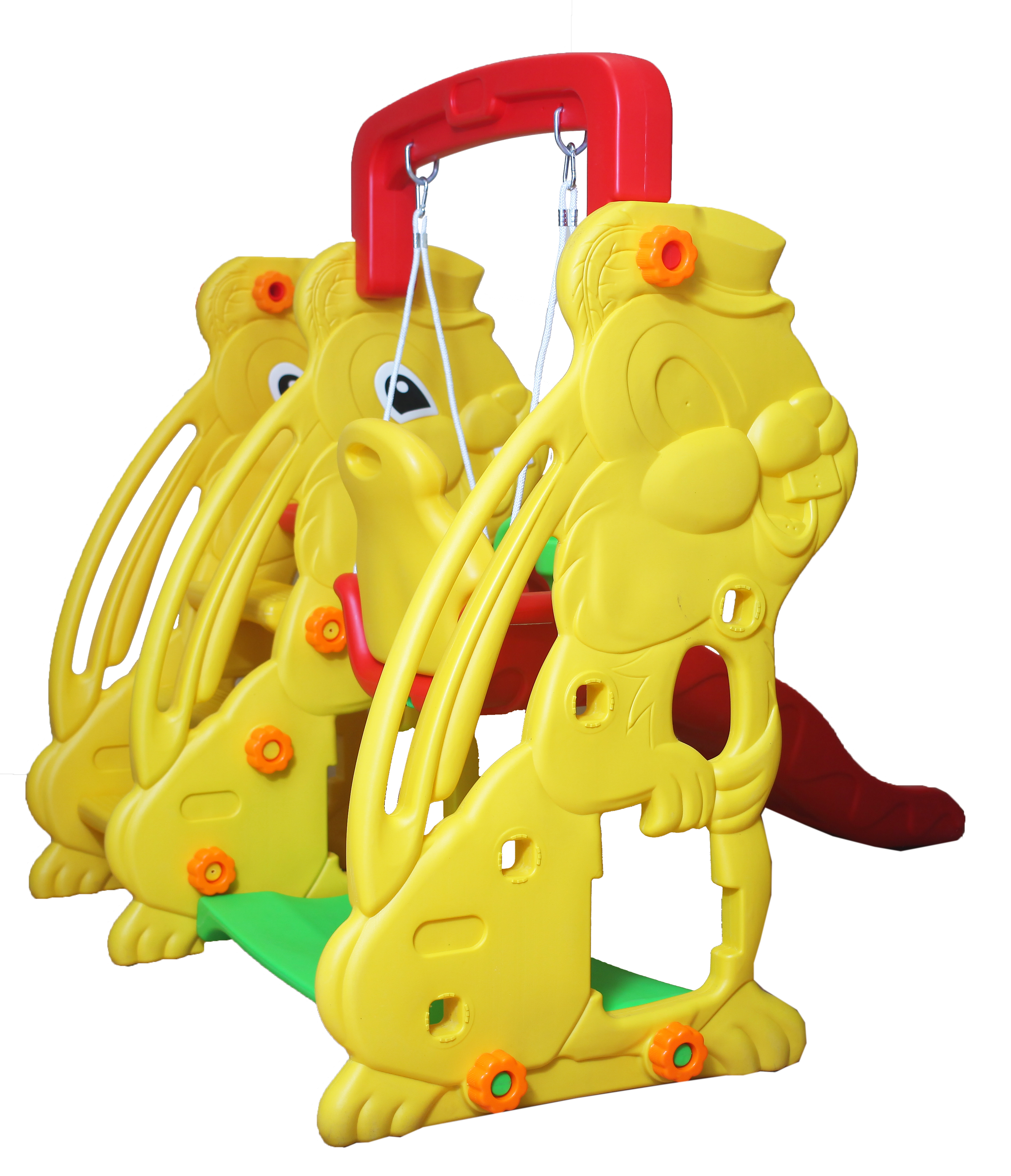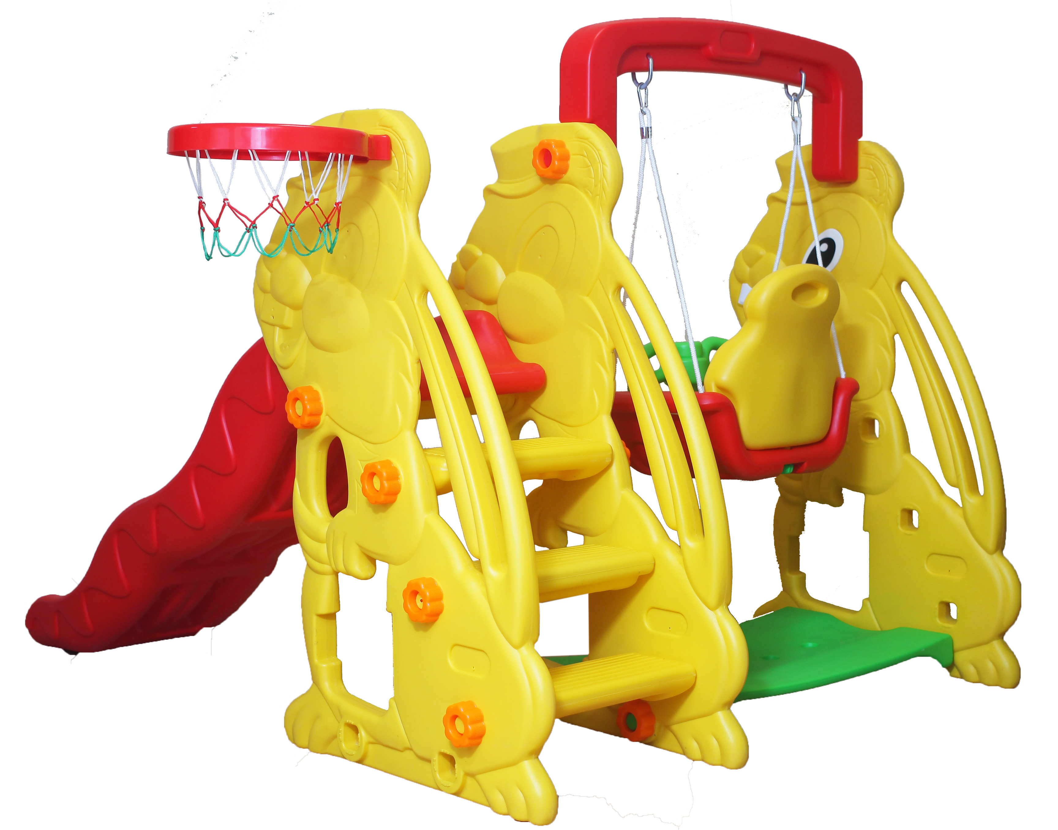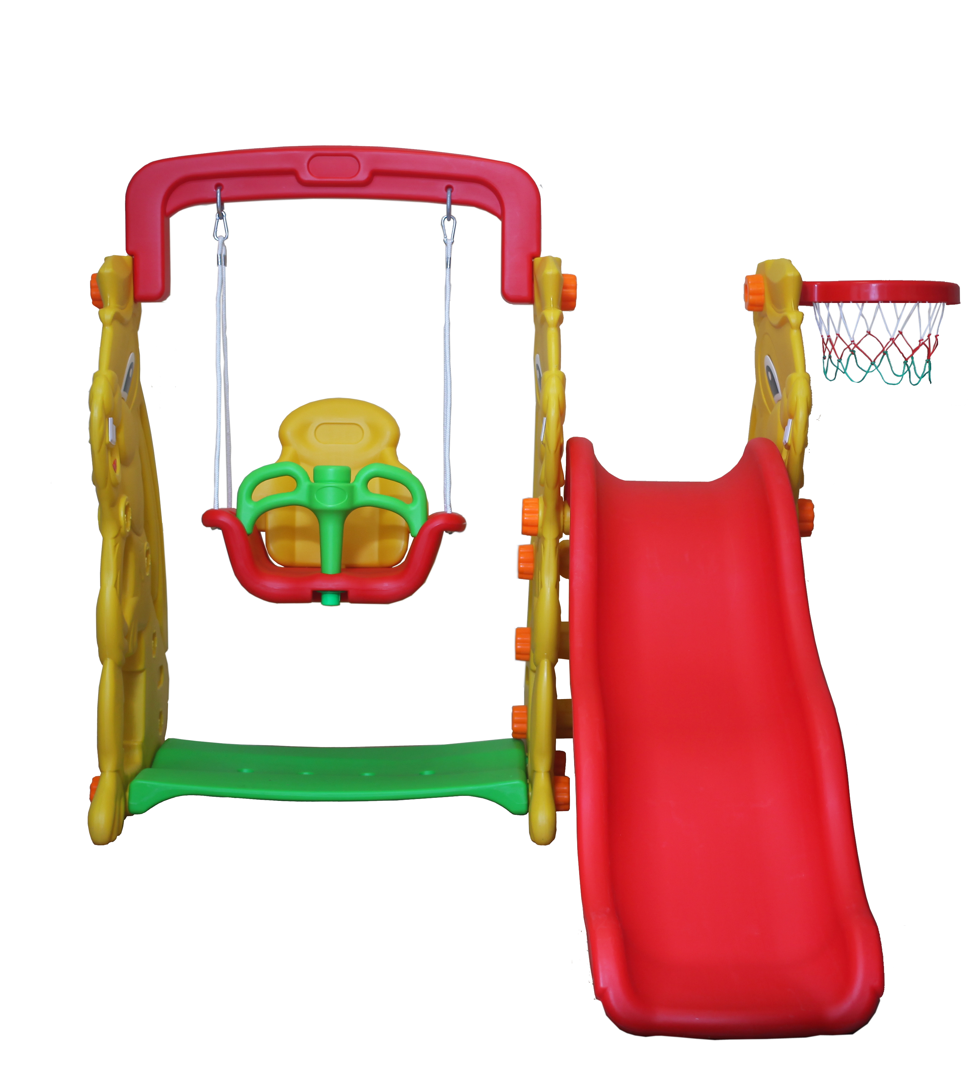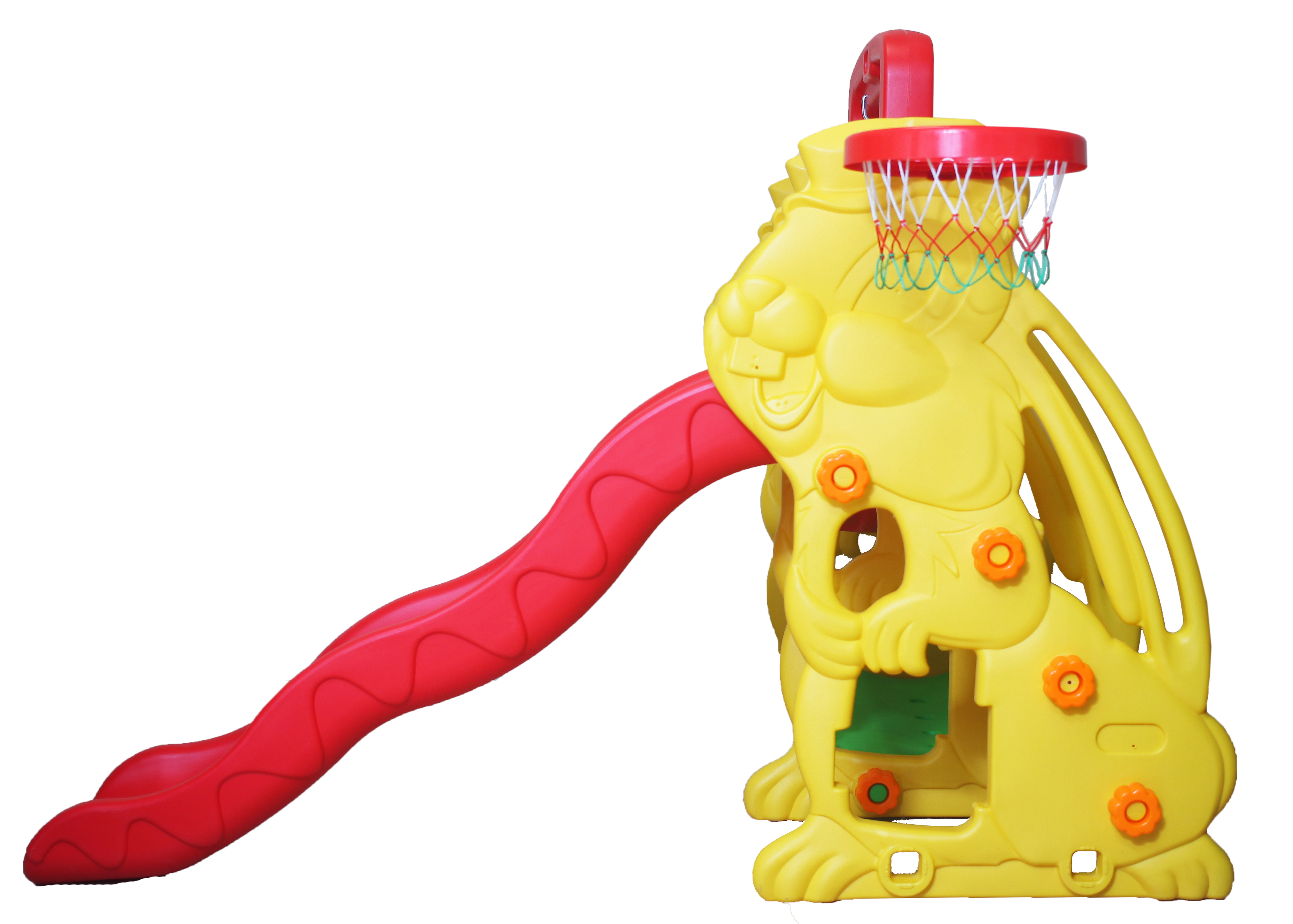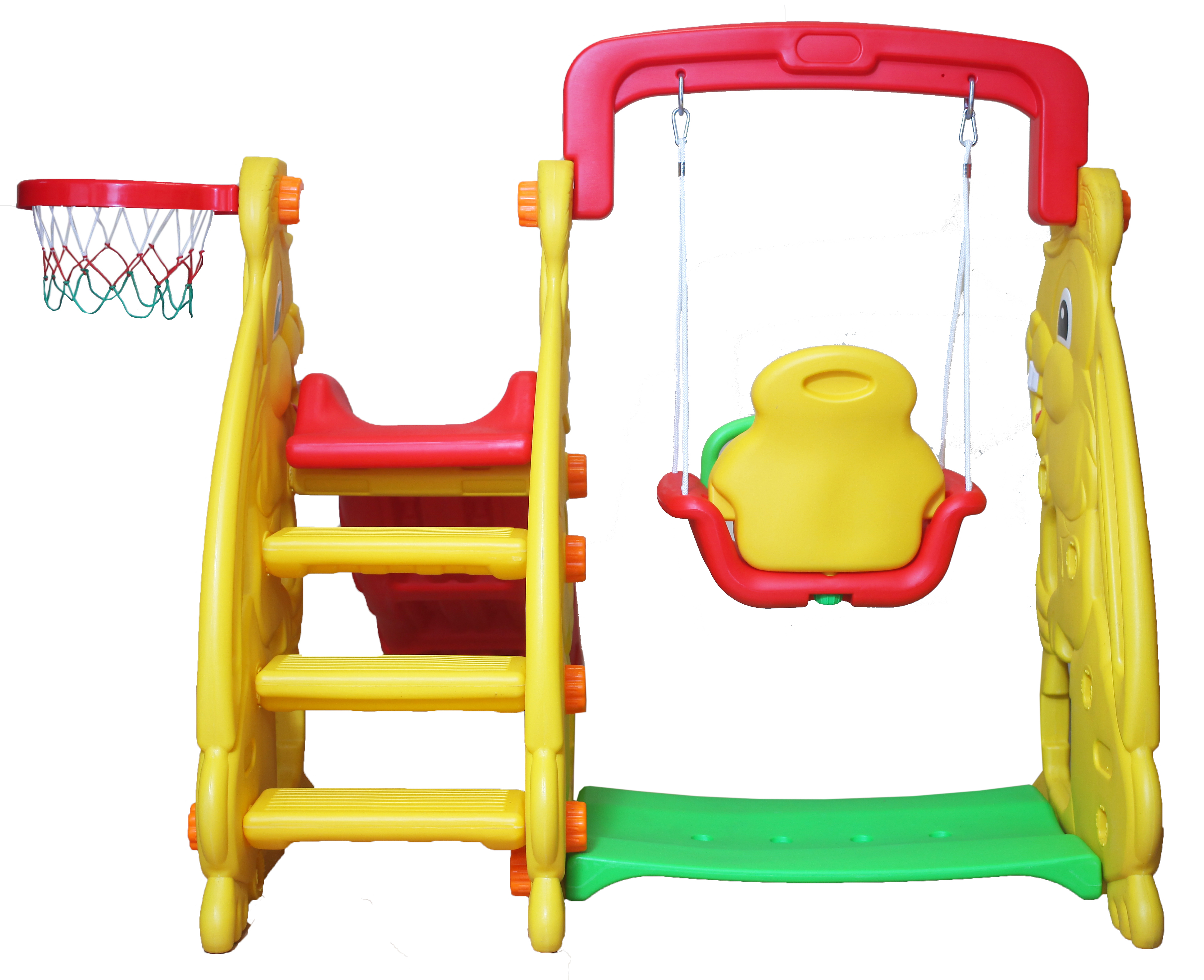 состоит из волнистой горки, качелей, баскетбольной корзины