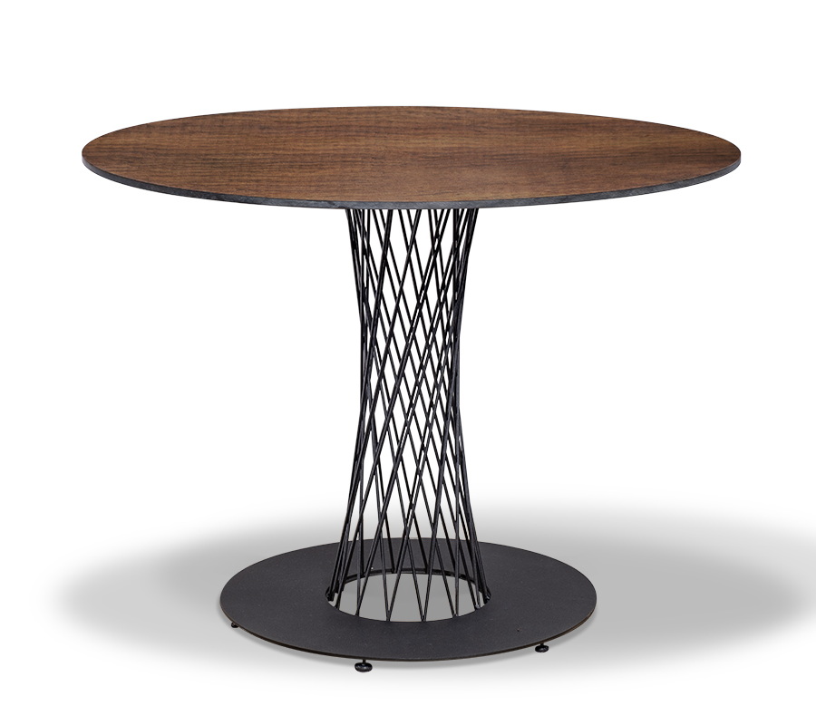 Круглый обеденный стол «Диего» с подстольем, произведенным посредством вертикального плетения из надежных металлических прутьев, выкрашенных в черный цвет.
