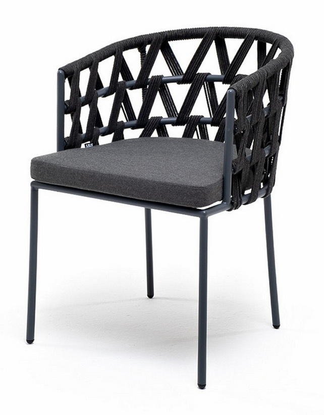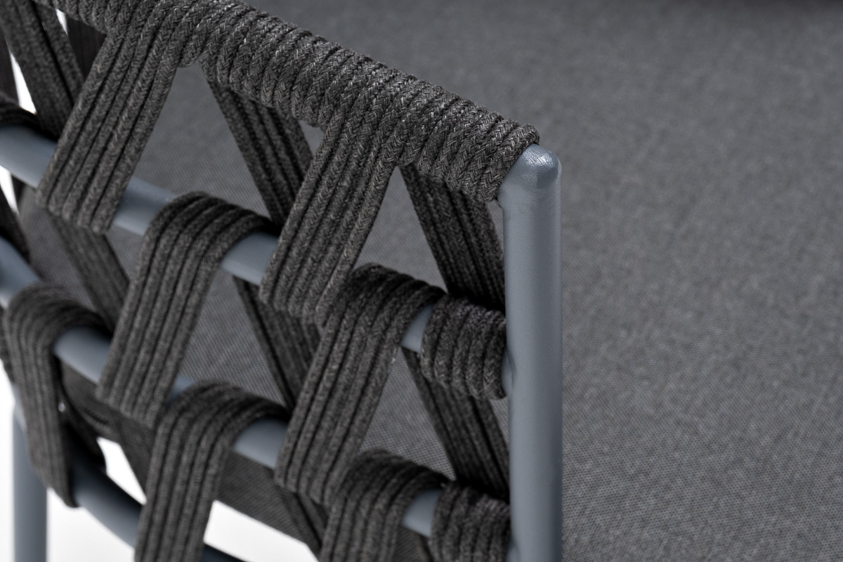 Каркас вручную оплетен темно-серым роупом - эластичными синтетическими лентами из высокопрочных полиэфирных волокон.