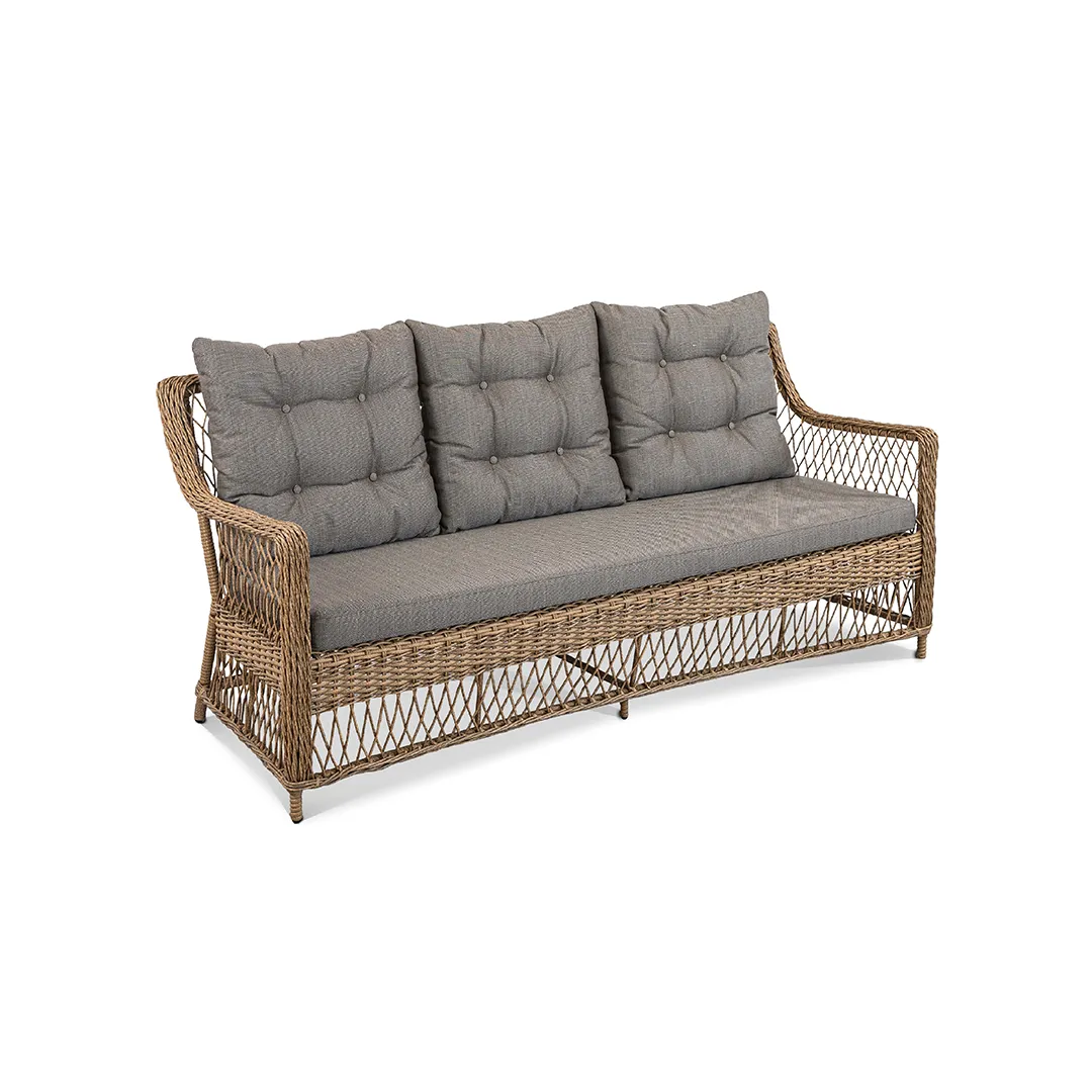 Трёхместный диван ИМПЕРО создаёт атмосферу комфорта и уюта на открытом воздухе. Конструкция сочетает устойчивость алюминиевого каркаса и долговечность плотного ротангового плетения. Мягкие подушки обеспечивают расслабленную посадку, а универсальный дизайн гармонично впишется как в частные, так и коммерческие пространства.