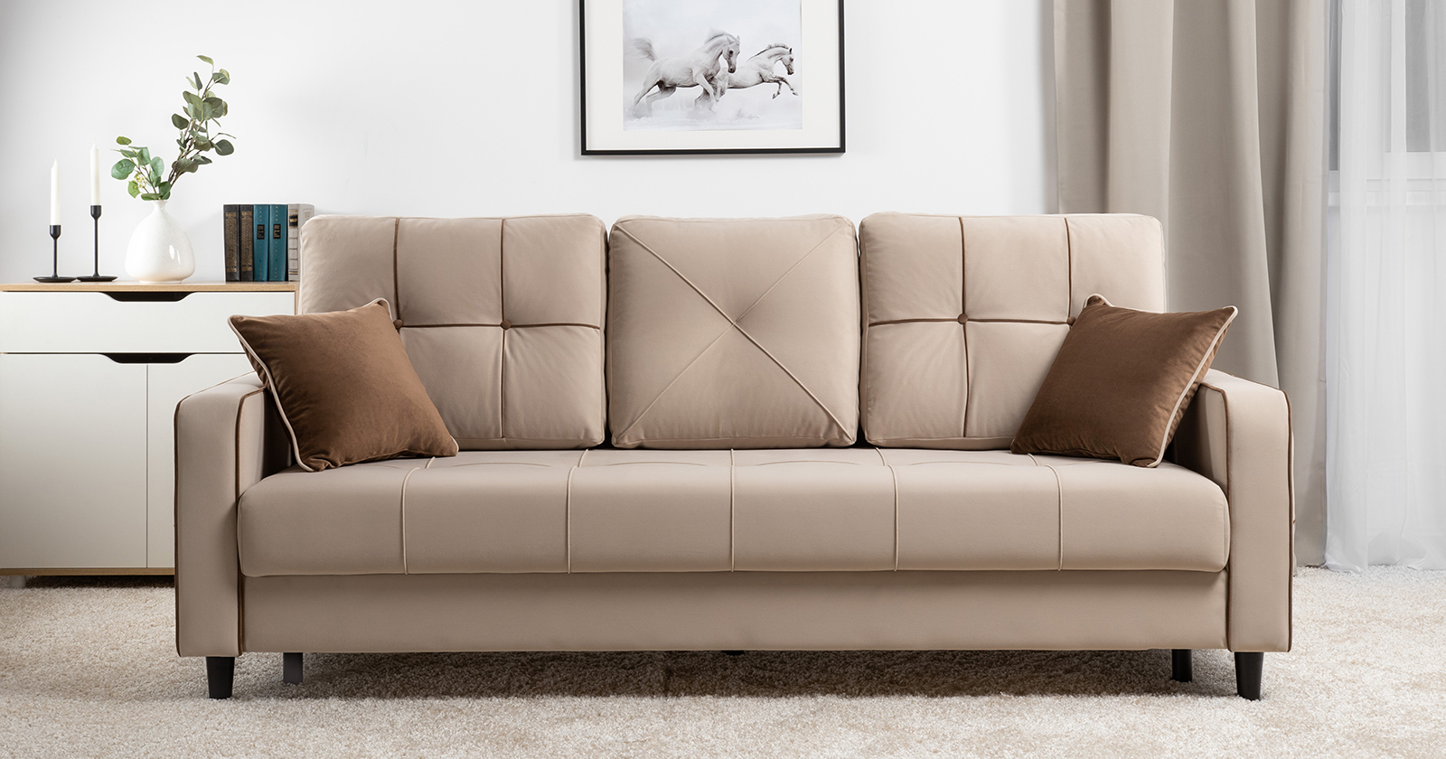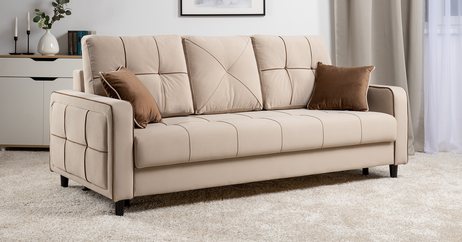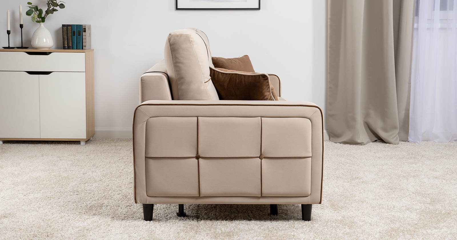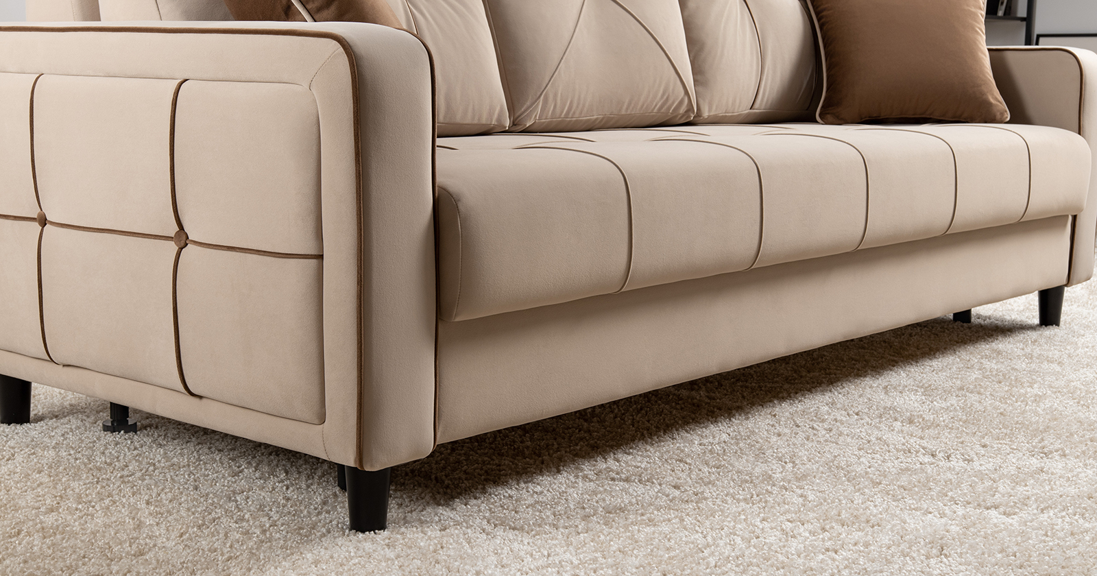 Модные диваны Черри Н станут ярким акцентом в интерьере благодаря контрастным кантам, пуговицам и декоративным подушкам. Они легко сочетаются с различными материалами, такими как кожа, текстиль или дерево, что делает их универсальными для любого стиля.