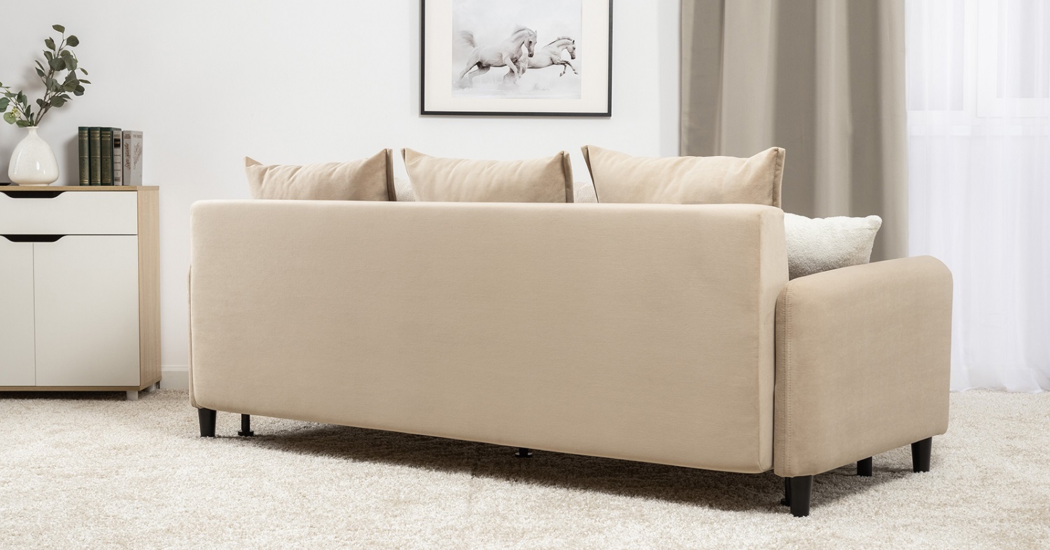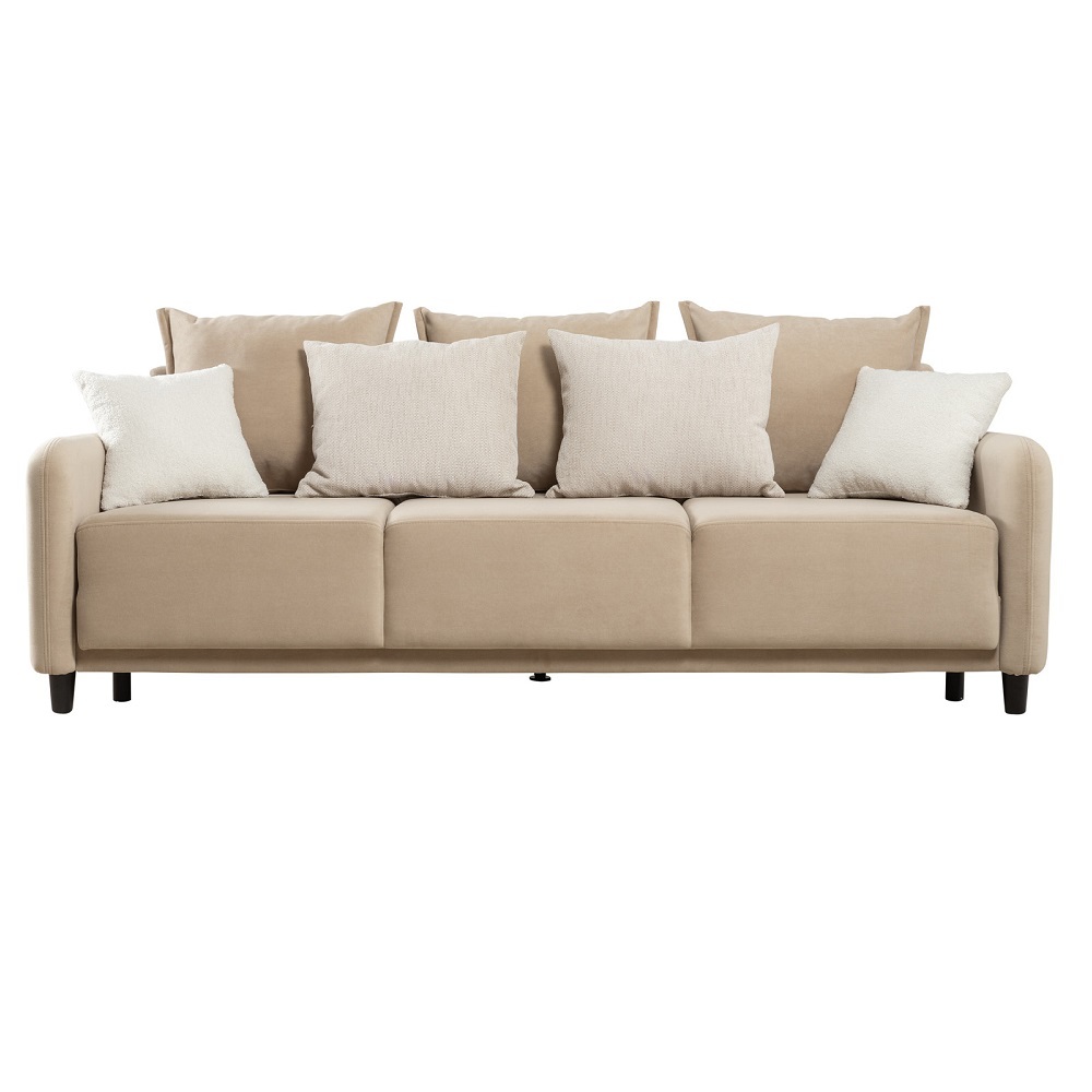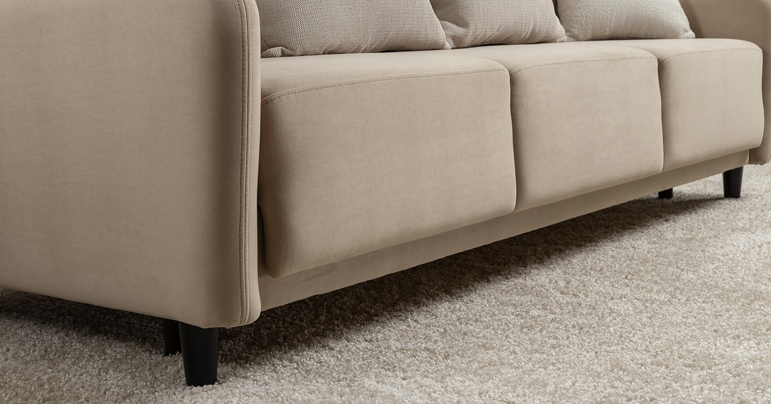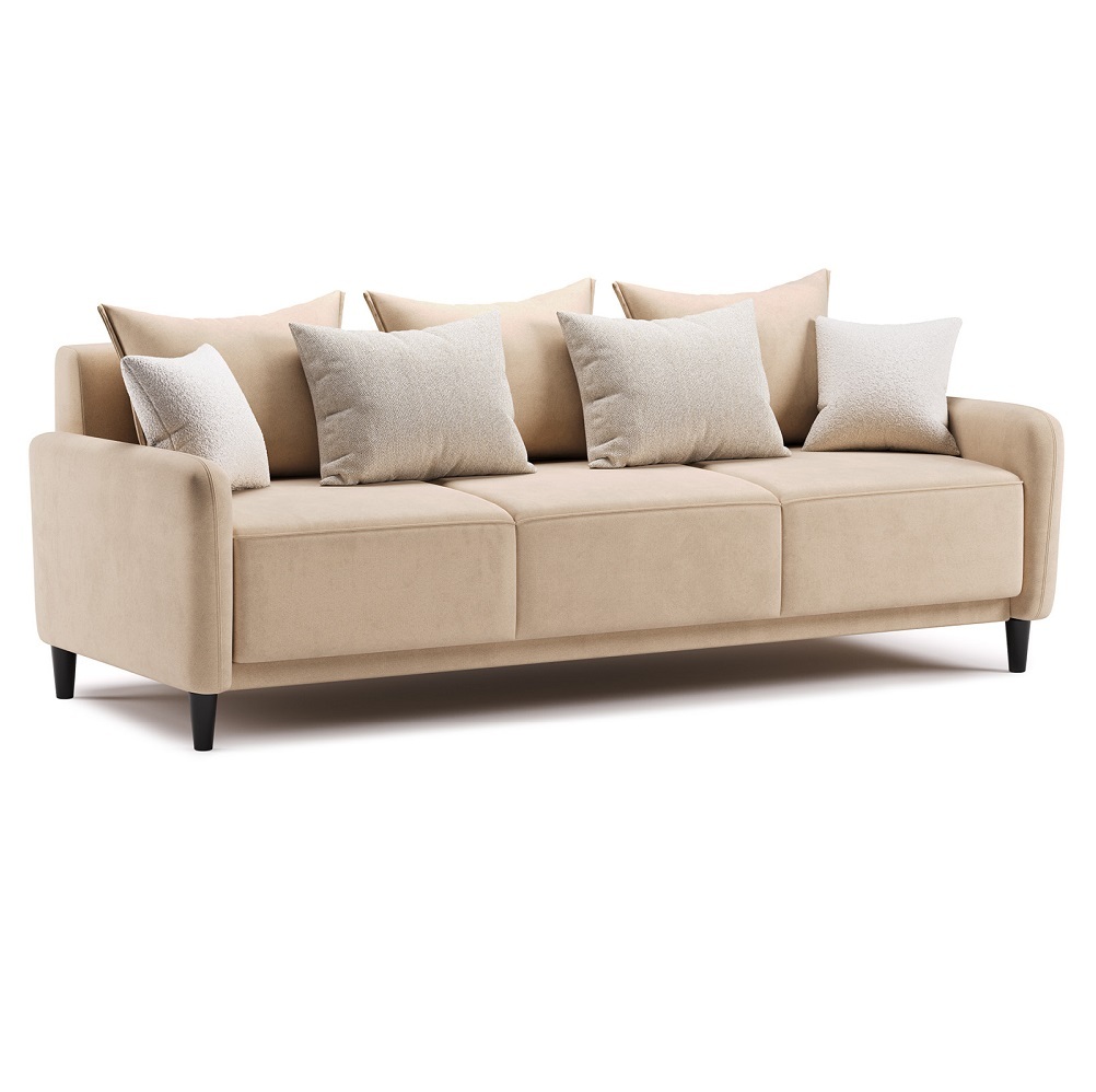 Диван-кровать «Дакота» — это стильное и функциональное решение для вашей гостиной. Опоры из массива дерева придают ему изысканный вид, а объёмные подушки обеспечивают комфорт во время отдыха. В комплекте идут пять двусторонних приспинных подушек и две декоративные подушки-думки из ткани букле. Благодаря надёжному механизму трансформации и ровному спальному месту, вы сможете наслаждаться полноценным сном.