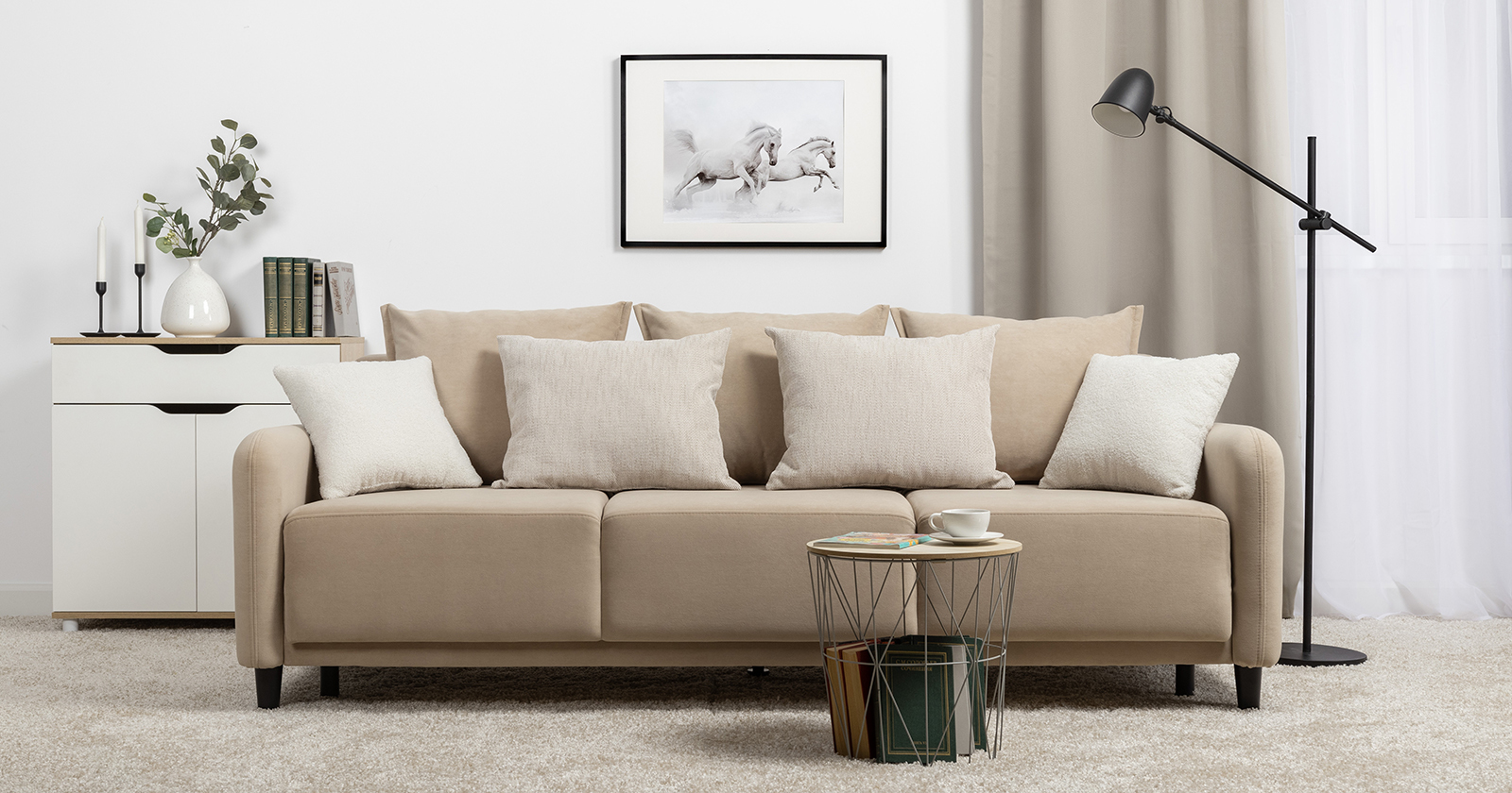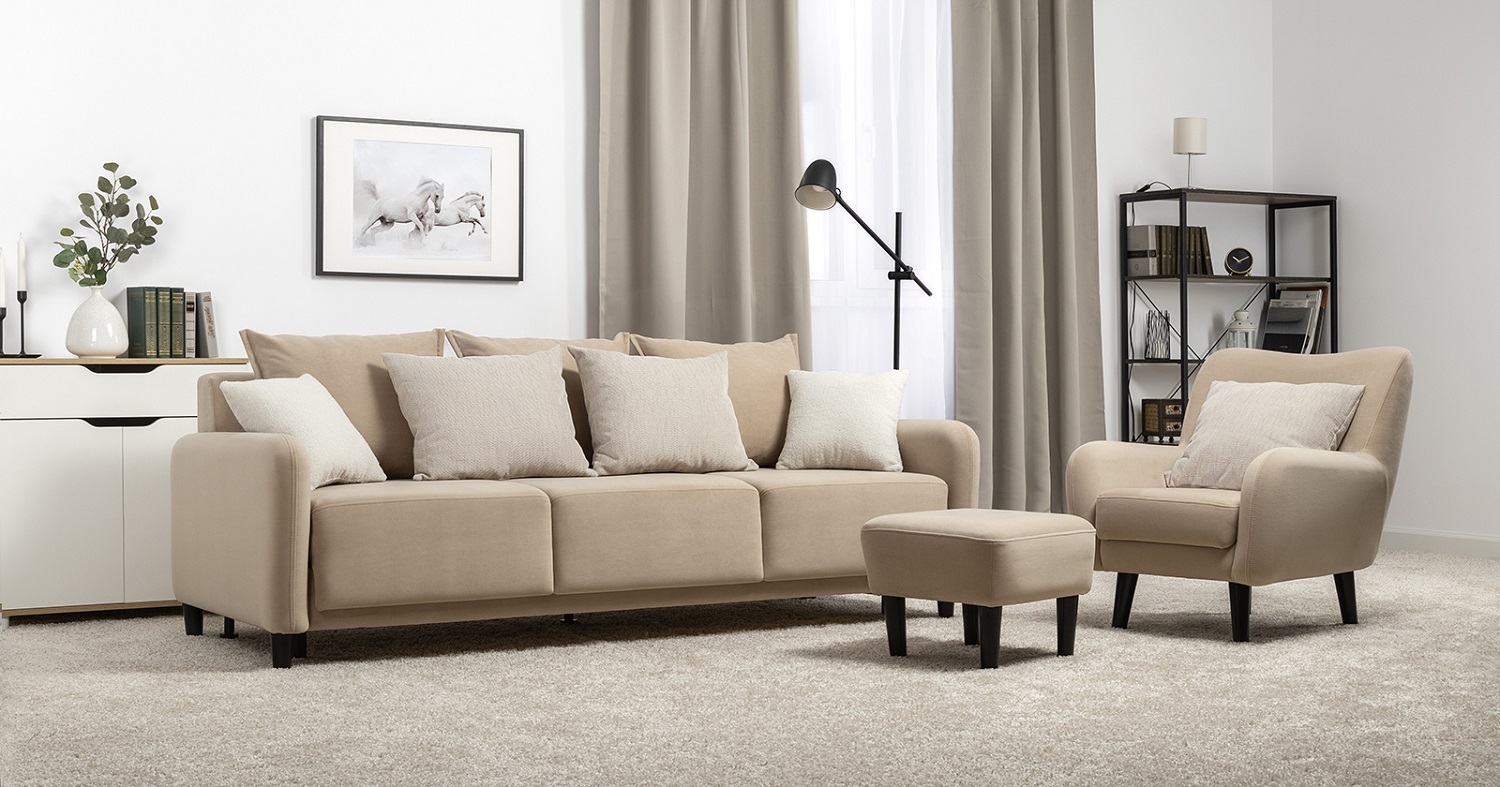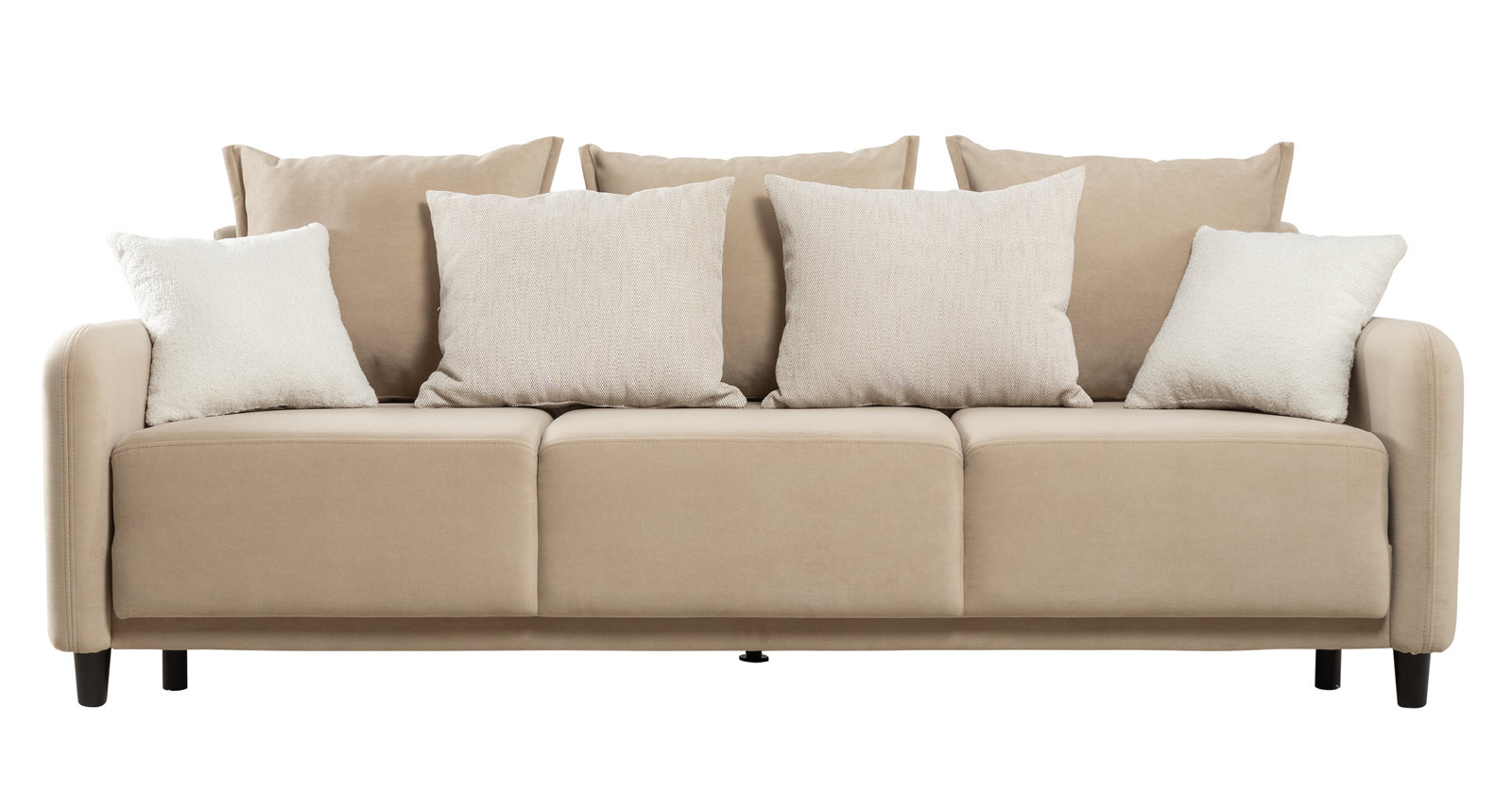 Диван-кровать «Дакота» — это стильное и функциональное решение для вашей гостиной. Опоры из массива дерева придают ему изысканный вид, а объёмные подушки обеспечивают комфорт во время отдыха. В комплекте идут пять двусторонних приспинных подушек и две декоративные подушки-думки из ткани букле. Благодаря надёжному механизму трансформации и ровному спальному месту, вы сможете наслаждаться полноценным сном.
