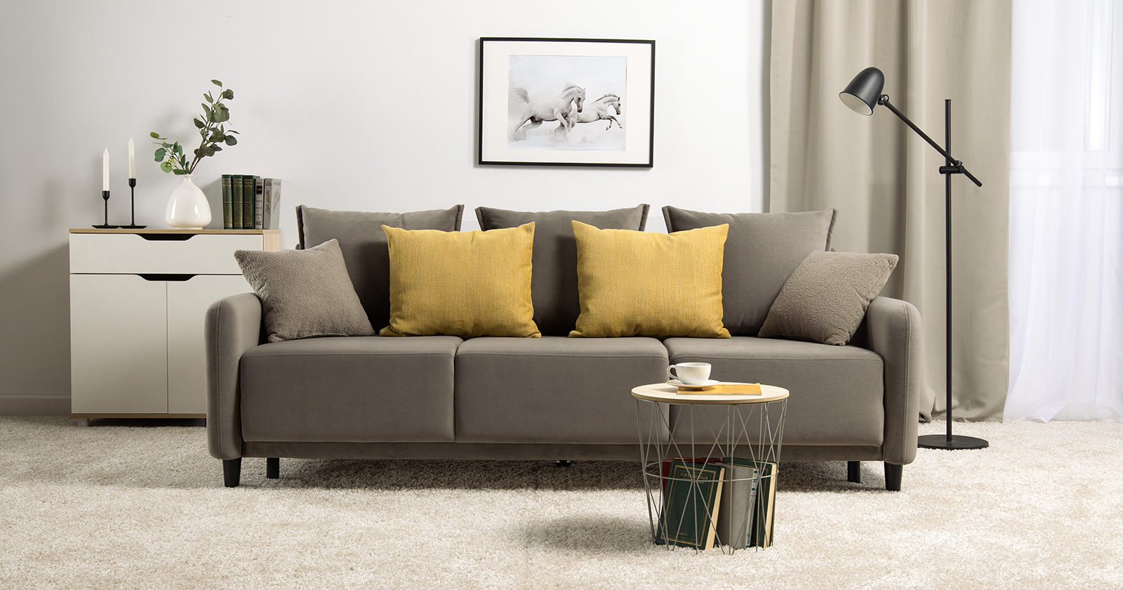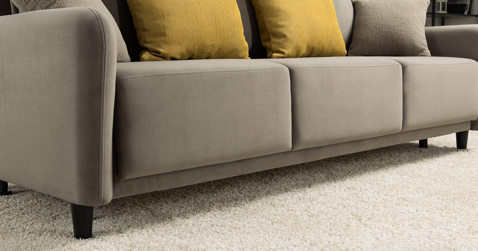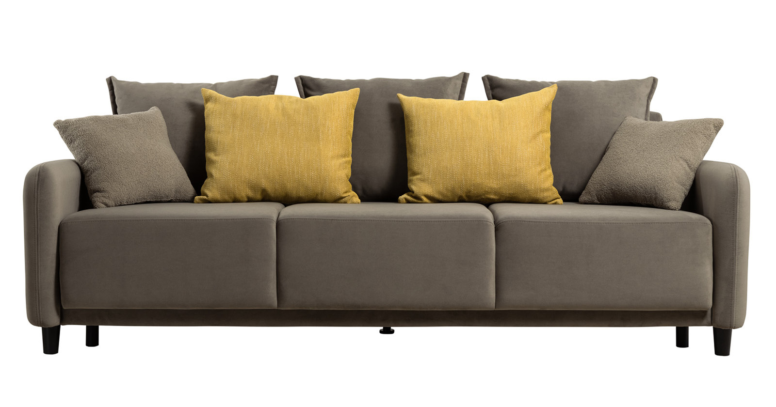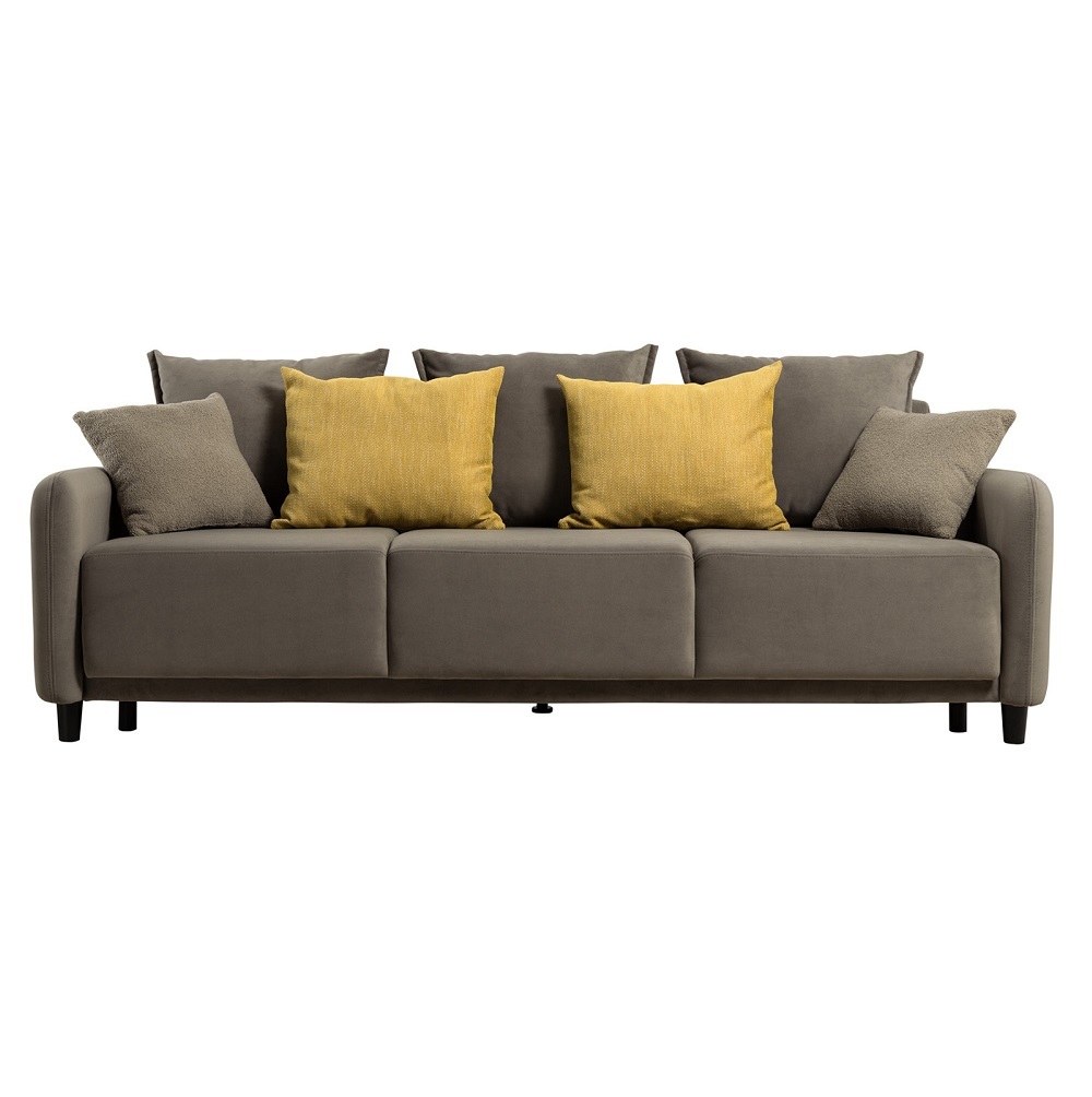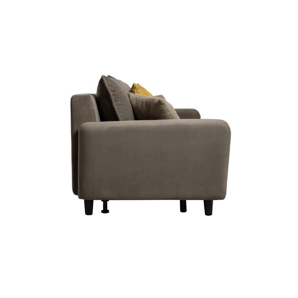 Диван-кровать «Дакота» — это стильное и функциональное решение для вашей гостиной. Опоры из массива дерева придают ему изысканный вид, а объёмные подушки обеспечивают комфорт во время отдыха. В комплекте идут пять двусторонних приспинных подушек и две декоративные подушки-думки из ткани букле. Благодаря надёжному механизму трансформации и ровному спальному месту, вы сможете наслаждаться полноценным сном.