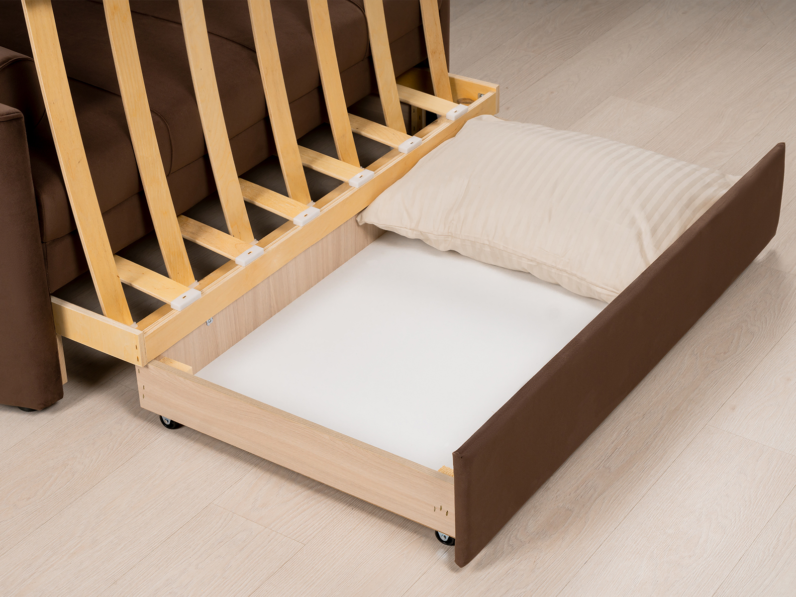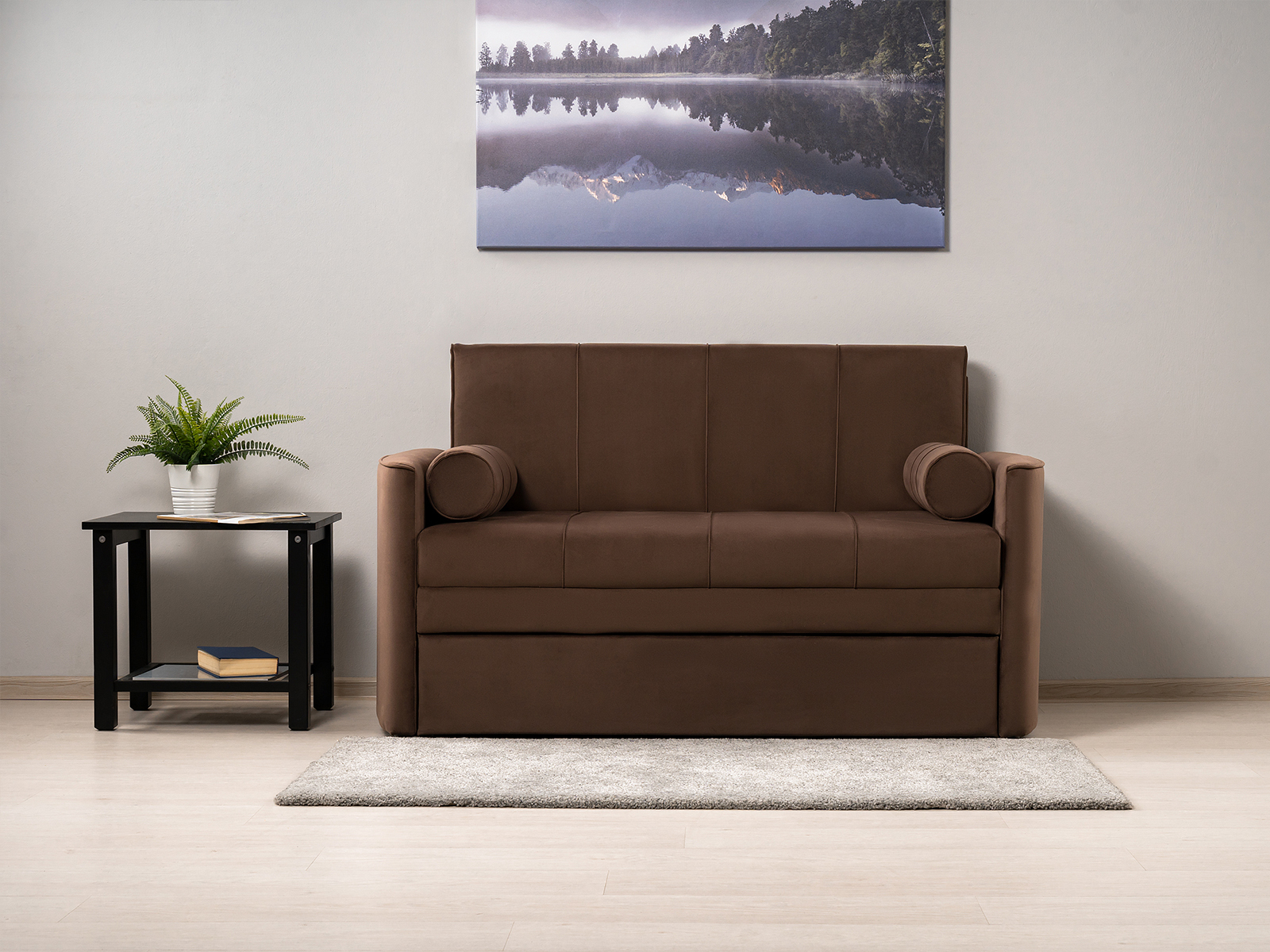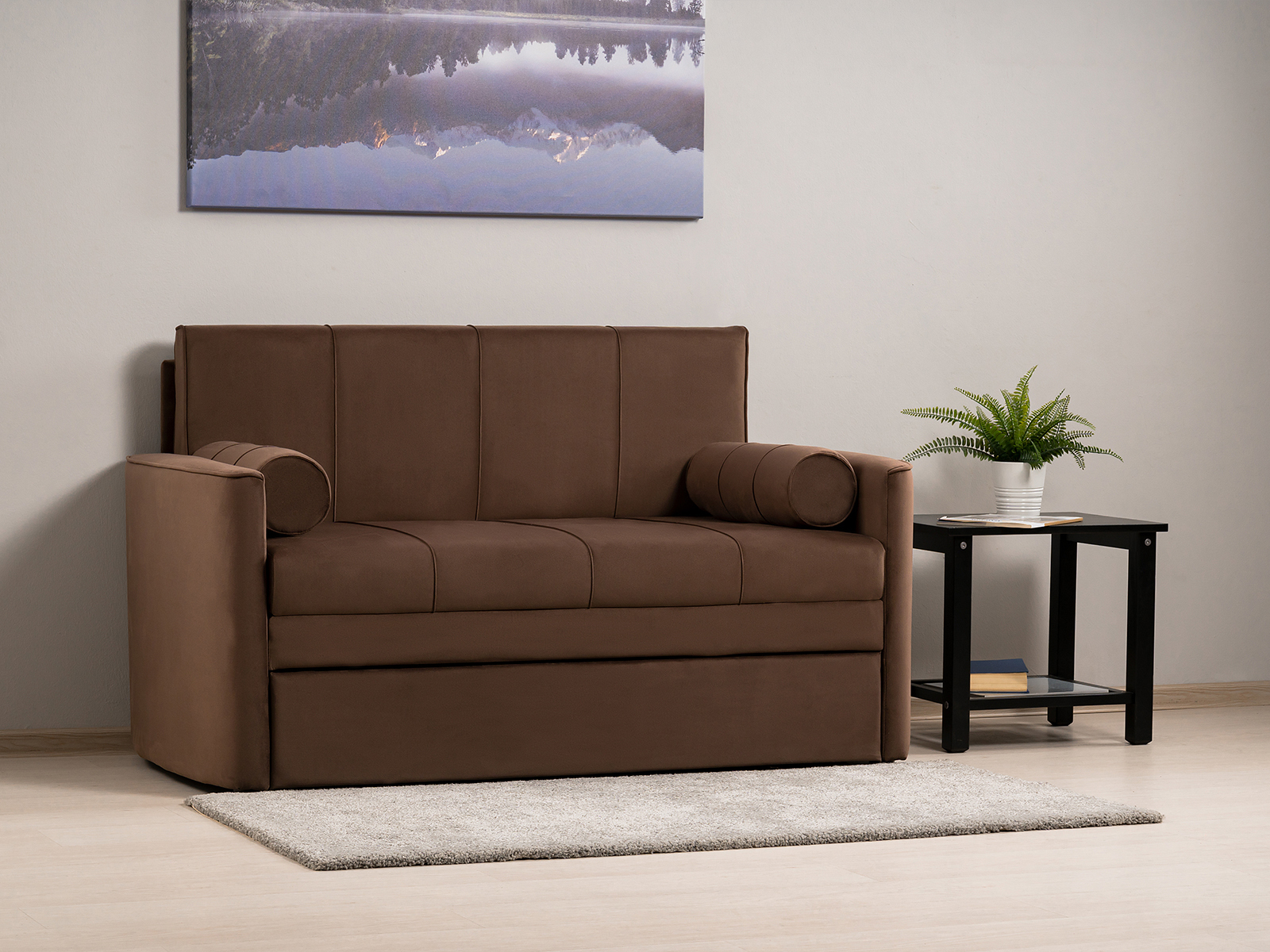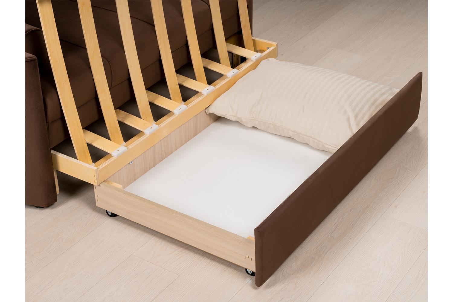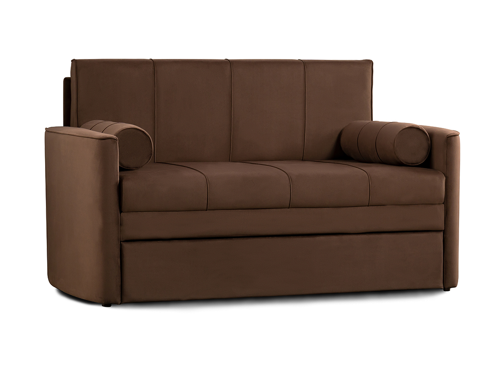 Диван-кровать Мелани Р (120) — это компактный современный диванчик со скруглёнными подлокотниками и кантами, подчёркивающими его эргономичность. Простой и надёжный механизм трансформации обеспечивает удобное спальное место для ребёнка или подростка. Также диван можно использовать как гостевое спальное место для взрослых. Размер спального места составляет 195 x 120 см, имеется небольшой бельевой ящик. Диван выполнен в мягком фактурном велюре с «пальчиковым эффектом» средней интенсивности. Опоры чёрного цвета, круглые, высотой 25 мм, изготовлены из высококачественного пластика. Прочность конструкции обеспечивается рёбрами жёсткости и внутренним креплением фурнитуры.