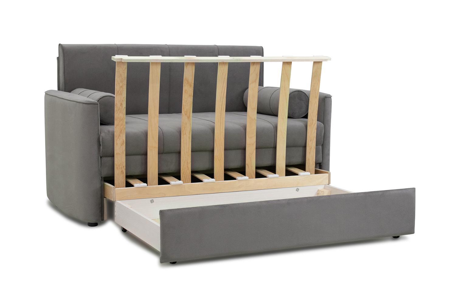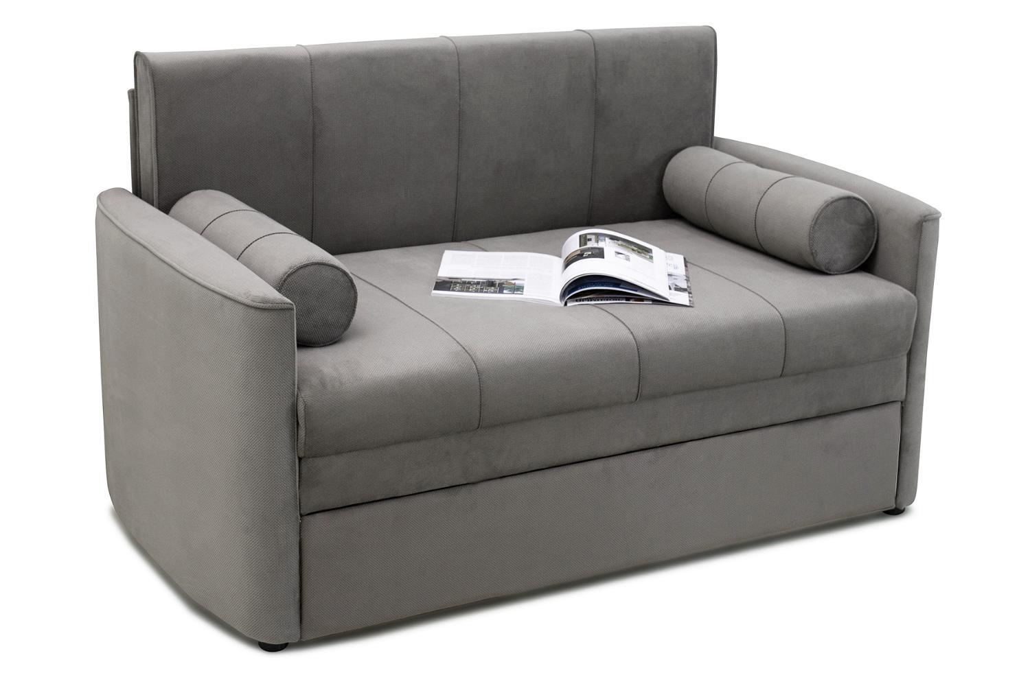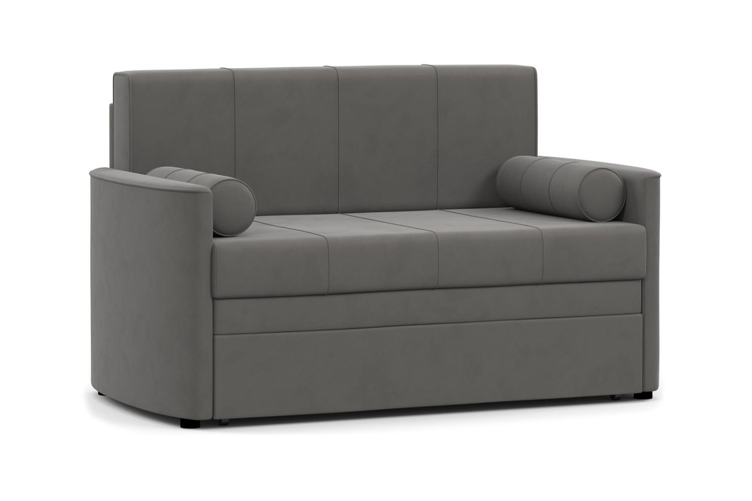 Диван-кровать Мелани Р (120) — это компактный современный диванчик со скруглёнными подлокотниками и кантами, подчёркивающими его эргономичность. Простой и надёжный механизм трансформации обеспечивает удобное спальное место для ребёнка или подростка. Также диван можно использовать как гостевое спальное место для взрослых. Размер спального места составляет 195 x 120 см, имеется небольшой бельевой ящик. Диван выполнен в мягком фактурном велюре с «пальчиковым эффектом» средней интенсивности. Опоры чёрного цвета, круглые, высотой 25 мм, изготовлены из высококачественного пластика. Прочность конструкции обеспечивается рёбрами жёсткости и внутренним креплением фурнитуры.