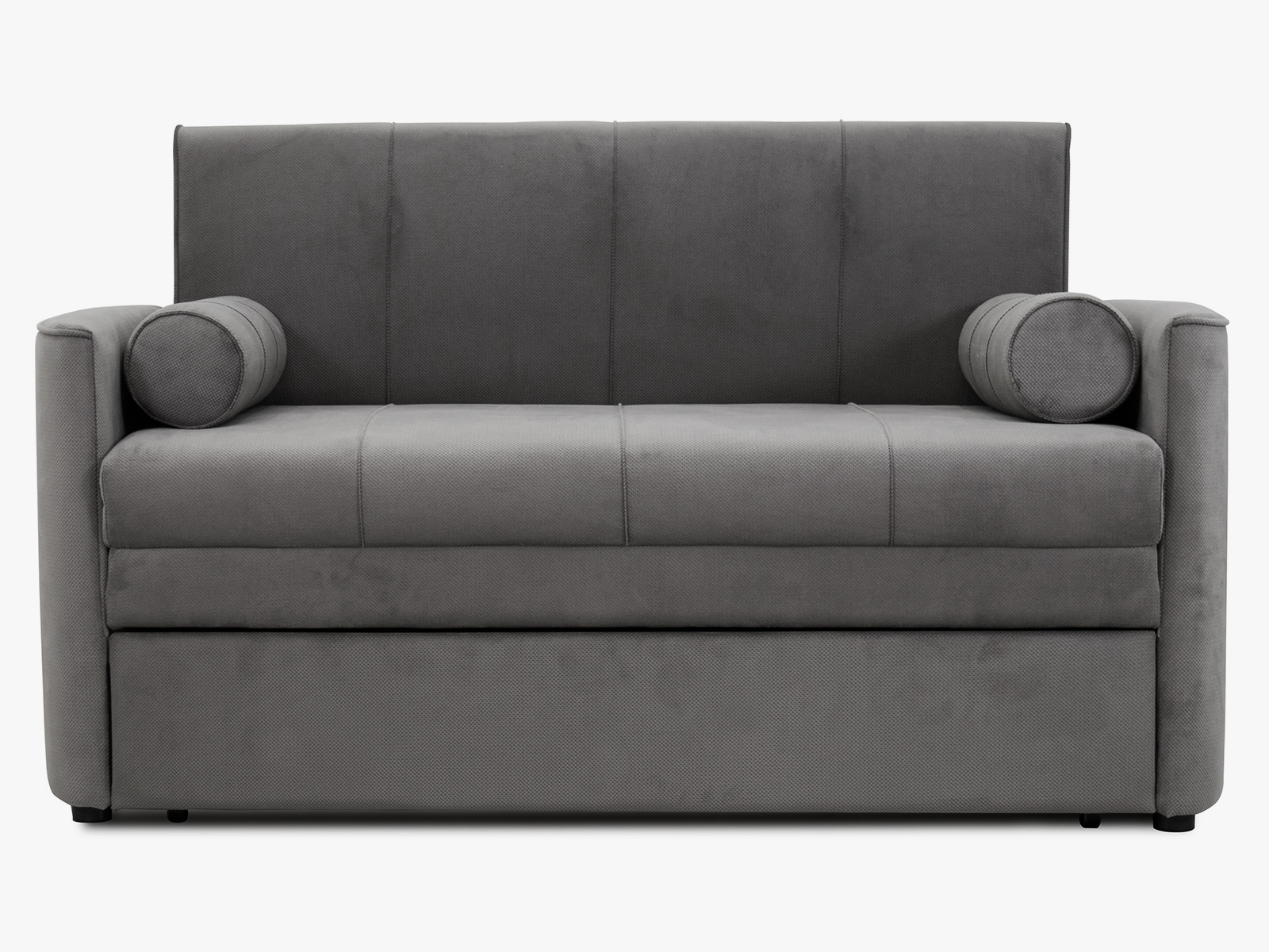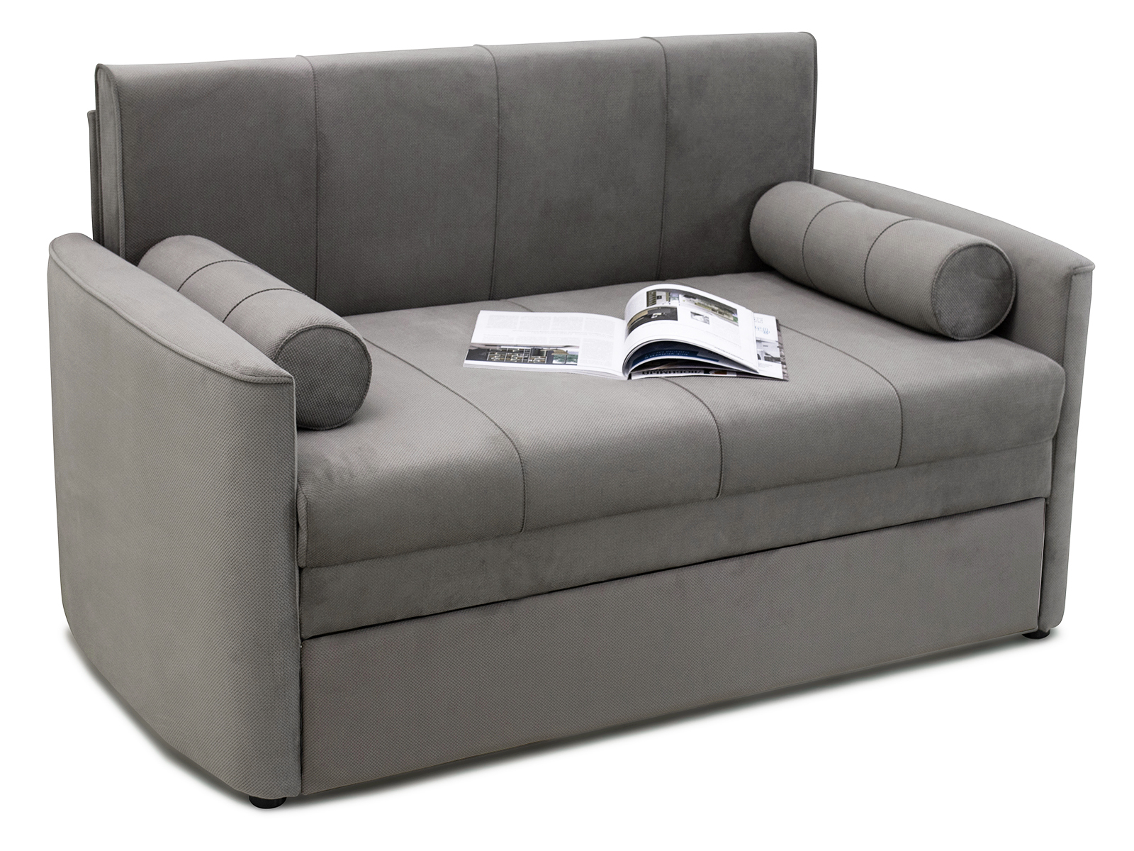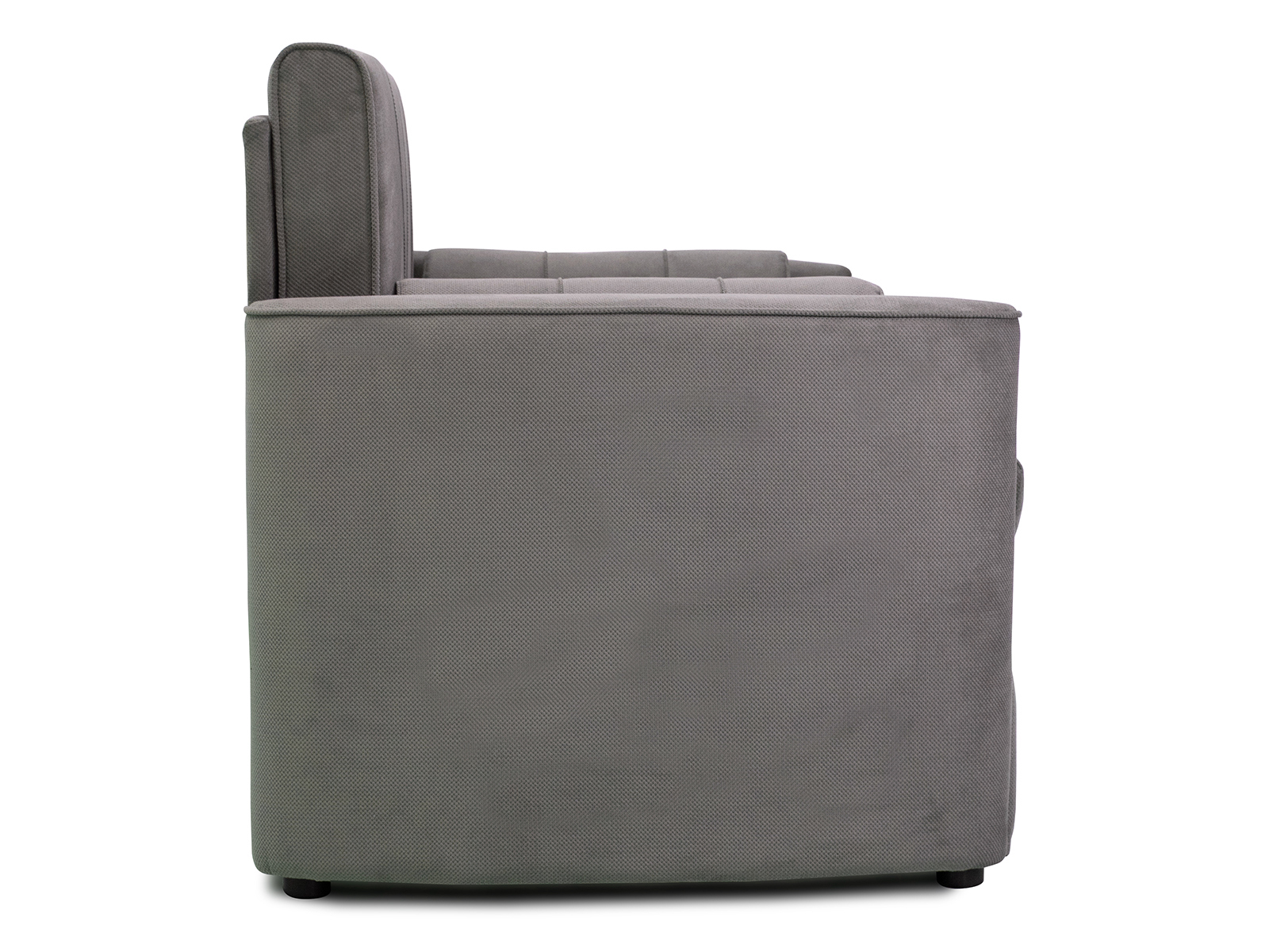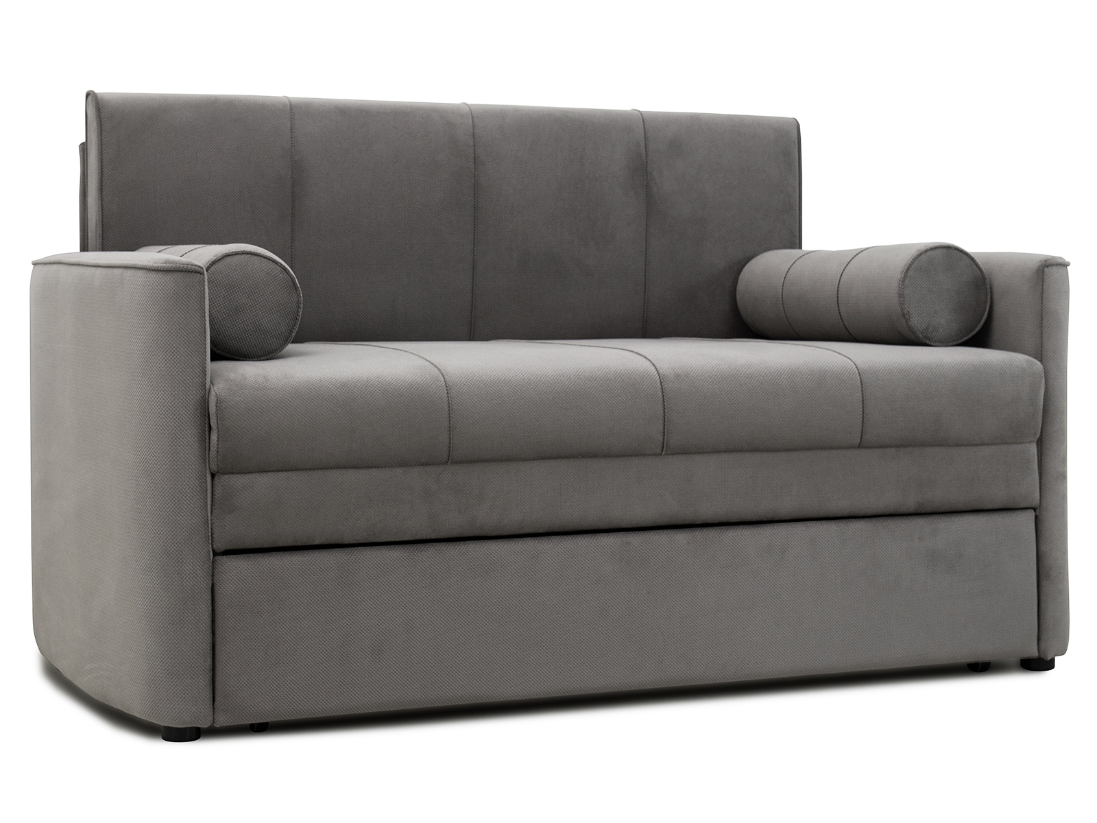 Диван-кровать Мелани Р (120) — это компактный современный диванчик со скруглёнными подлокотниками и кантами, подчёркивающими его эргономичность. Простой и надёжный механизм трансформации обеспечивает удобное спальное место для ребёнка или подростка. Также диван можно использовать как гостевое спальное место для взрослых. Размер спального места составляет 195 x 120 см, имеется небольшой бельевой ящик. Диван выполнен в мягком фактурном велюре с «пальчиковым эффектом» средней интенсивности. Опоры чёрного цвета, круглые, высотой 25 мм, изготовлены из высококачественного пластика. Прочность конструкции обеспечивается рёбрами жёсткости и внутренним креплением фурнитуры.