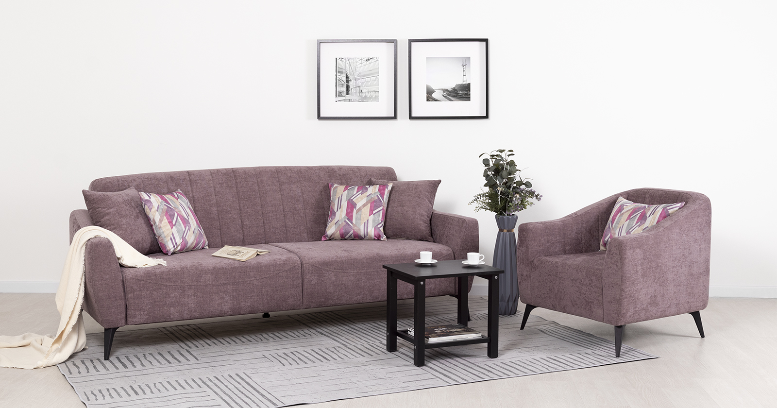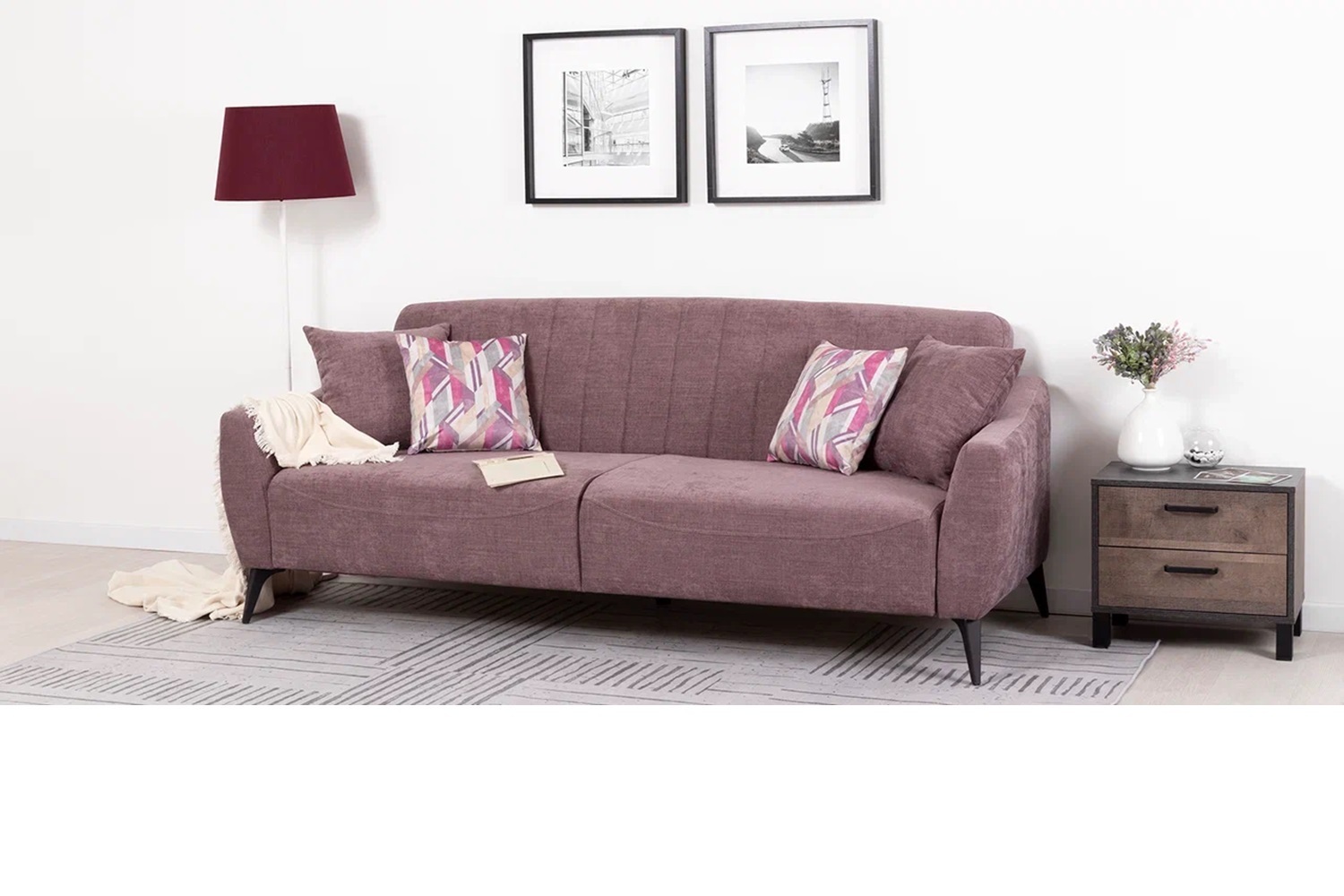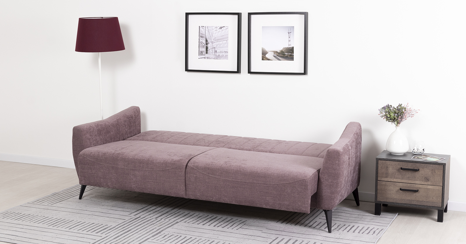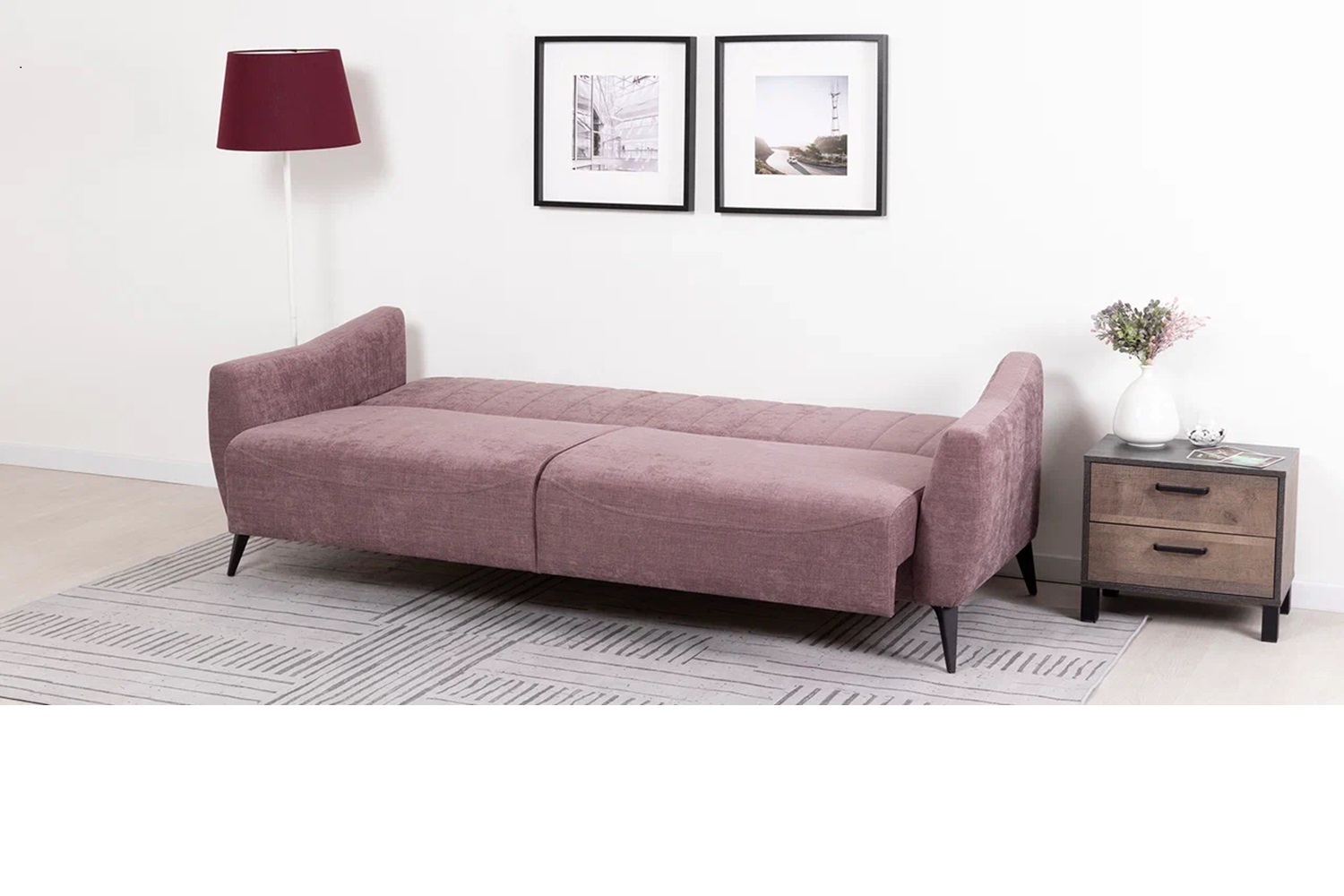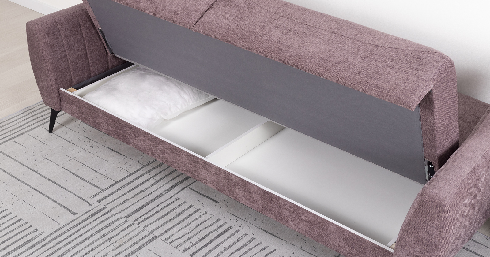 Посадочная и спальная зоны при раскладывании равны, что обеспечивает хороший сон. Механизм трансформации - книжка. Раскладной диван представляет больше возможностей для обустройства интерьера. Черные металлические ножки дивана высотой 160 мм позволят использовать его в интерьере лофт.