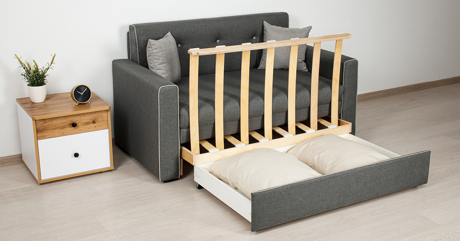 Диван-кровать Найс — это компактное и современное решение для гостиных, квартир-студий, детских и подростковых комнат. Он может служить постоянным спальным местом для детей и подростков или гостевым спальным местом для взрослых.