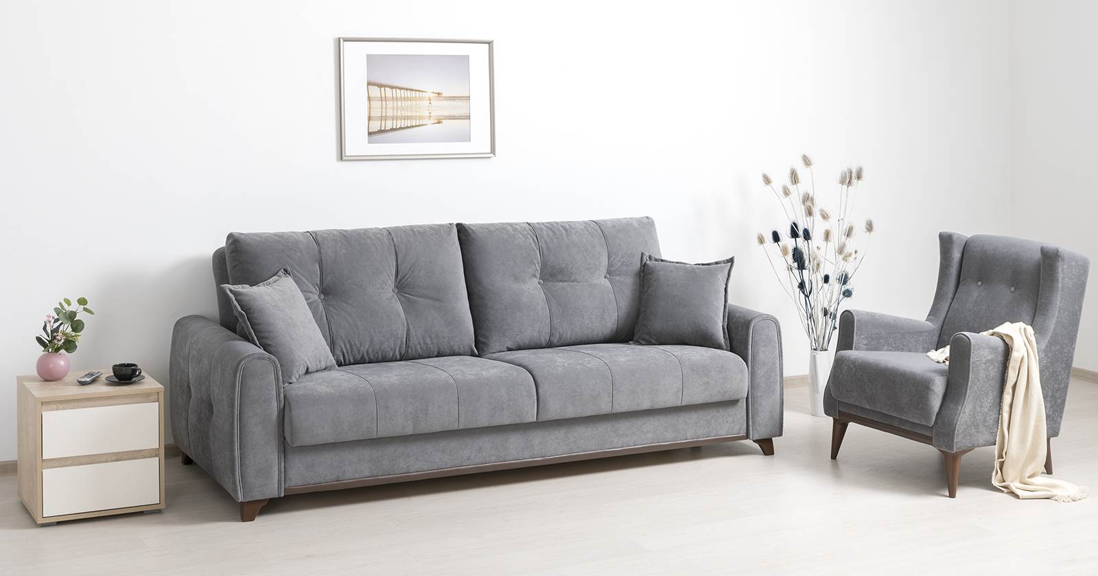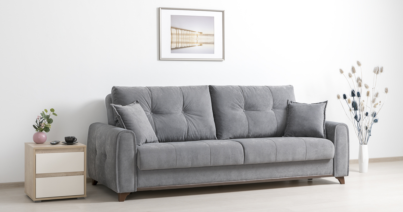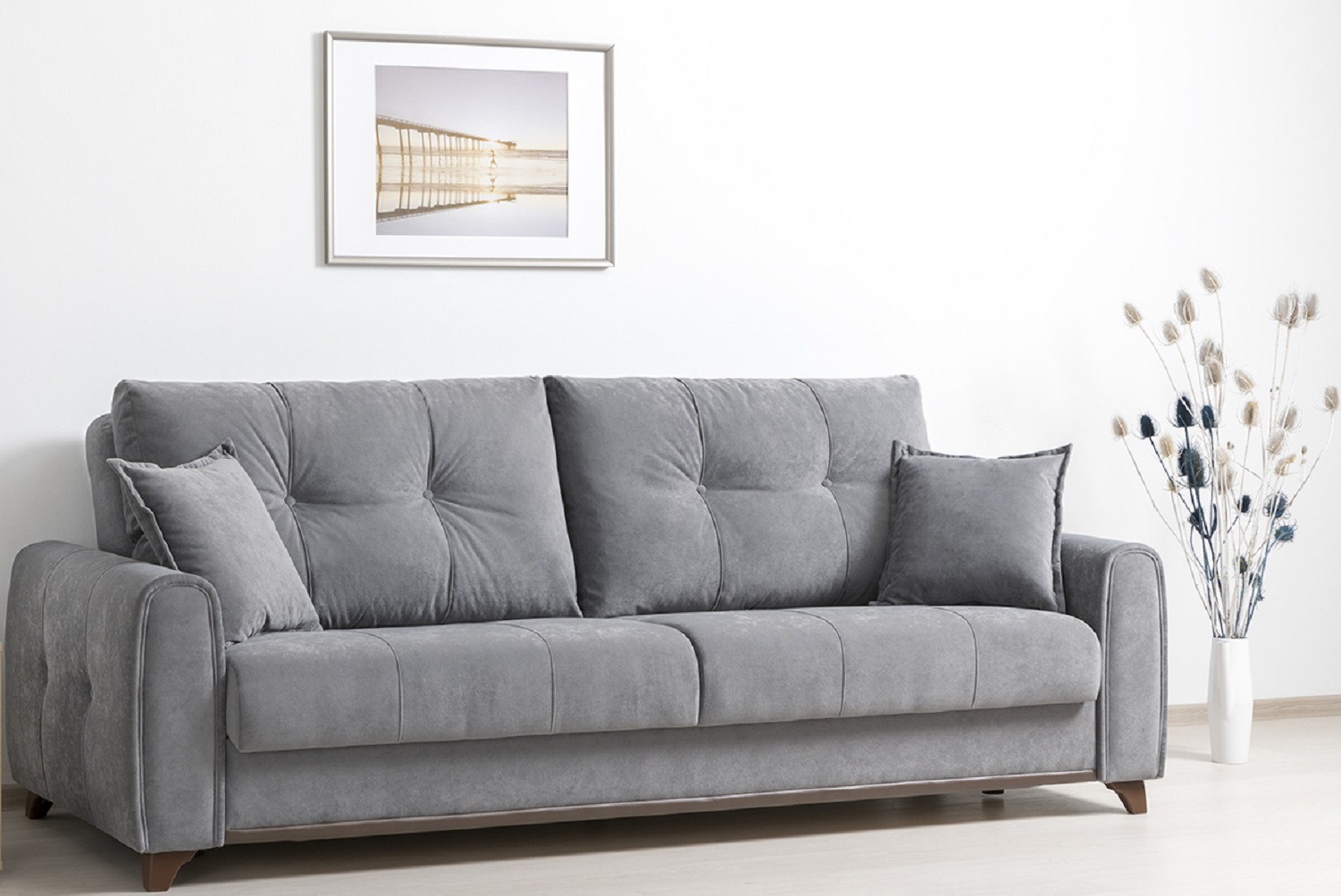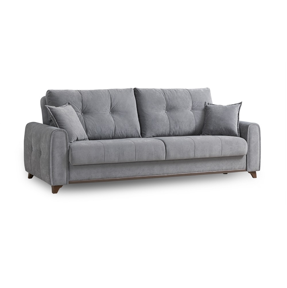 Плимут — это современный диван с комфортной посадкой, который может быть дополнен креслом Плимут. Он удачно впишется в любой современный интерьер благодаря своему универсальному дизайну и трендовым цветам обивки. При раскладывании этот диван не требует отодвигания от стены, обеспечивая полноценное ровное спальное место для двух человек.