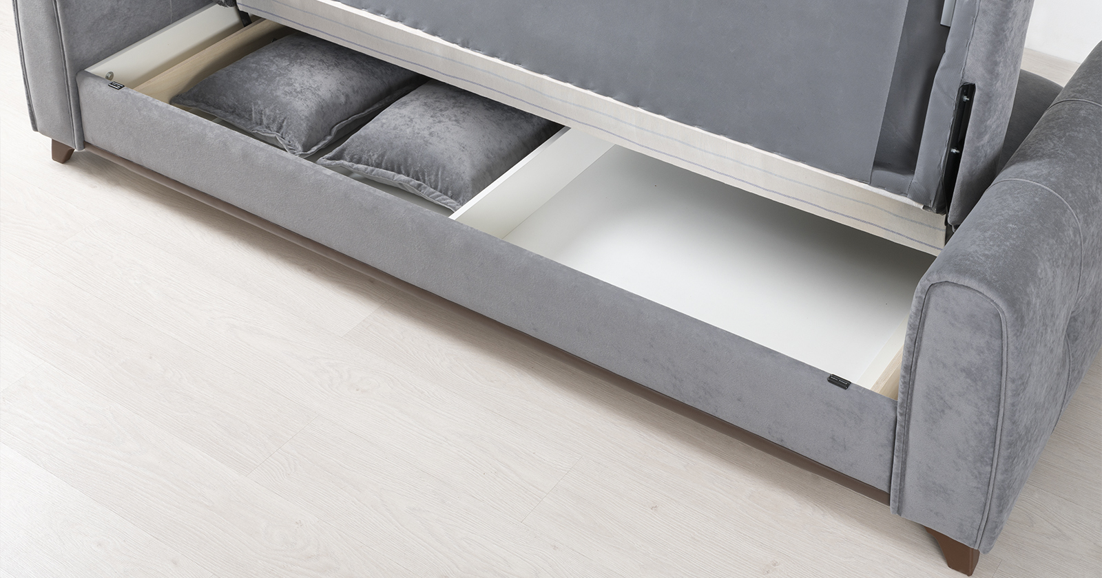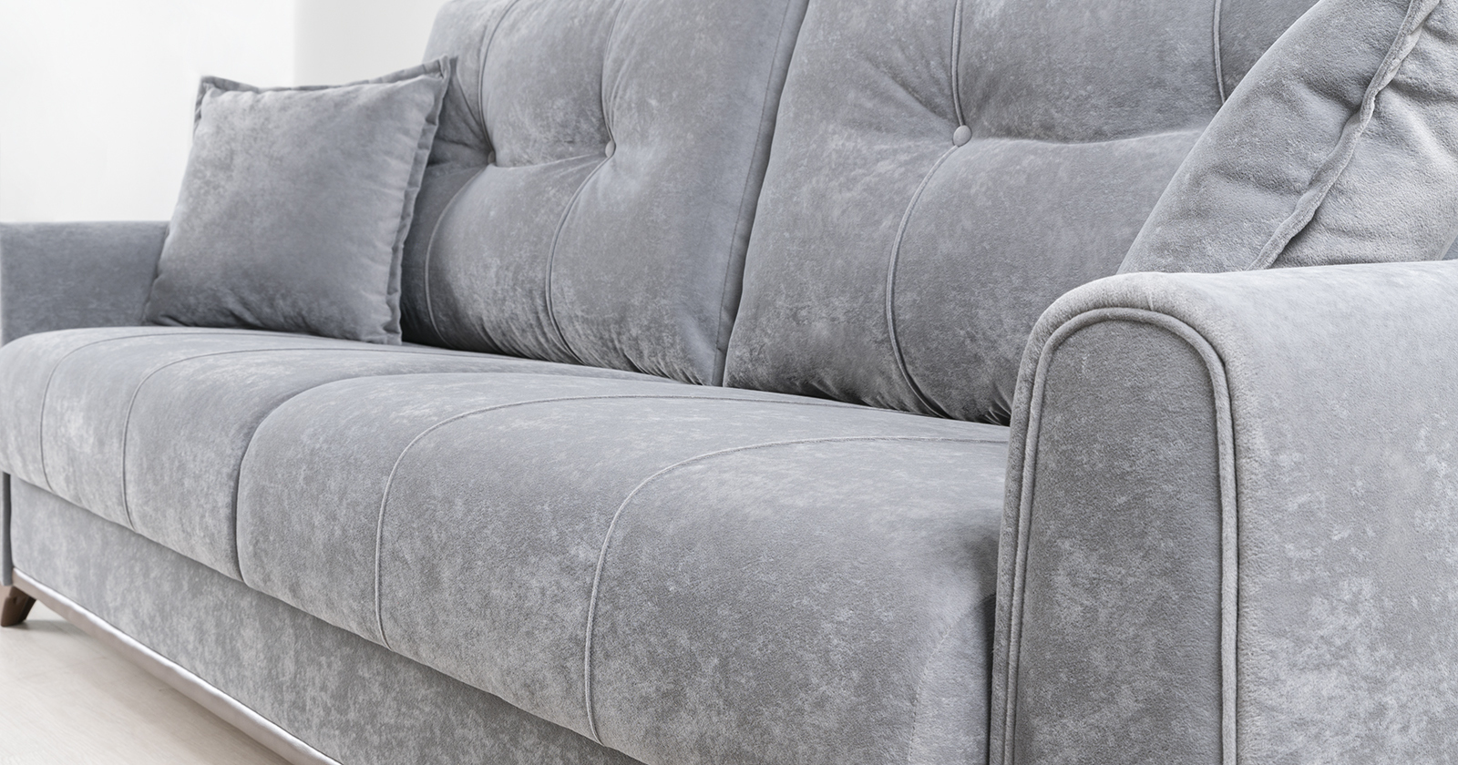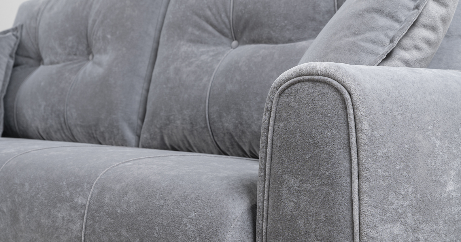 Плимут выполнен в модном мягком велюре Romance оригинальной фактуры. Эта ткань легко чистится, устойчива к зацепам и обладает повышенной износостойкостью. Благодаря особой технологии гладкого крашения Frozen Flower на поверхности ткани присутствует лёгкий краш-эффект, подчёркивающий невероятно мягкую фактуру ткани.