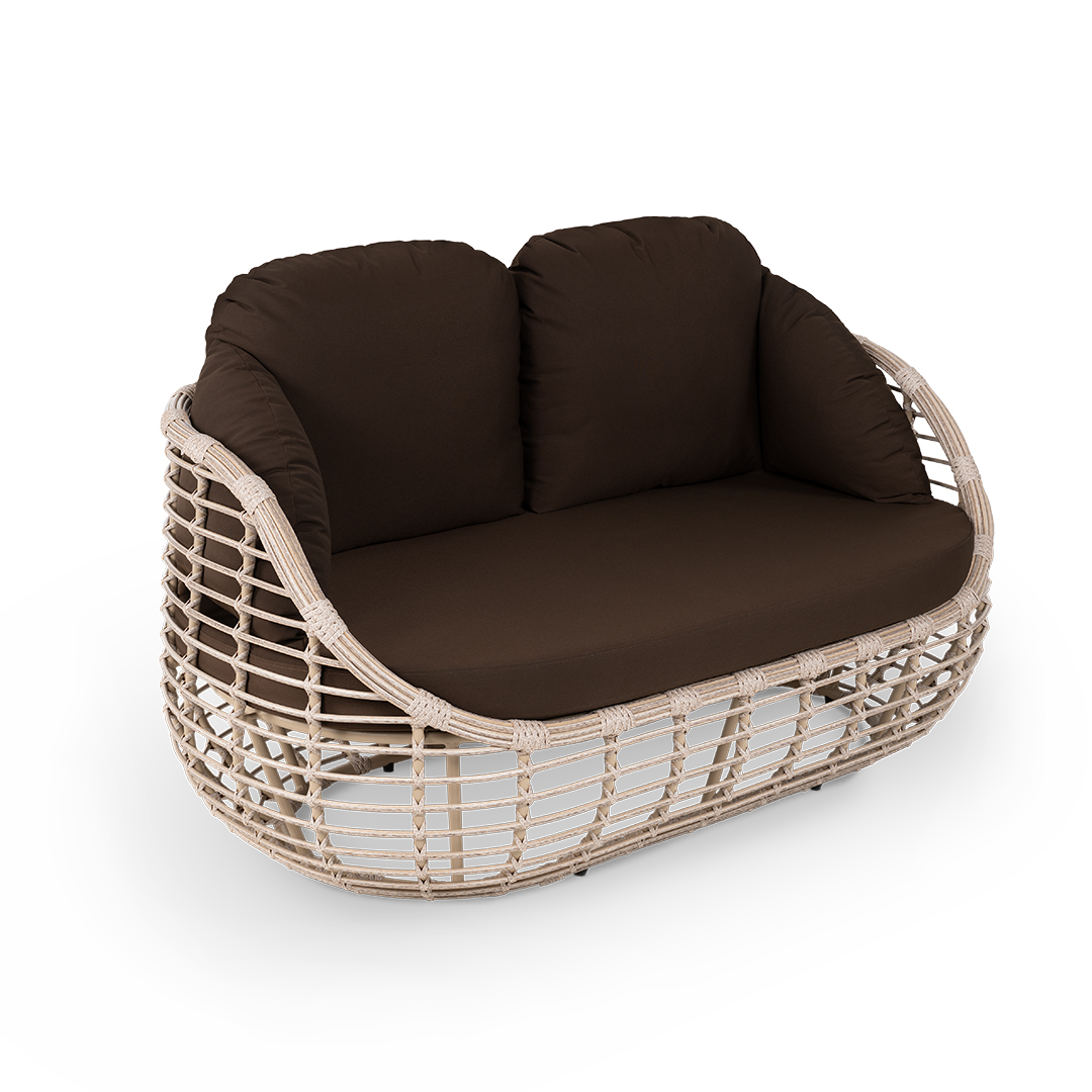 Диван ЛОТУС объединяет эстетику формы и функциональность. Обтекаемый силуэт с плавными линиями создаёт ощущение уюта и приватности. Прочное бесшовное плетение и скрытый алюминиевый каркас подчеркивают высокий уровень исполнения. Модель станет центром композиции в лаунж-зоне, патио или на террасе премиального заведения.