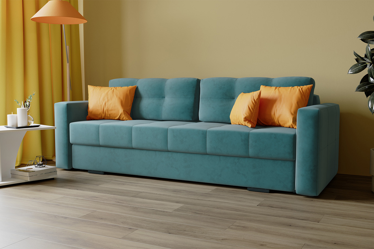 Диван Брэй – это идеальное сочетание комфорта и стиля. Обивка из мягкого и приятного на ощупь велюра придаёт ему элегантный вид, а также обеспечивает тепло и уют в любое время года. Диван легко трансформируется в просторное спальное место, что делает его отличным вариантом для гостиных или студий.