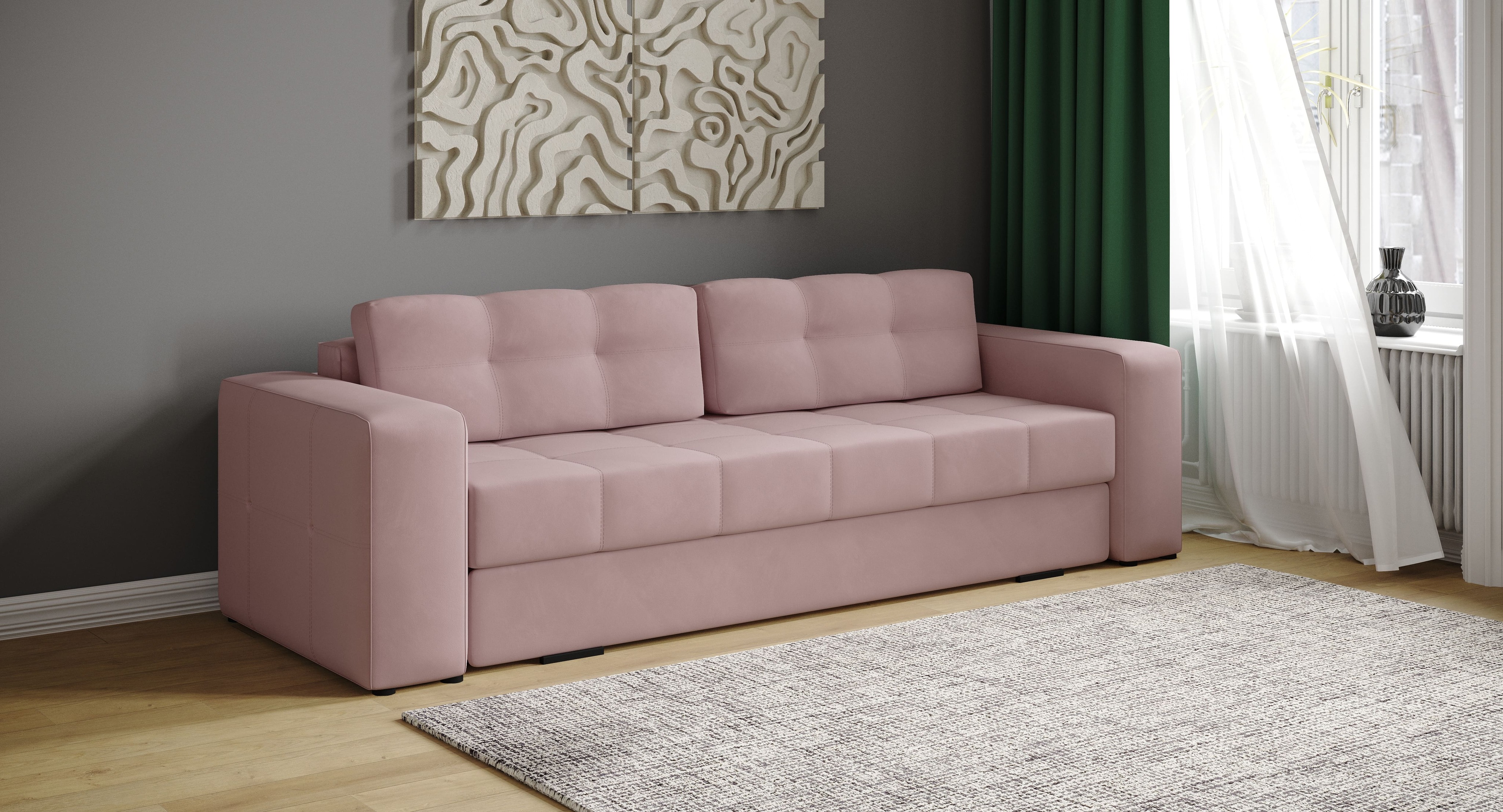 Диван раскладной Верден – это идеальное сочетание комфорта и стиля. Обивка из мягкого и приятного на ощупь велюра придаёт ему элегантный вид, а также обеспечивает тепло и уют в любое время года. Диван легко трансформируется в просторное спальное место, что делает его отличным вариантом для гостиных или студий.