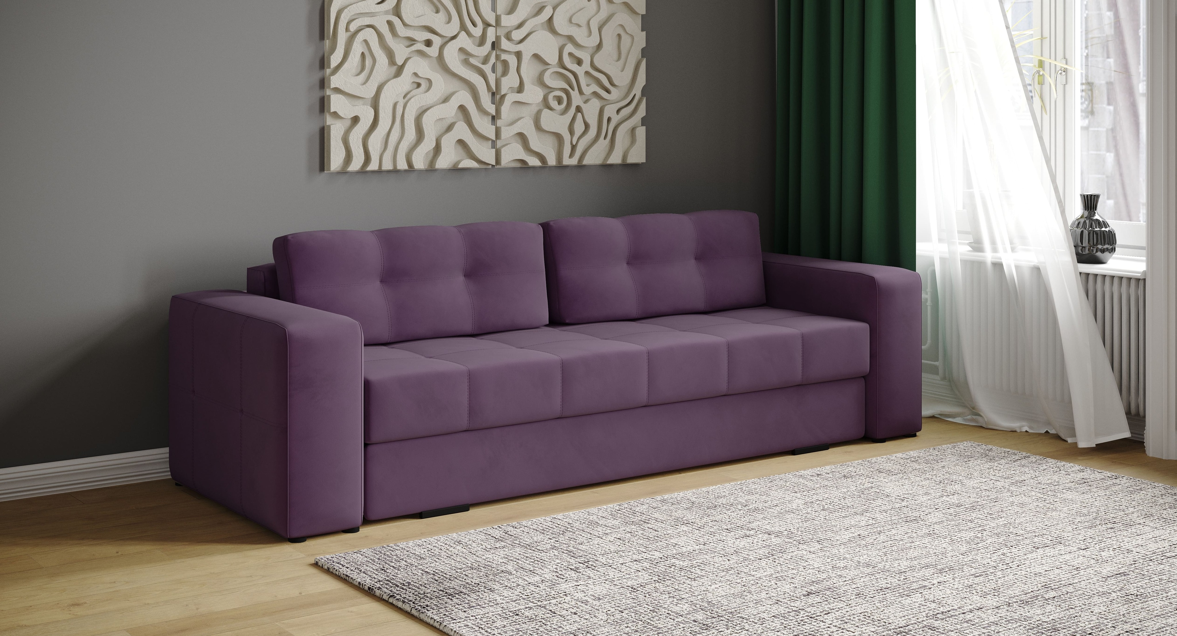 Диван раскладной Верден – это идеальное сочетание комфорта и стиля. Обивка из мягкого и приятного на ощупь велюра придаёт ему элегантный вид, а также обеспечивает тепло и уют в любое время года. Диван легко трансформируется в просторное спальное место, что делает его отличным вариантом для гостиных или студий.