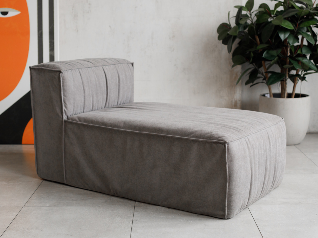 Диван помимо одной секции имеет ещё несколько модулей на выбор: два пуфа разных размеров, модули со спинкой, угловые, угловые с подлокотником, с укороченной спинкой. Из этих секций вы можете заказать диван нужного размера.