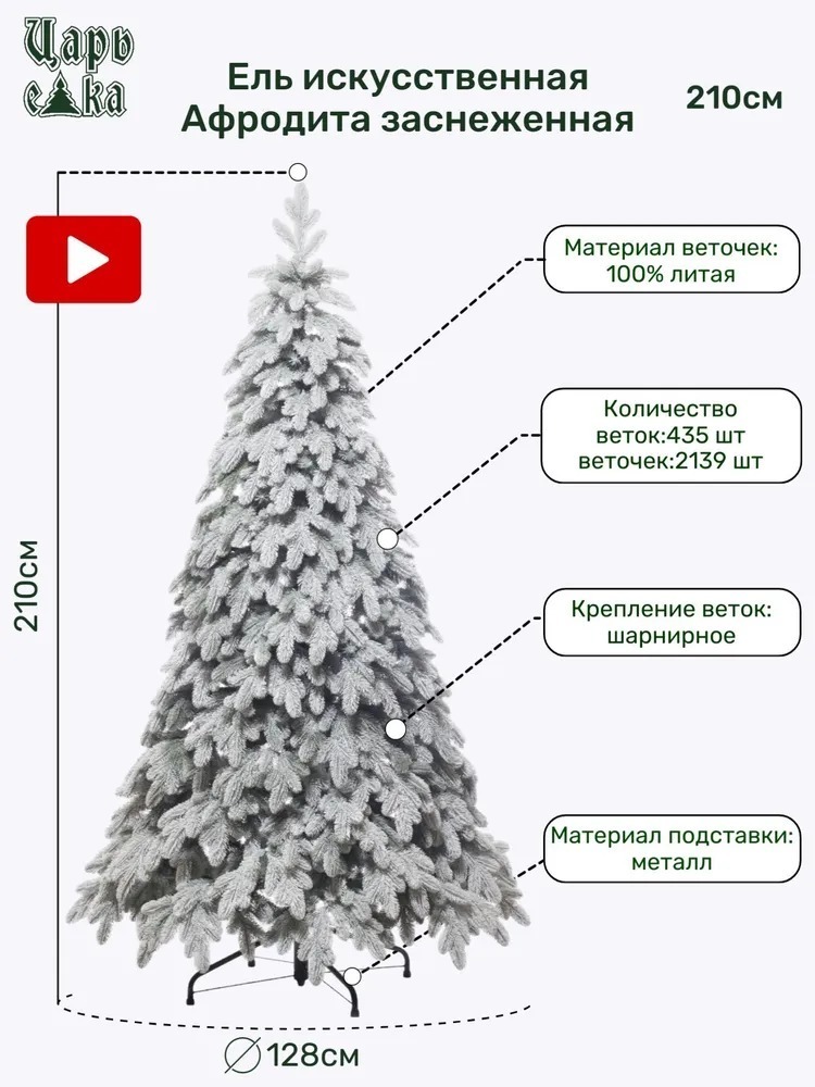 Ель заснеженная Афродита от Царь елка - это искусственное дерево, которое станет главным украшением вашего дома в новогодние праздники.