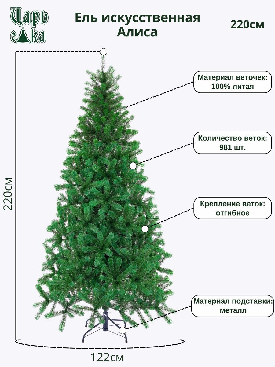 Ель "Алиса" имеет высоту 220 см, что делает ее заметной и привлекательной.