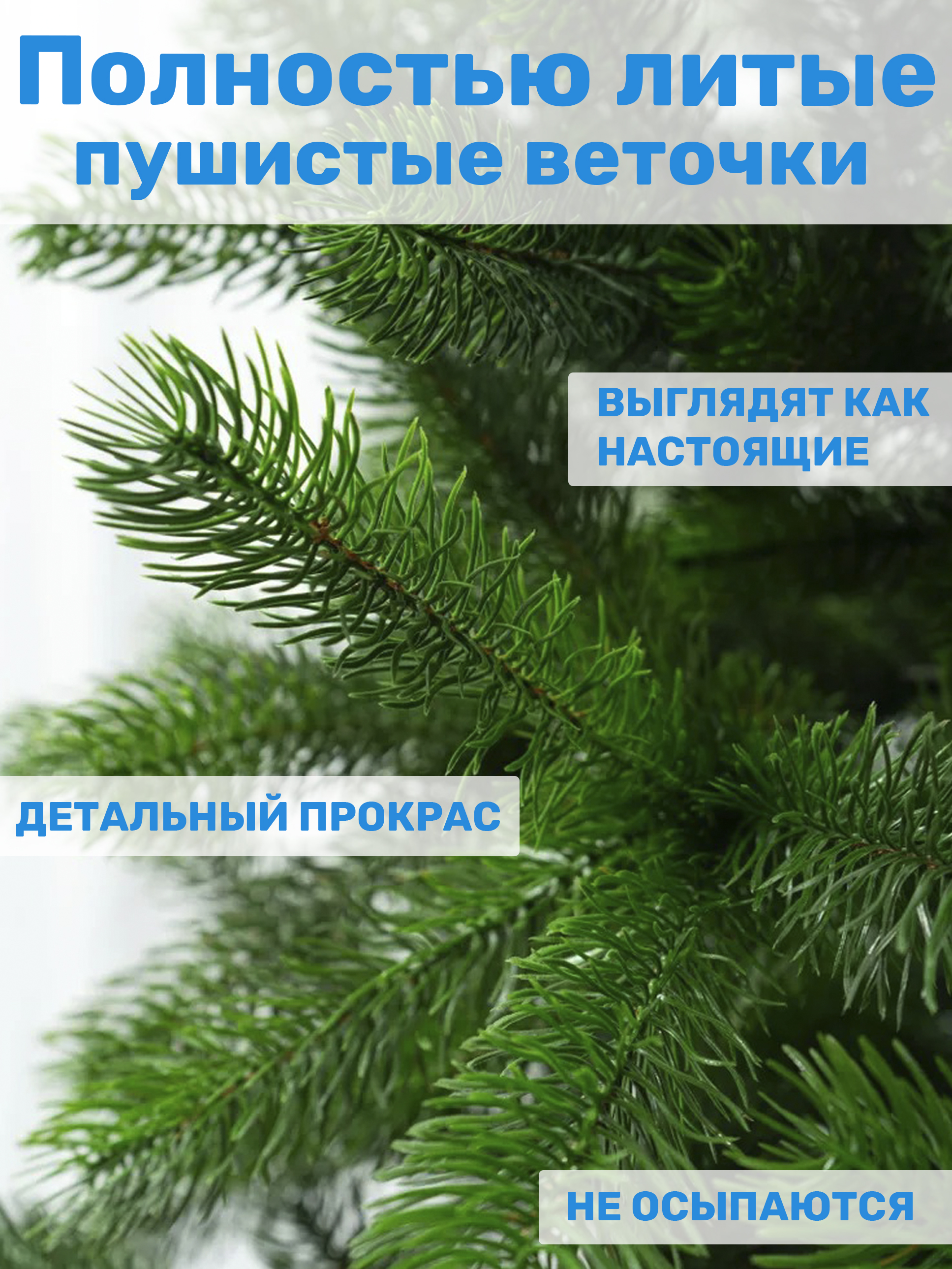 Материал хвои - литая ПЭ, что гарантирует долгий срок службы и сохранение внешнего вида.