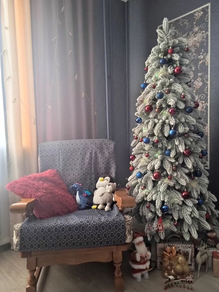 Елка поставляется в разобранном виде, что облегчает транспортировку и сборку. Вес с упаковкой составляет всего 7,8 кг, что делает ее удобной для переноски и установки.