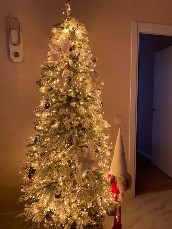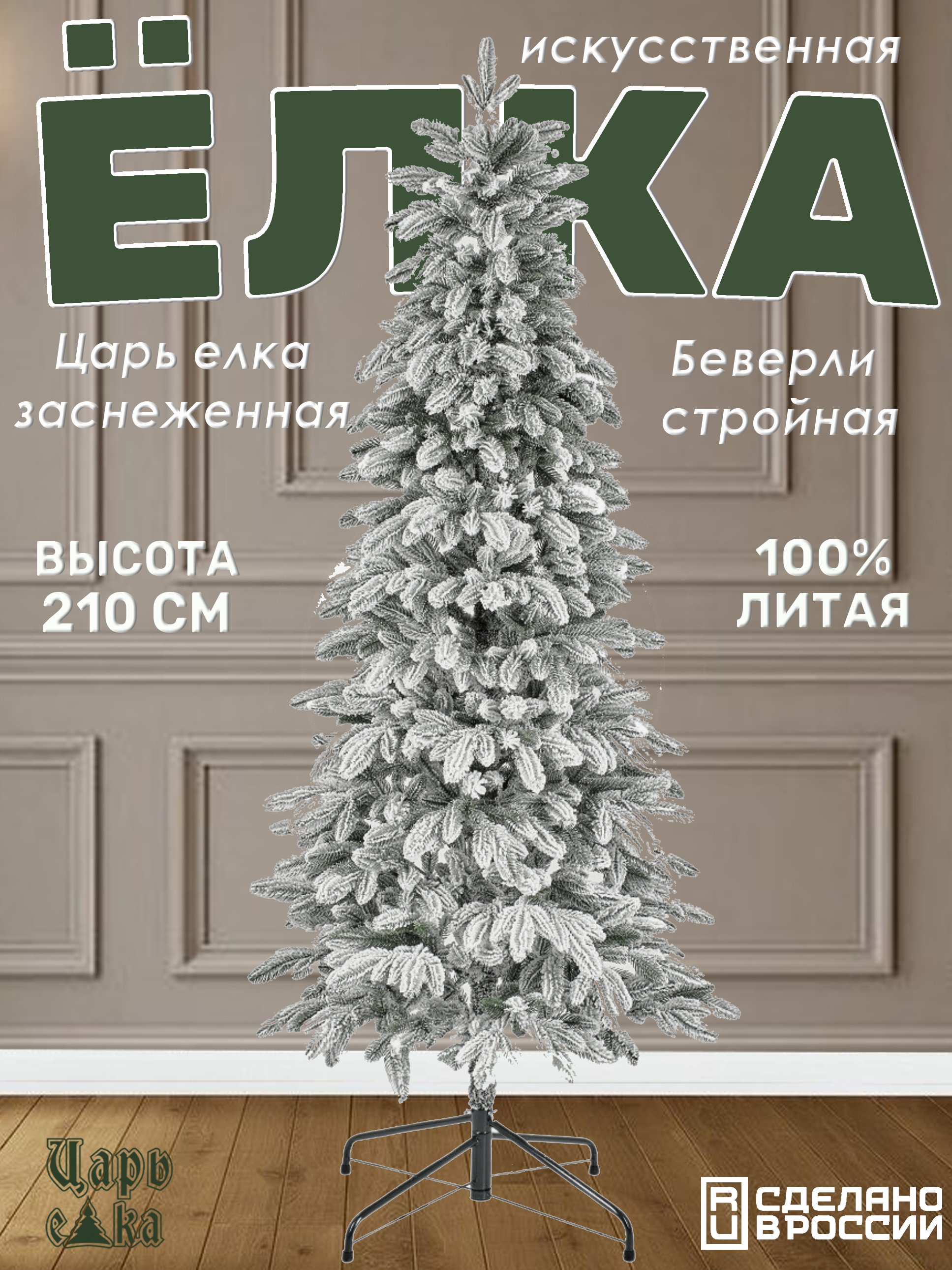 Искусственная новогодняя елка Царь елка Беверли стройная заснеженная 210 см представляет собой стильное и реалистичное решение для создания праздничной атмосферы в вашем доме.