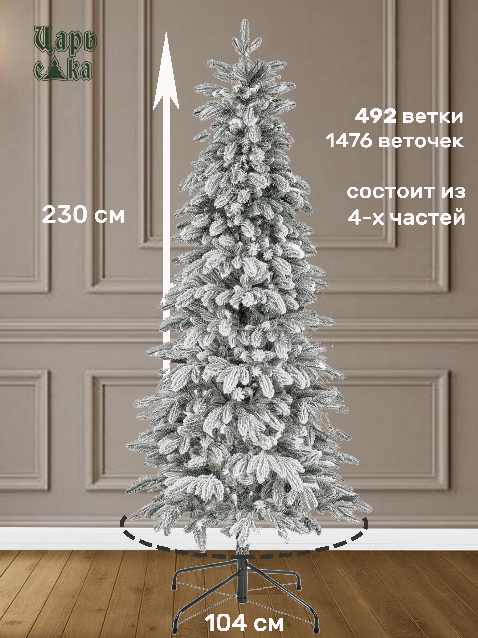 Искусственная новогодняя елка Царь елка Беверли стройная заснеженная 230 см - это высококачественная напольная елка, которая станет прекрасным украшением вашего дома на новогодние праздники.