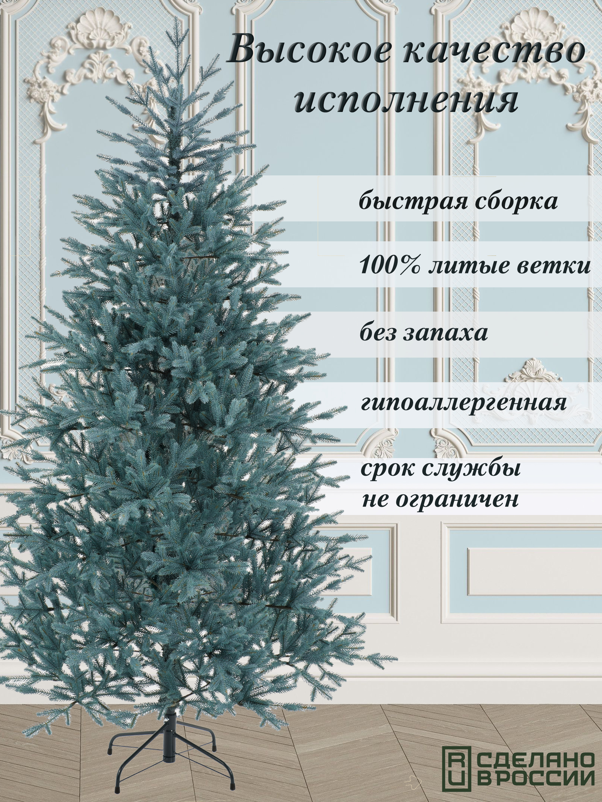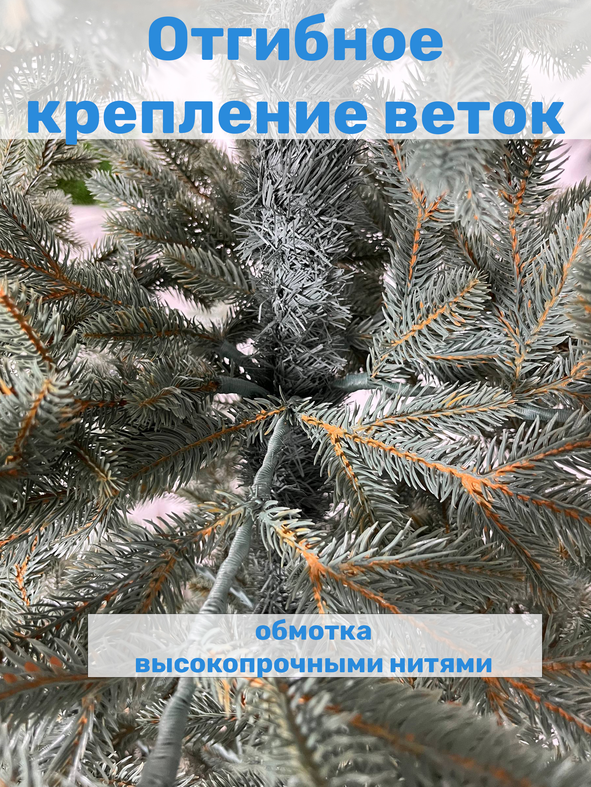 Материал хвои - литая ПЭ, что обеспечивает реалистичность и долговечность. Цвет хвои - голубой, что придает елке свежий и современный вид.
