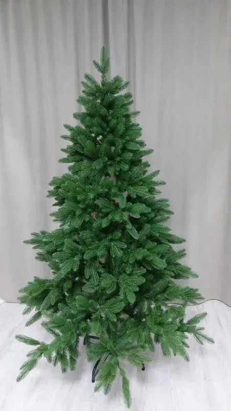 Елка Финская премиум выполнена в натуральном темно-зеленом цвете, что придает ей реалистичный вид. Пушистые веточки, изготовленные из 100% литого полиэтилена, выглядят как настоящие еловые иголки. Они не мнутся и не осыпаются, что обеспечивает долгий срок службы и сохранение первоначального вида.